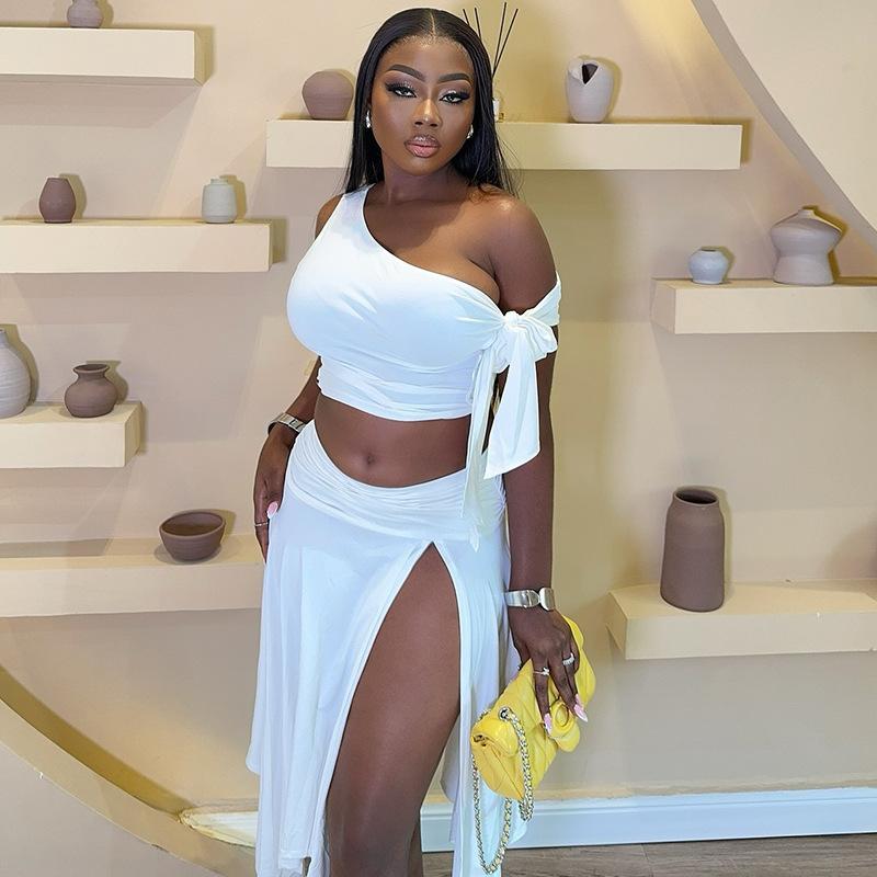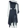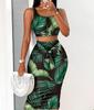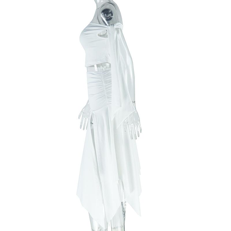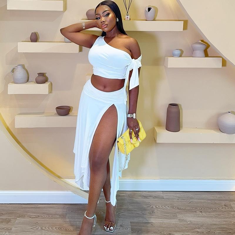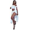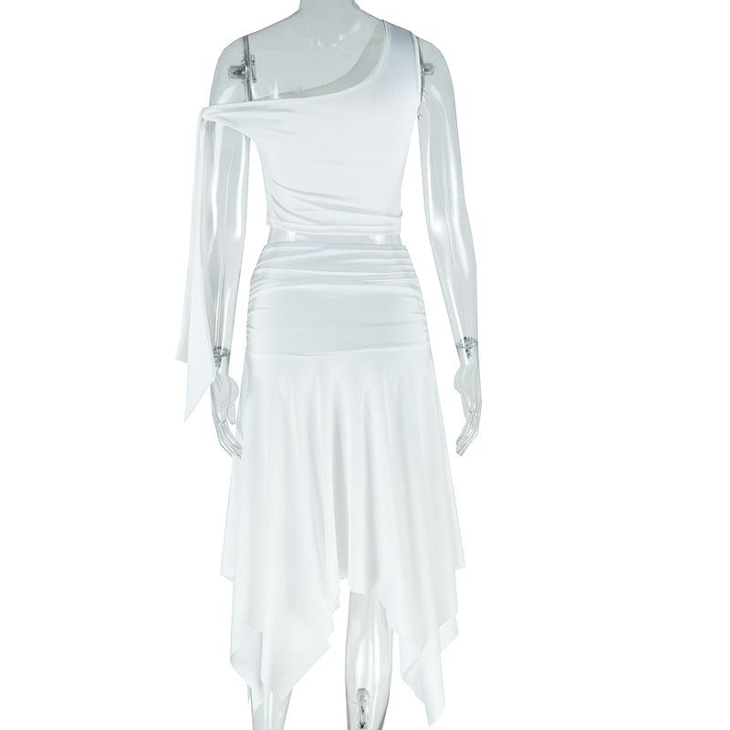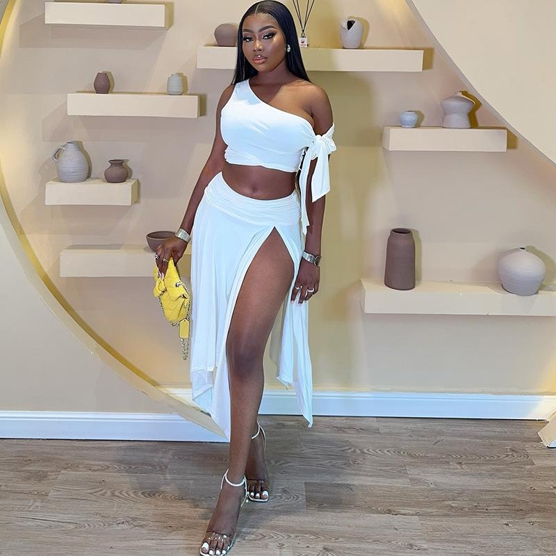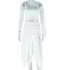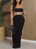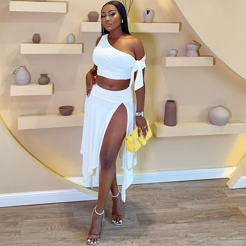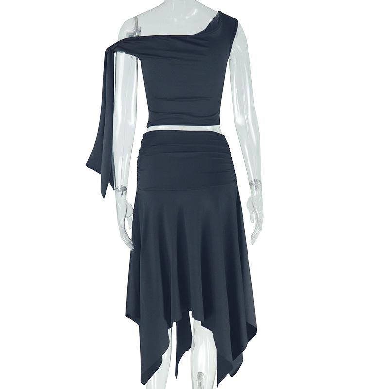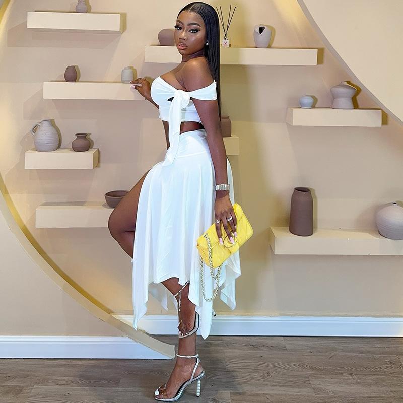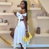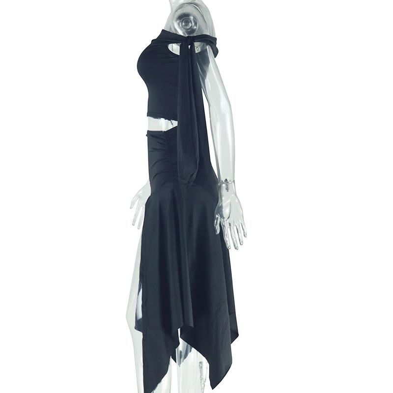 Traje de dos piezas estilo europeo y americano para mujer, sexy, sin mangas, con hombros descubiertos y falda con abertura en la mitad de la falda.