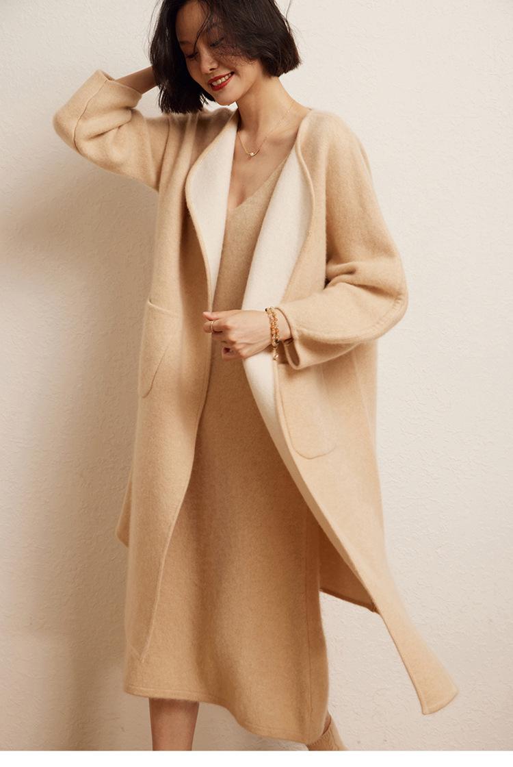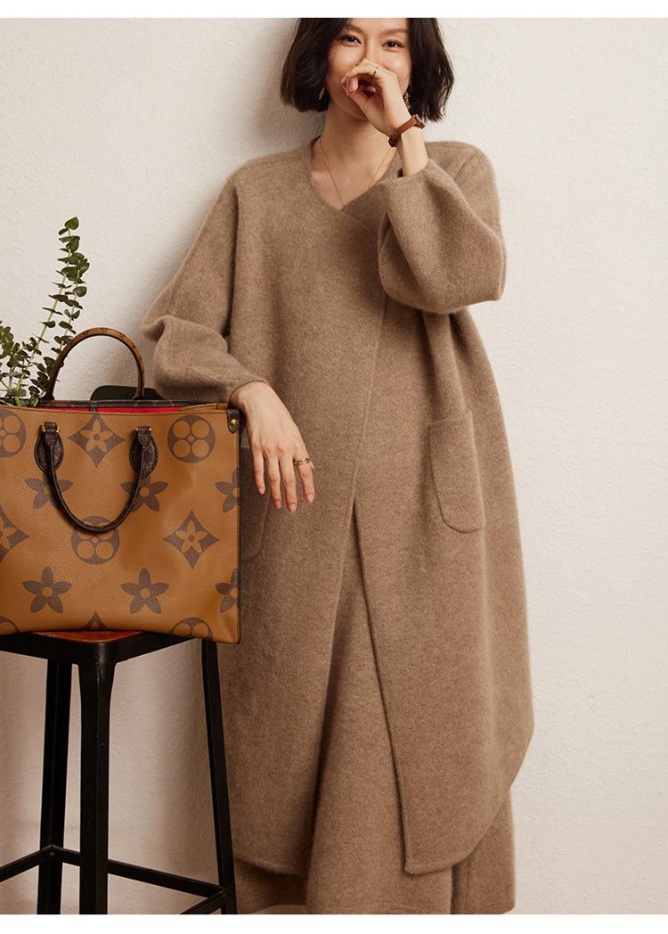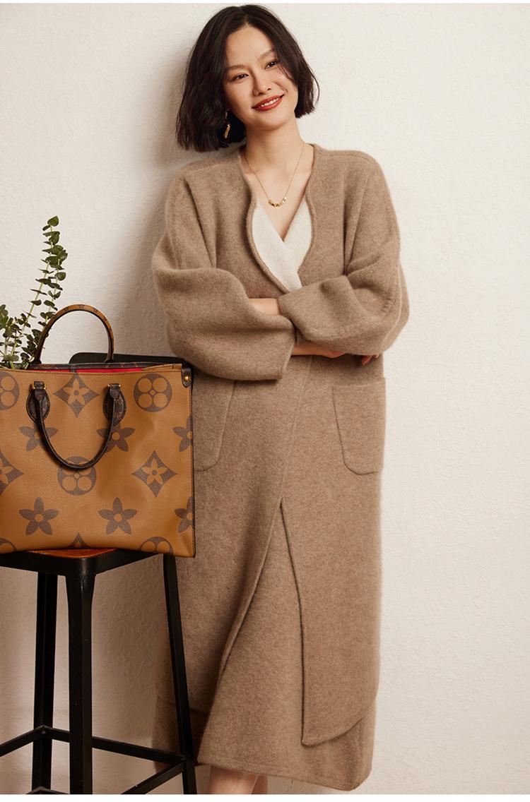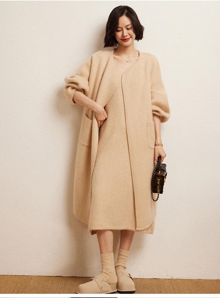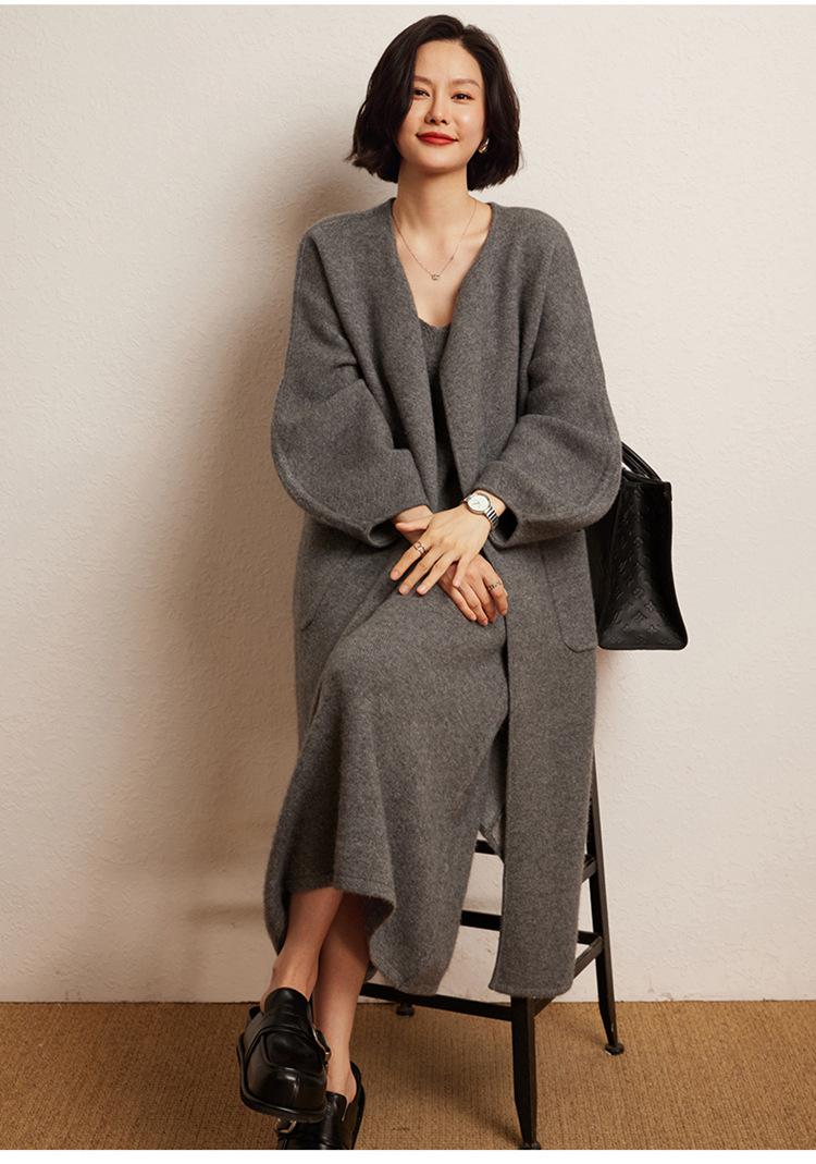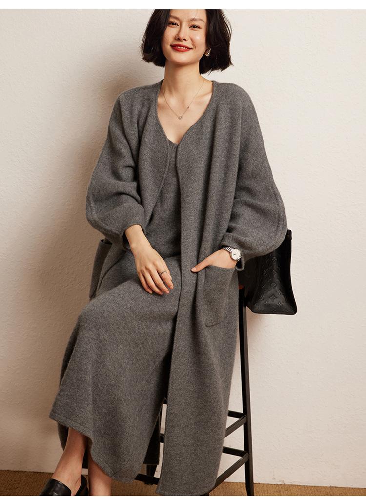 Suave Cachemira para Mujer Suéter de Cachemira de Manga Larga Tipo Farol de Color Sólido Estilo Casual de Moda Holgado Nueva Chaqueta Cárdigan