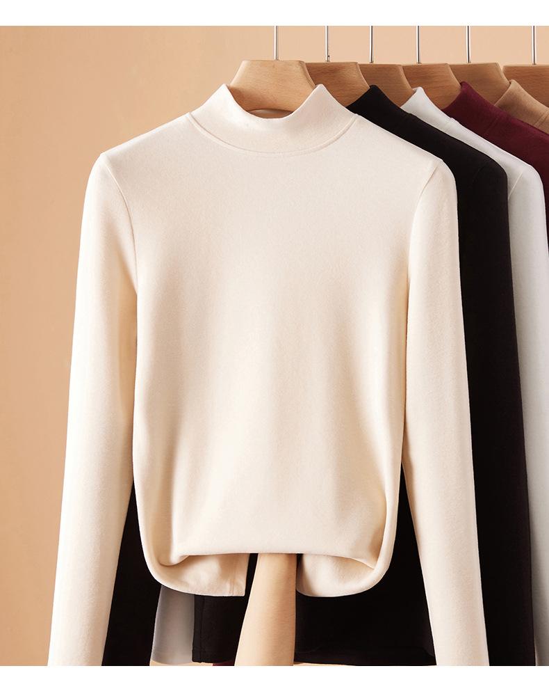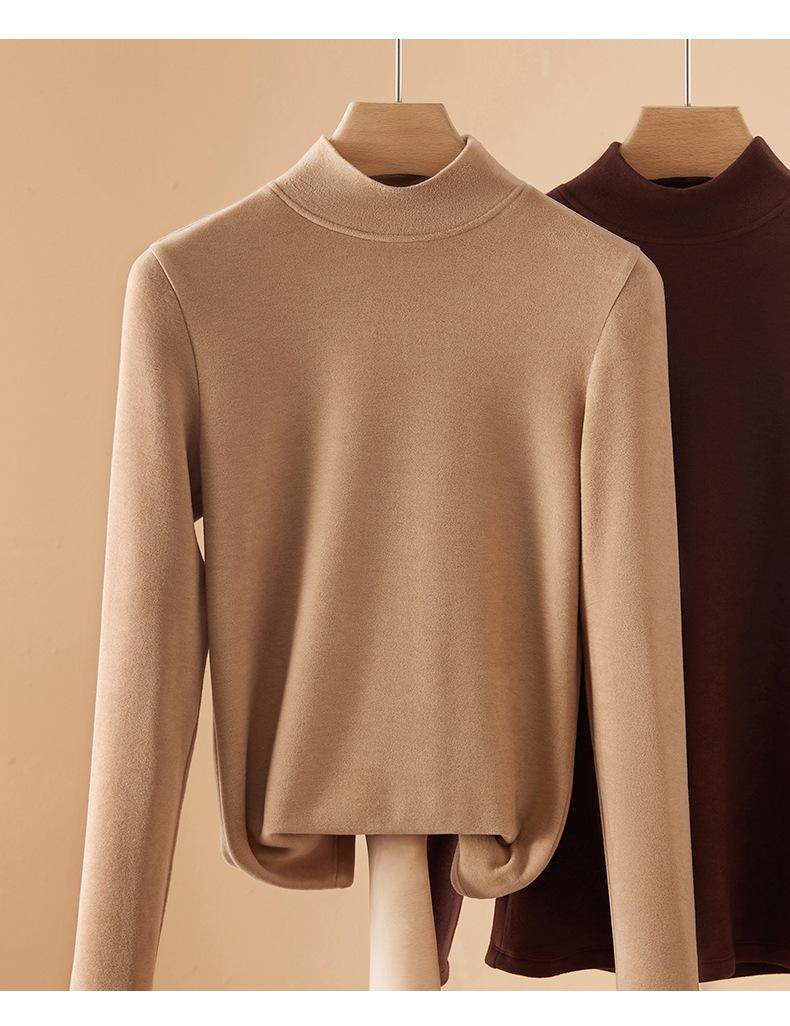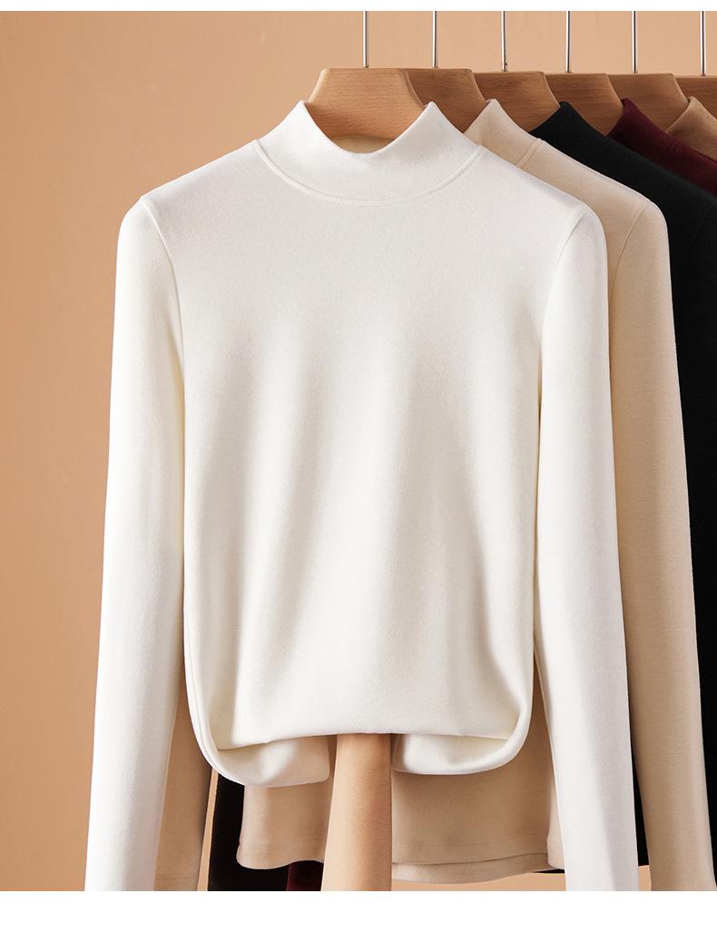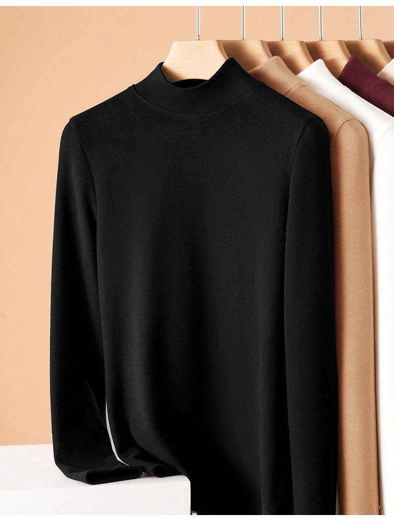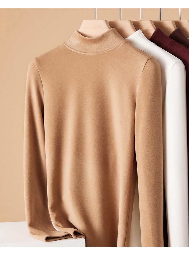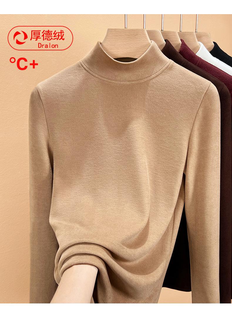 Camiseta básica de terciopelo alemán de cuello alto para mujer 2025 Nuevo Otoño e Invierno Estilo ajustado de manga larga Top cálido interno engrosado