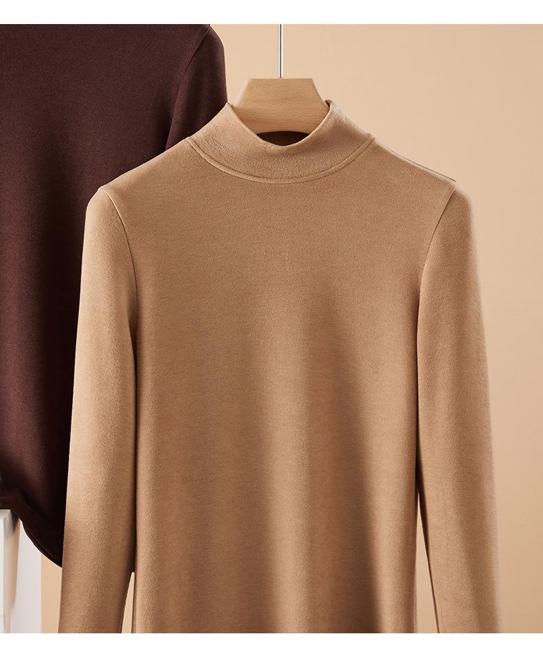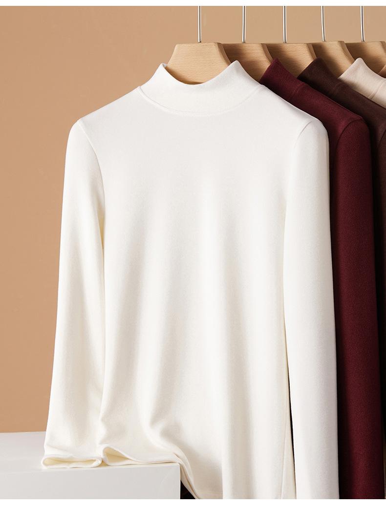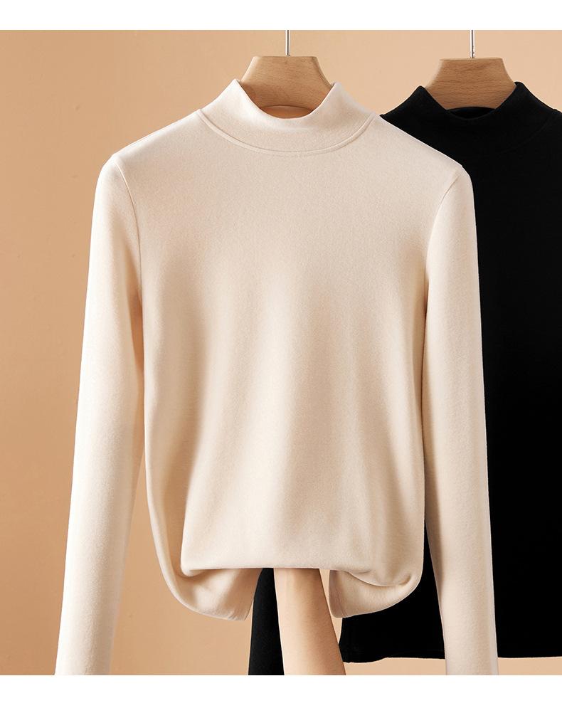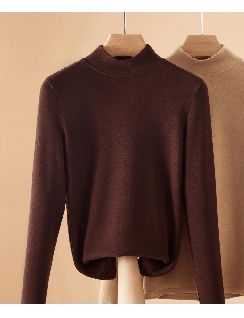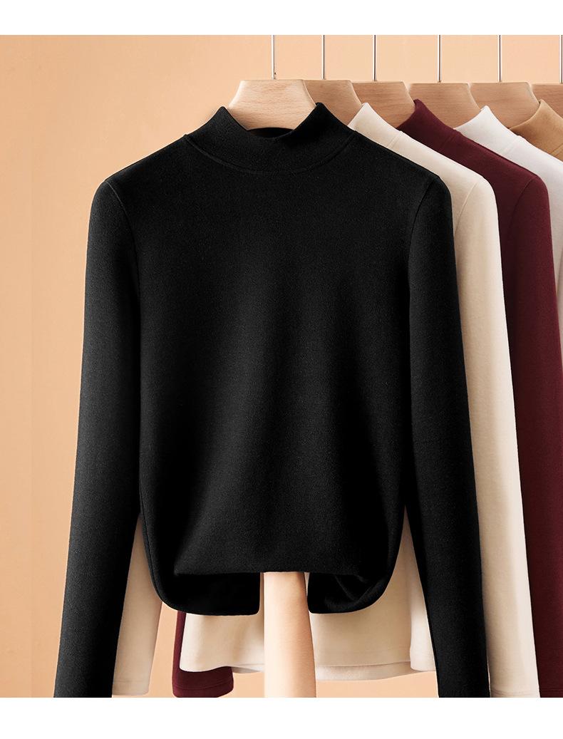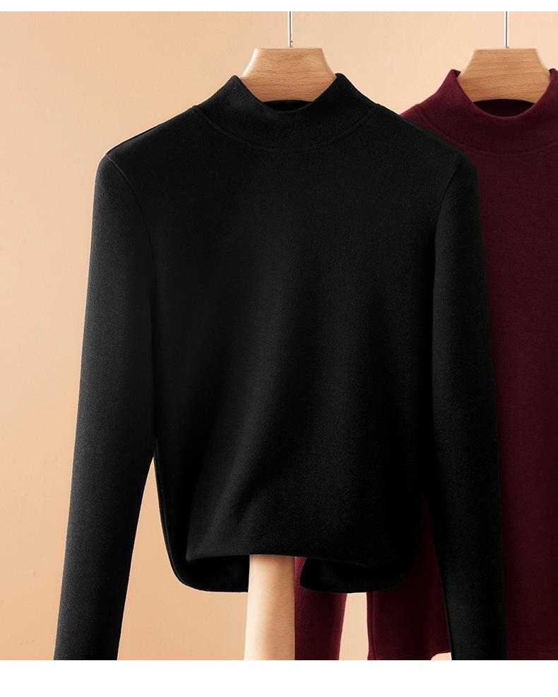 Camiseta básica de terciopelo alemán de cuello alto para mujer 2025 Nuevo Otoño e Invierno Estilo ajustado de manga larga Top cálido interno engrosado