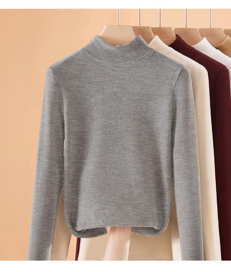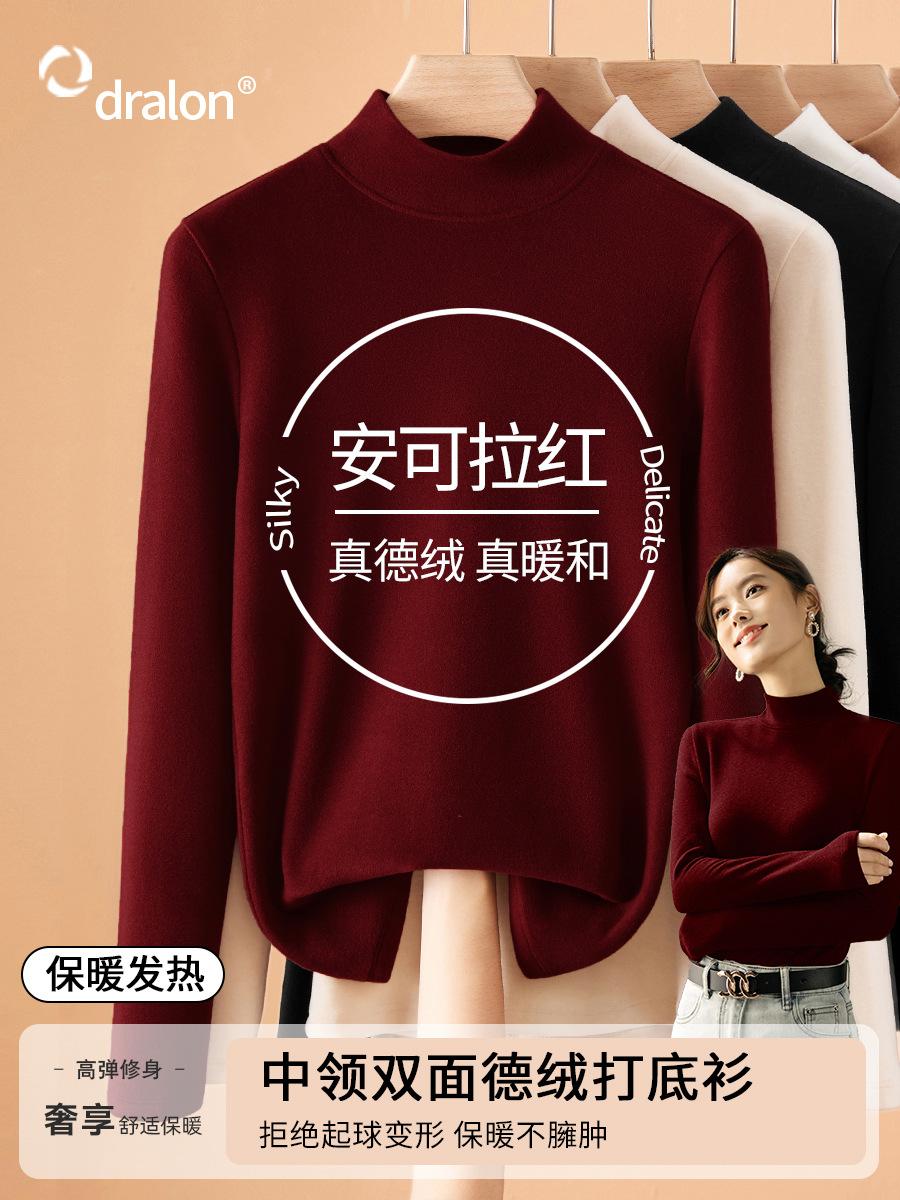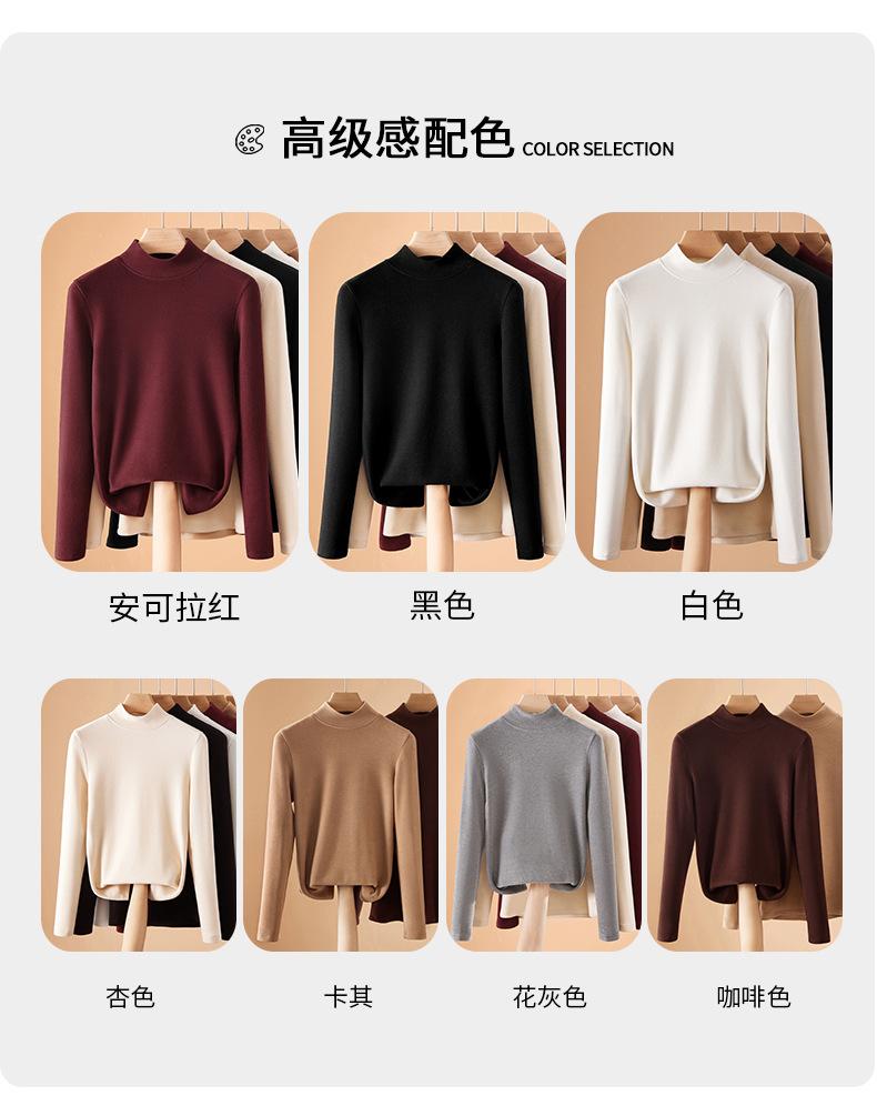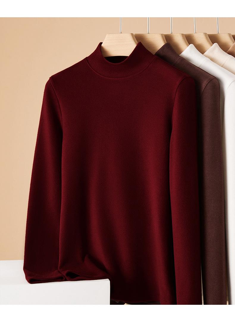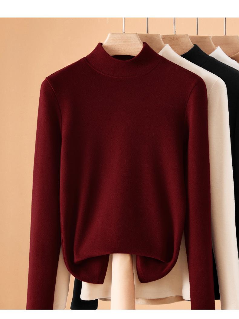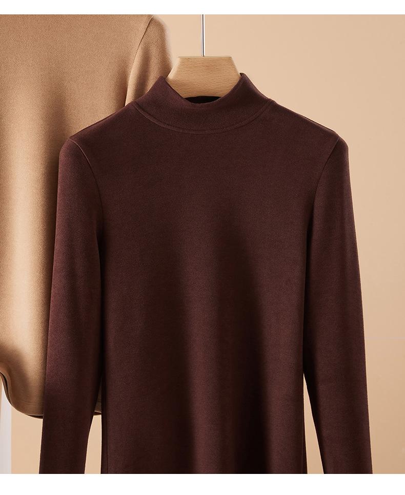Camiseta básica de terciopelo alemán de cuello alto para mujer 2025 Nuevo Otoño e Invierno Estilo ajustado de manga larga Top cálido interno engrosado