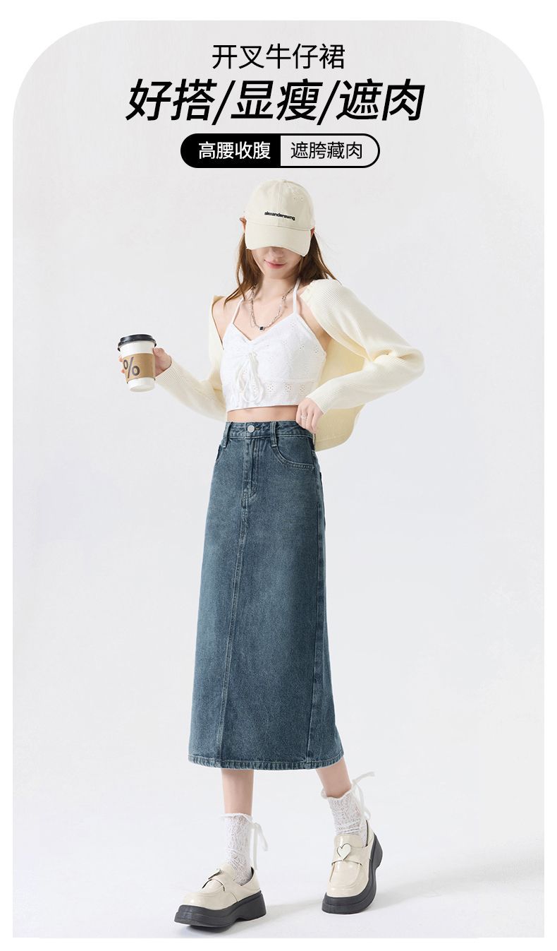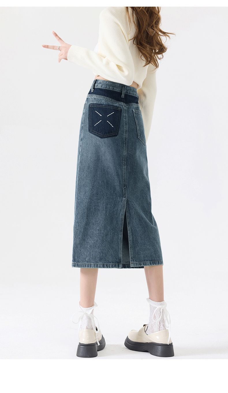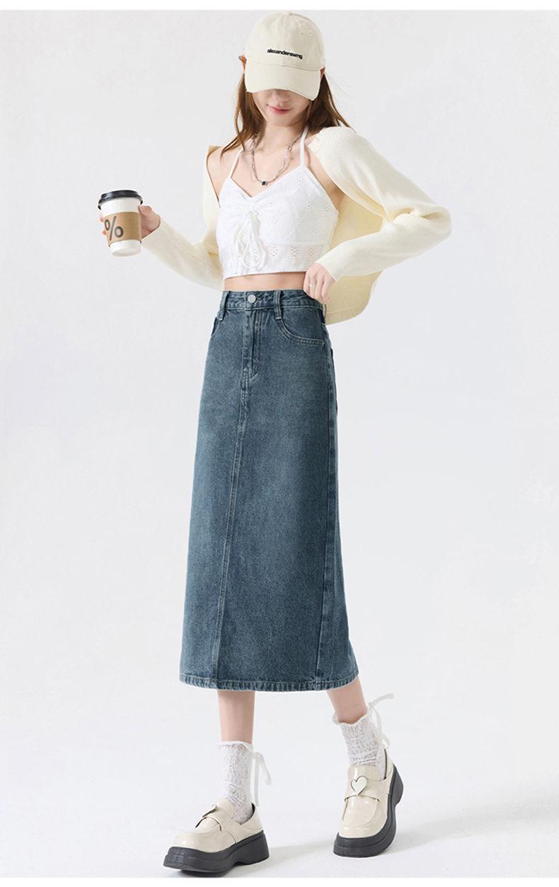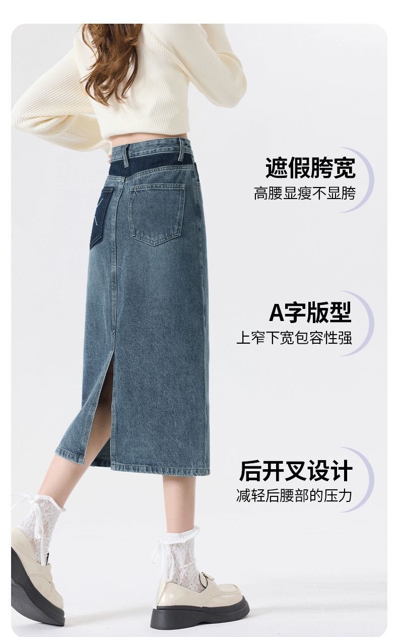 Falda vaquera vintage con abertura para mujer, largo medio, estilo nuevo de 2024, con cintura alta y contraste de verano, corte A.