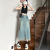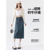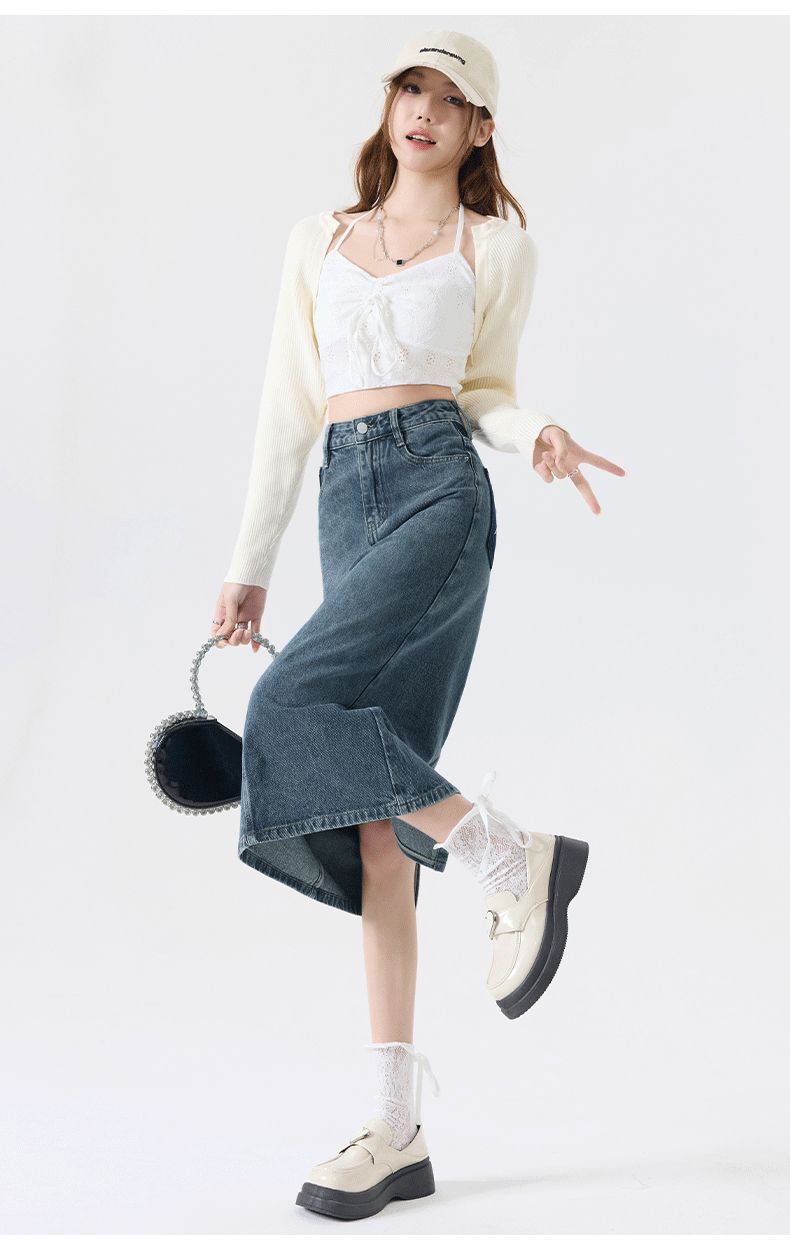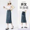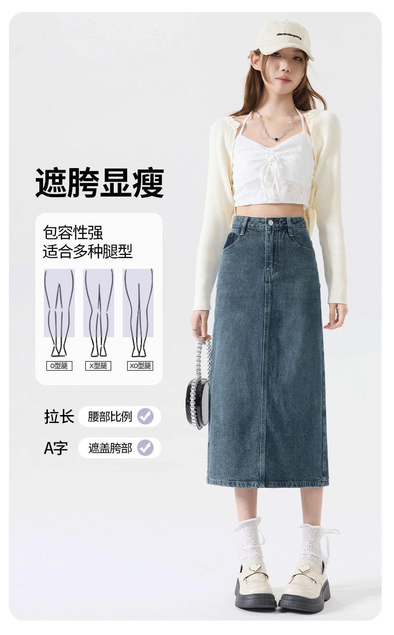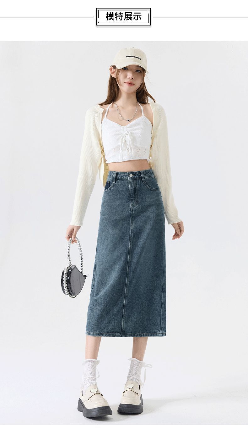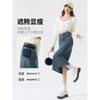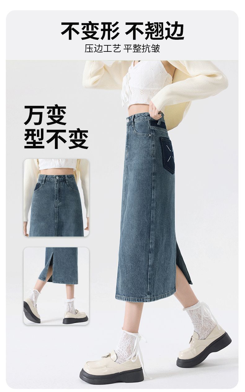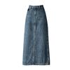 Falda vaquera vintage con abertura para mujer, largo medio, estilo nuevo de 2024, con cintura alta y contraste de verano, corte A.