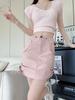 Falda Transfronteriza Otoño e Invierno Línea A para Mujer Gris Jaspeado Falda de Un Paso Cintura Alta Falda Polvo Ajustada Falda de Cadera