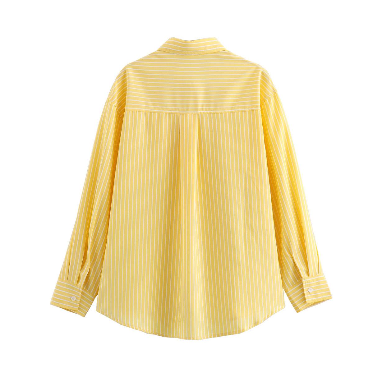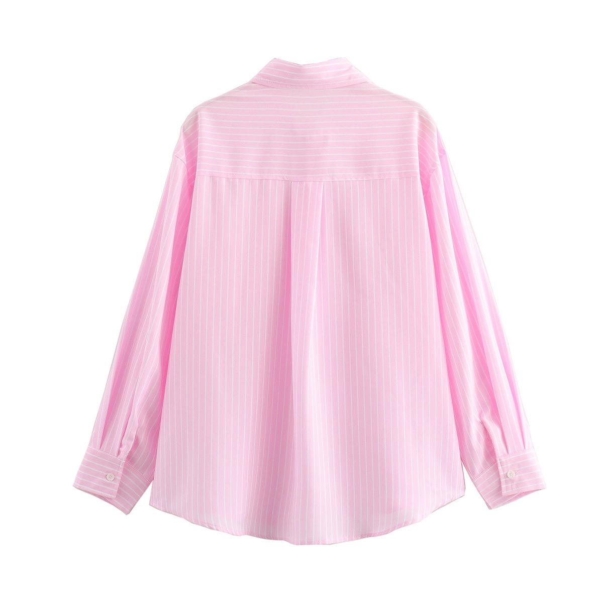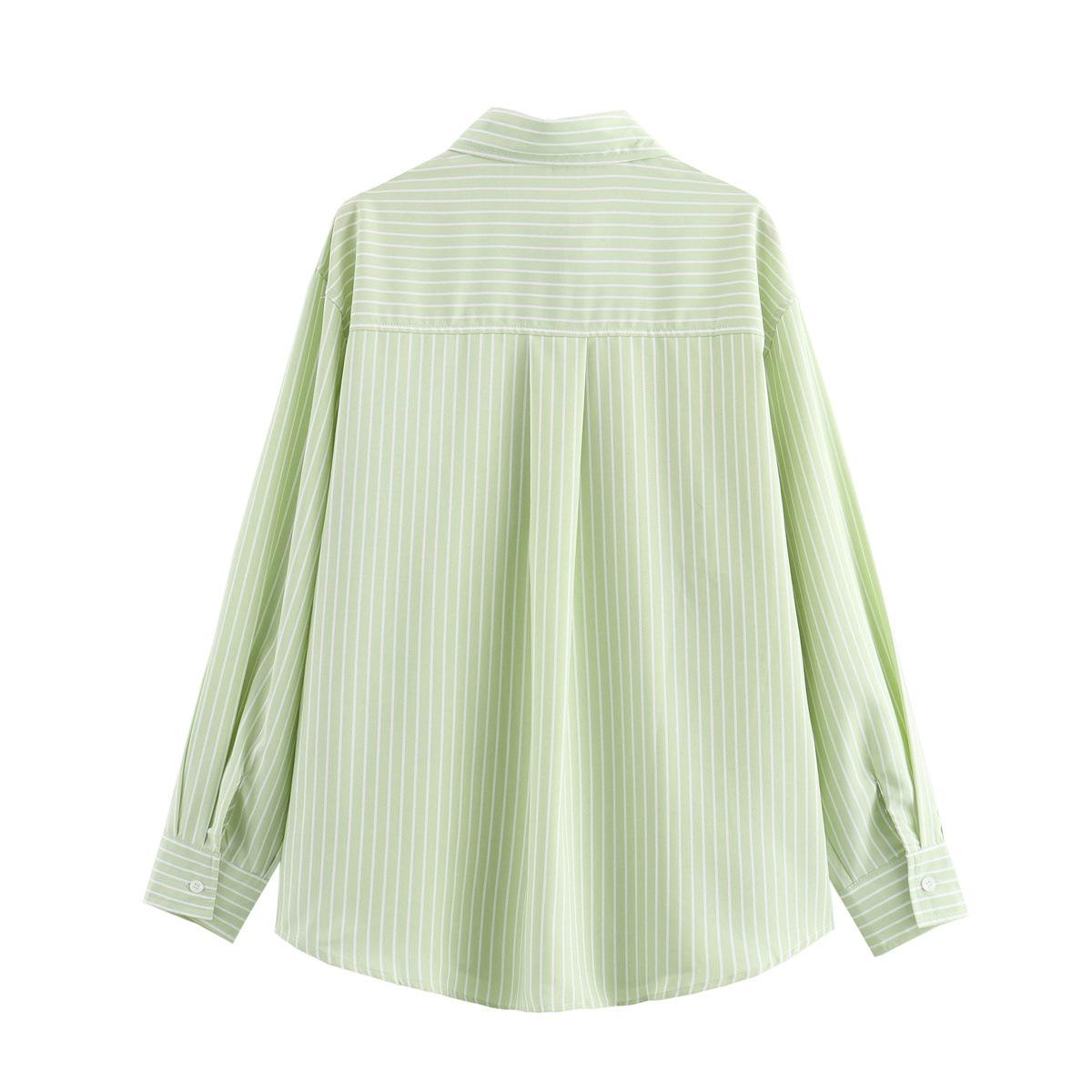 Amazon Comercio Transfronterizo Mujeres Europeas y Americanas 2024 Verano Nuevo Top Urbano Casual de Manga Larga Camisa a Rayas