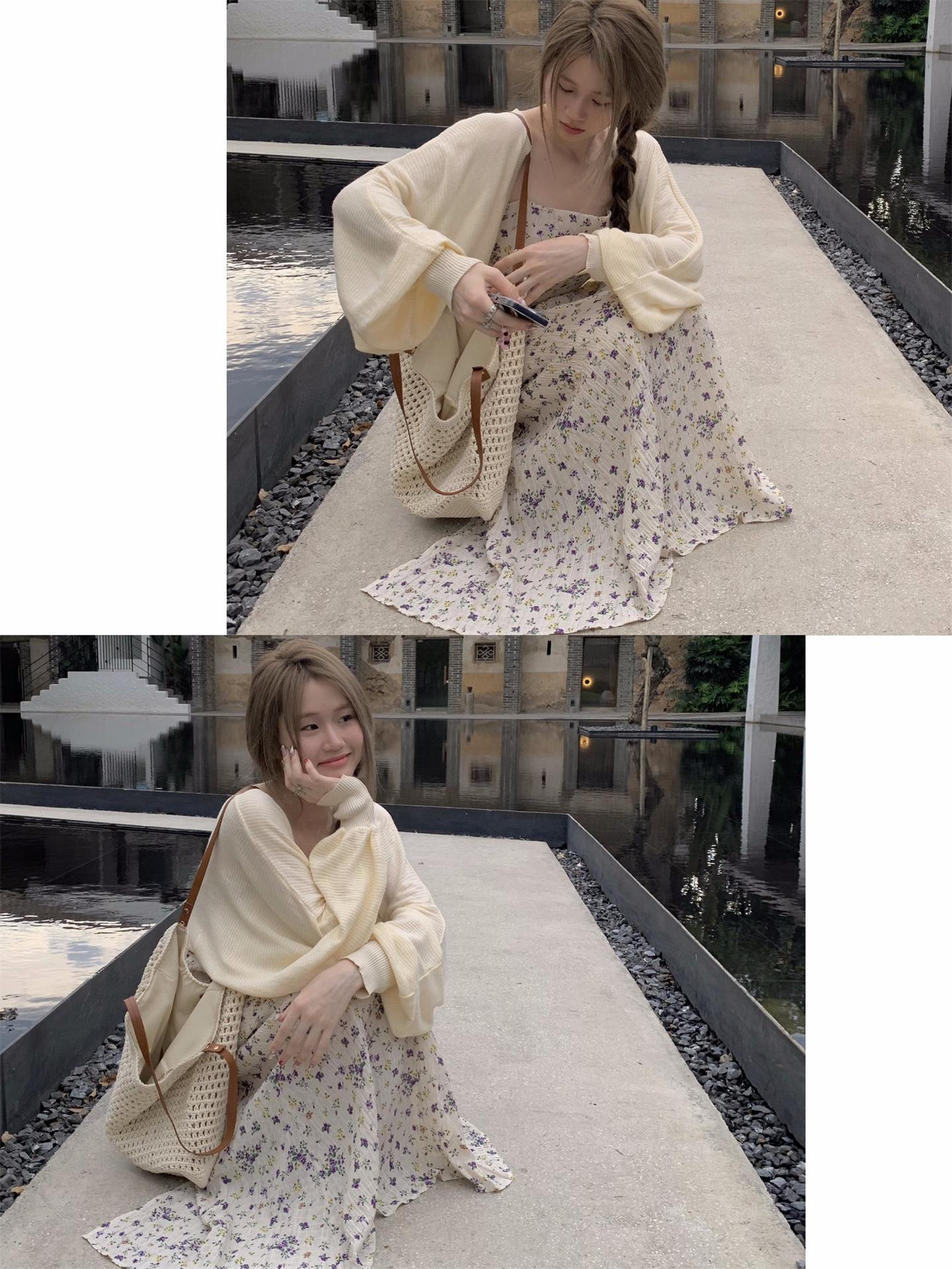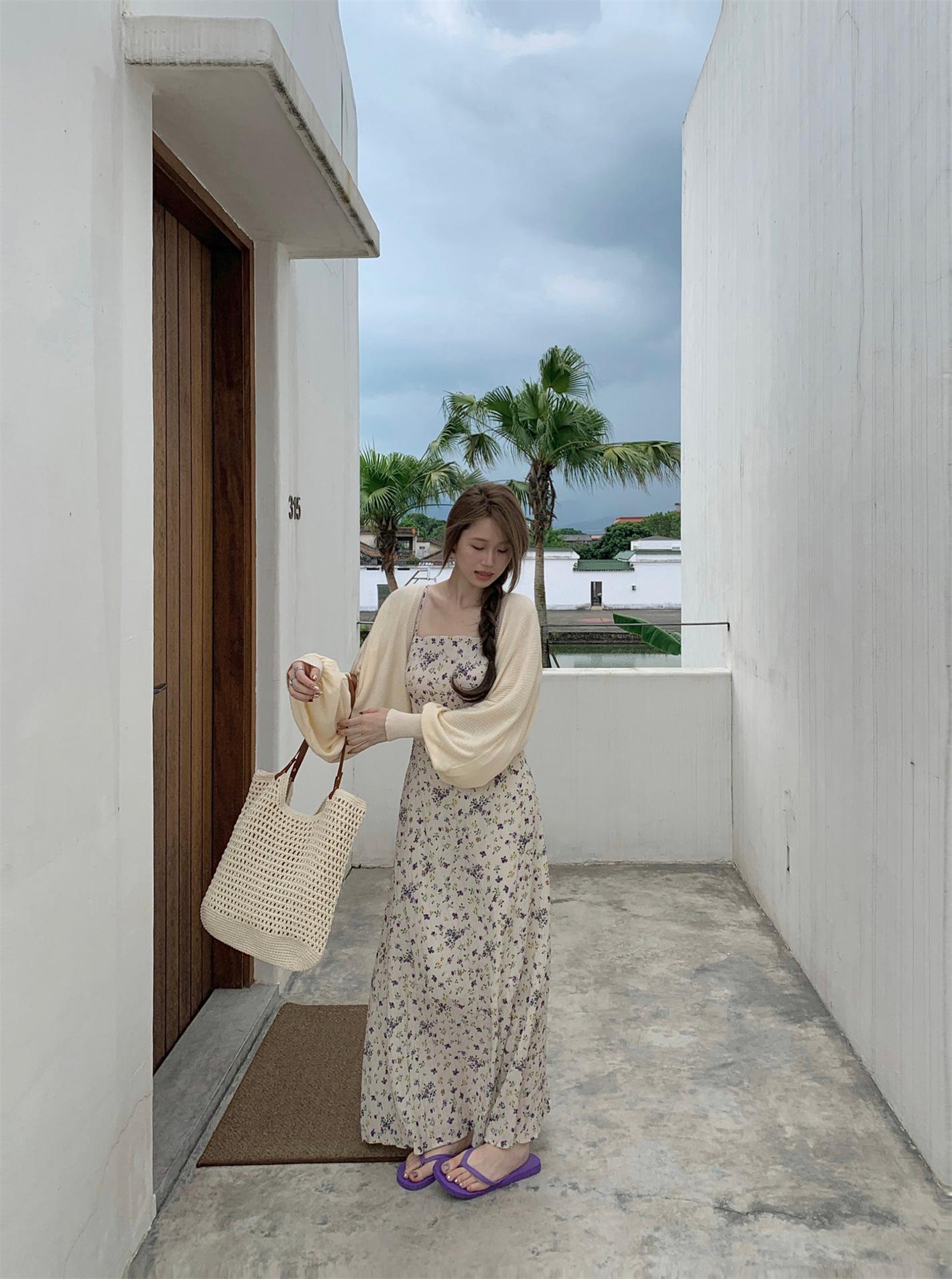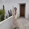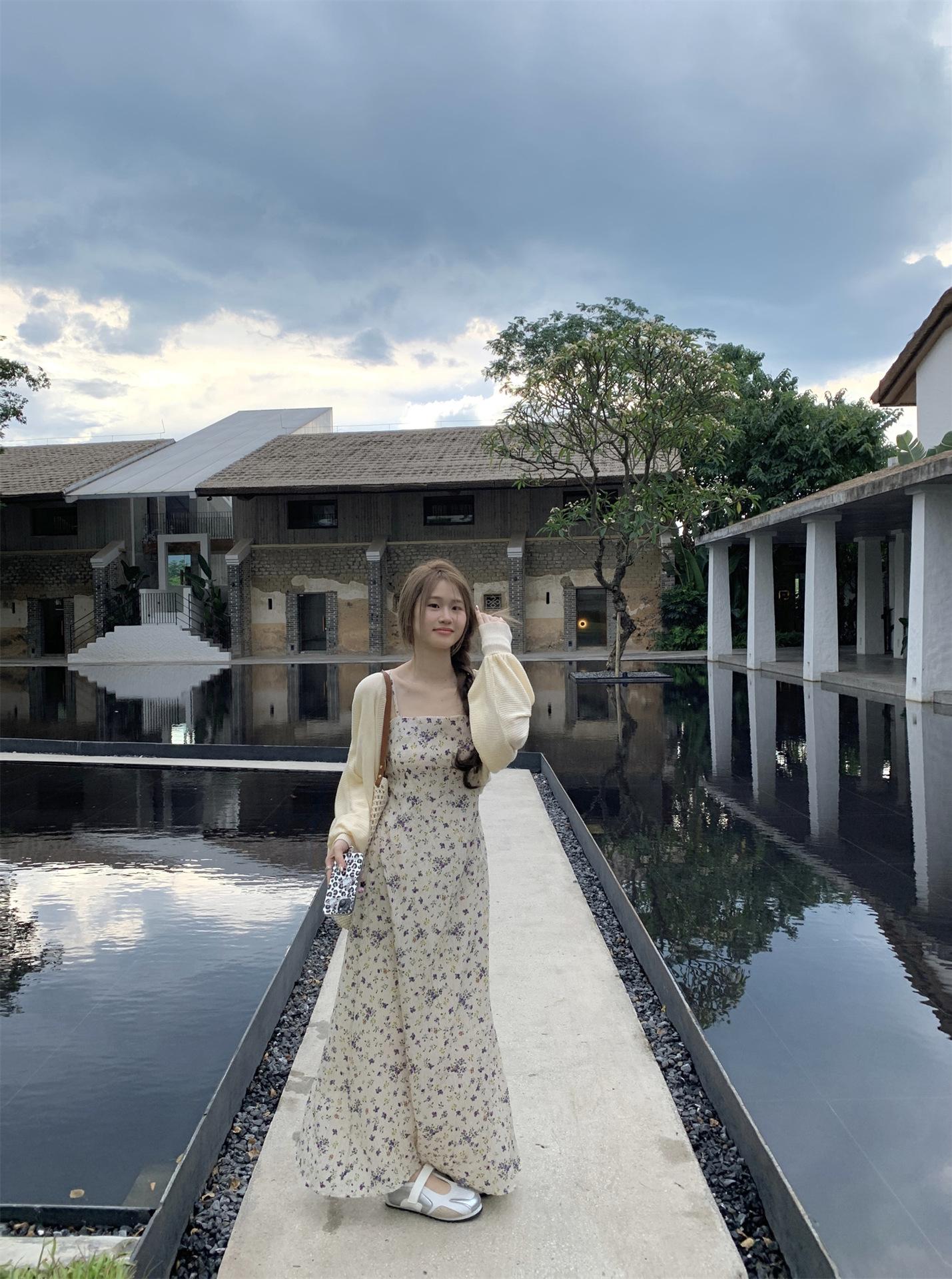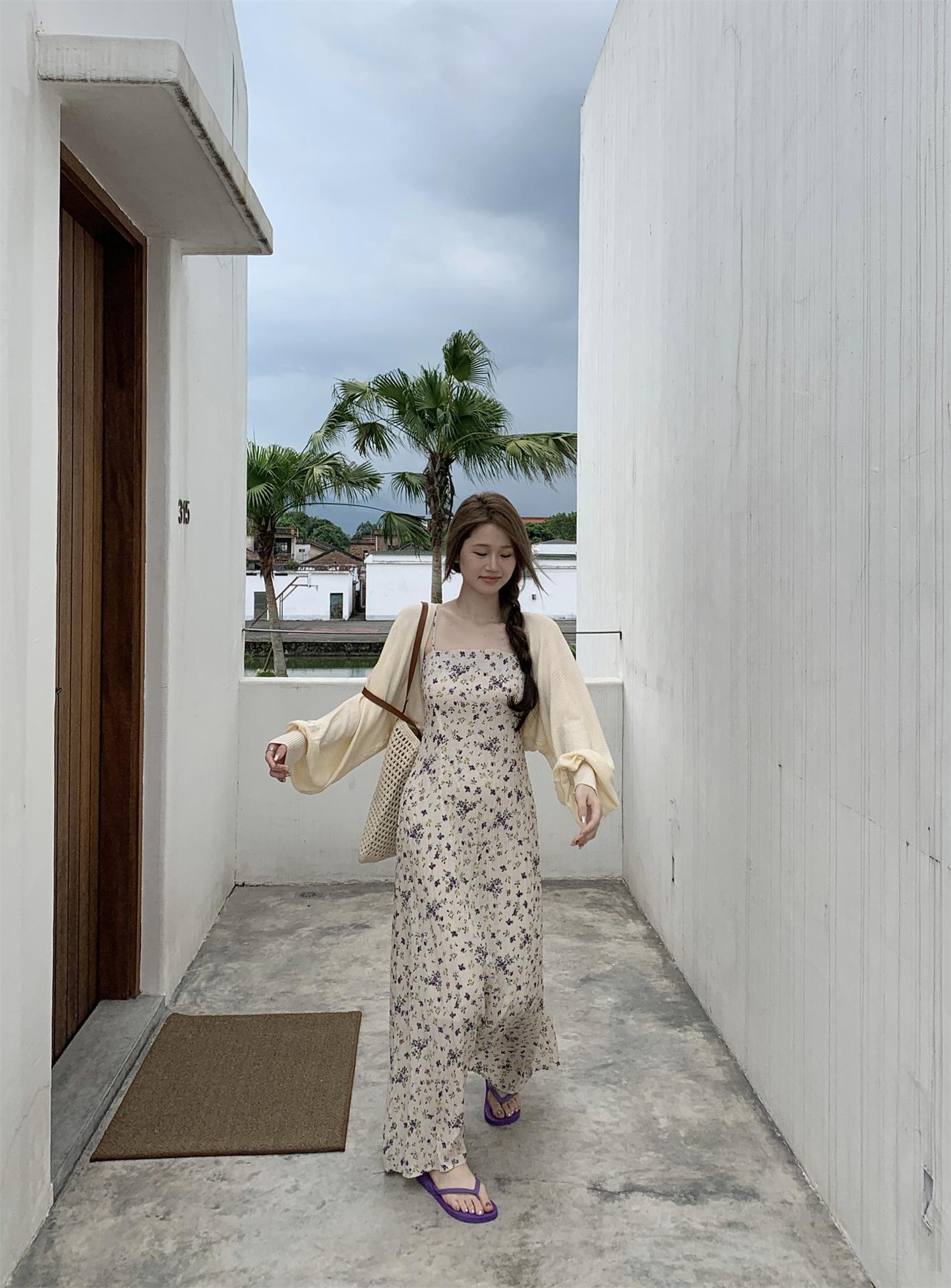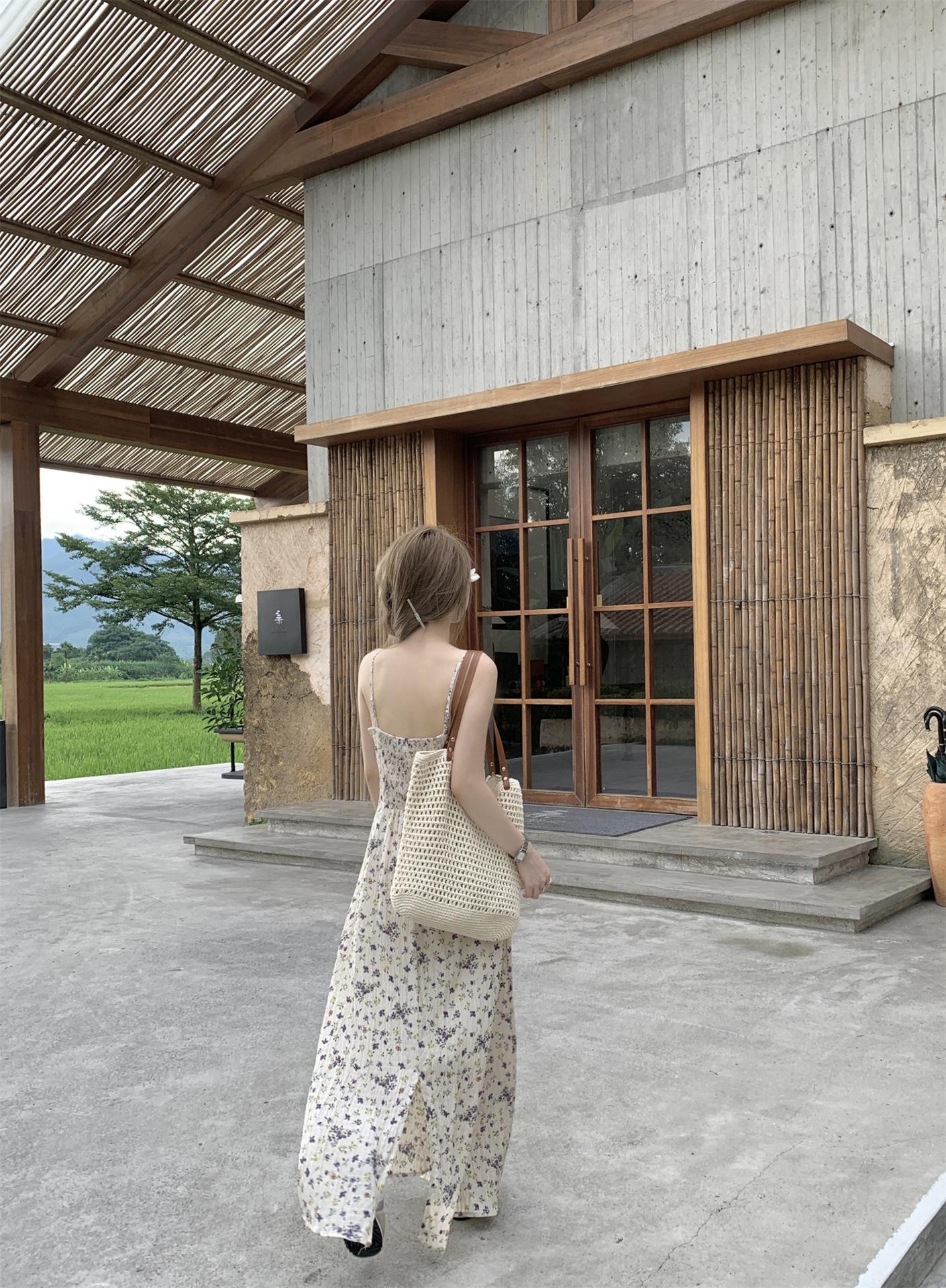 Talla Grande Estilo Francés Estilo Femenino Look Adelgazante Vestido Floral con Tirantes Verano Blanco Dulce Pequeño Fresco Línea A Falda Larga
