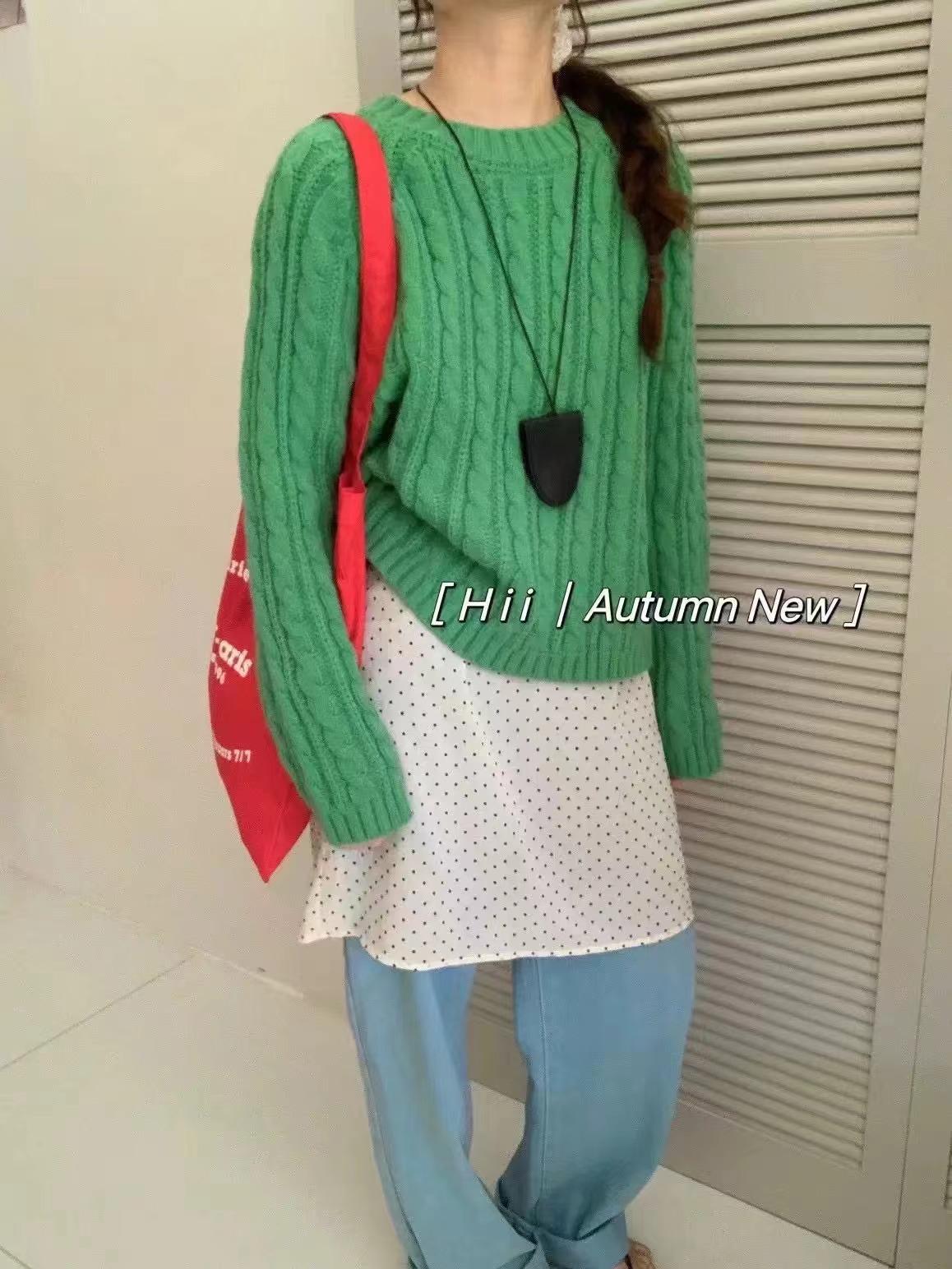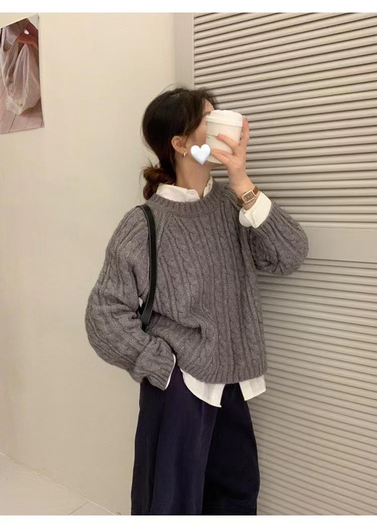 Suéter de punto para mujer Otoño e Invierno Nuevo Coreano Cuello redondo Manga larga Jersey Grueso Punto trenzado Suéter Suelto Estilo perezoso Jersey