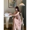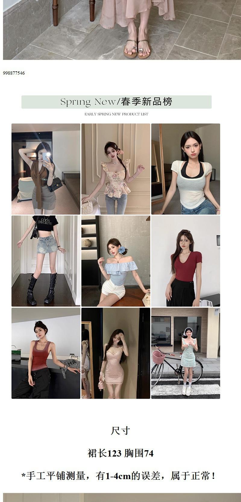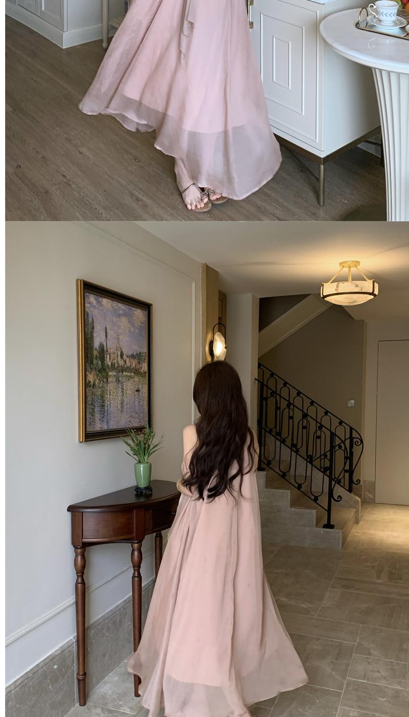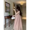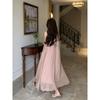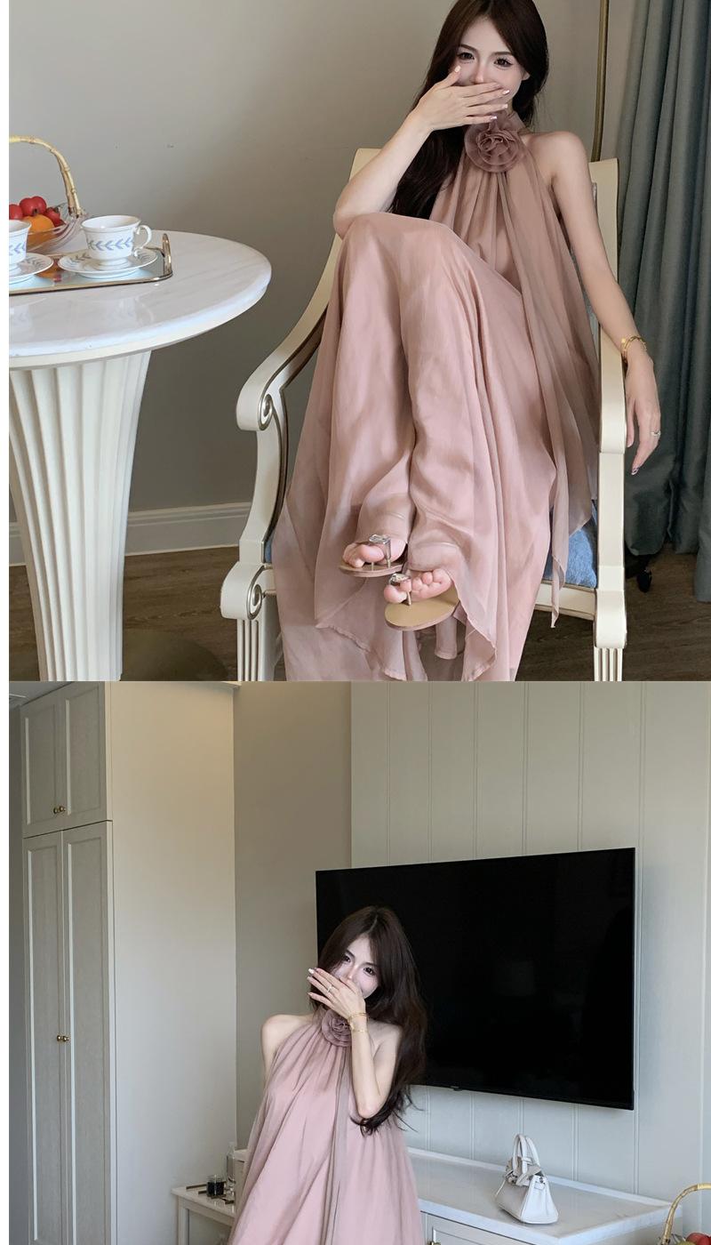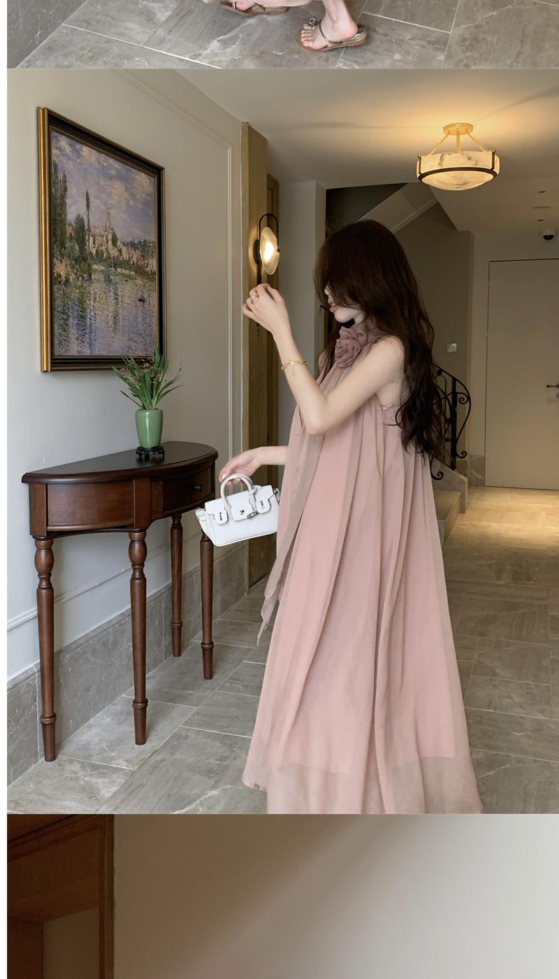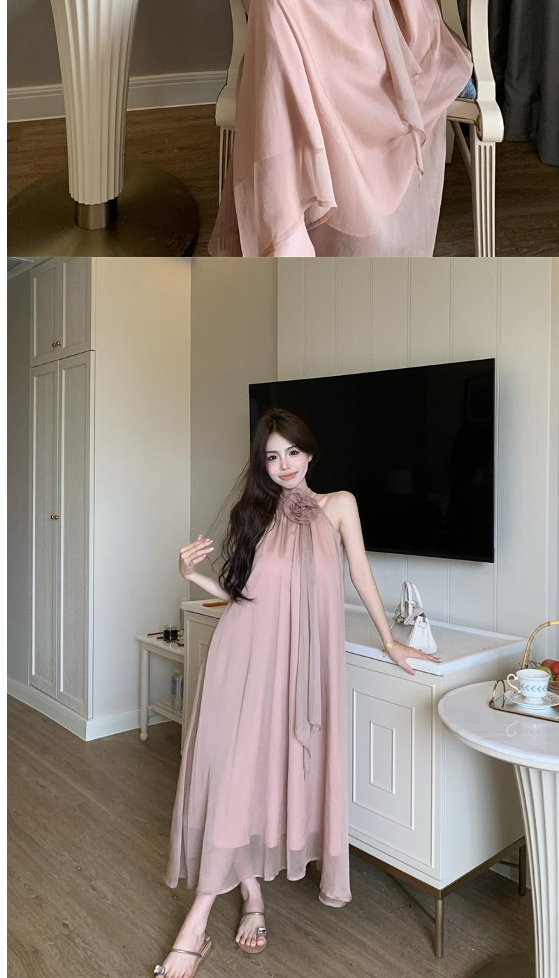 Vestido halter de malla con hombros descubiertos y flores de estilo suave para mujer, verano 2024, nuevo, rosa, falda larga holgada de corte A