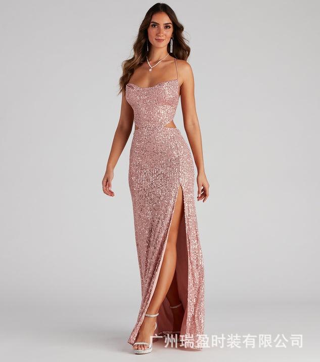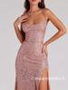 Vestido de Lentejuelas Nuevo de Venta Caliente Transfronterizo Europeo y Americano Moda Primavera Verano Sexy Tirantes Espalda Descubierta Abertura Alta Regalo para Dama