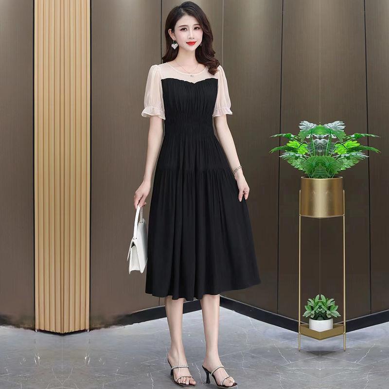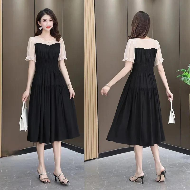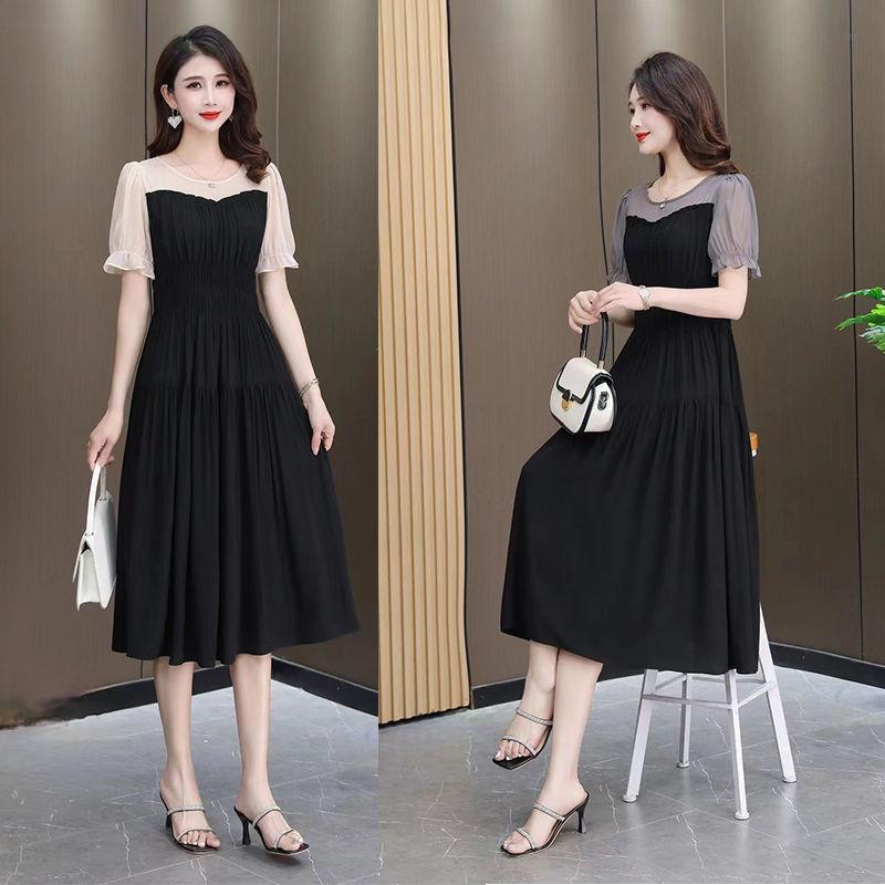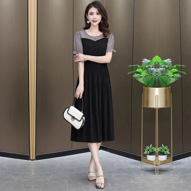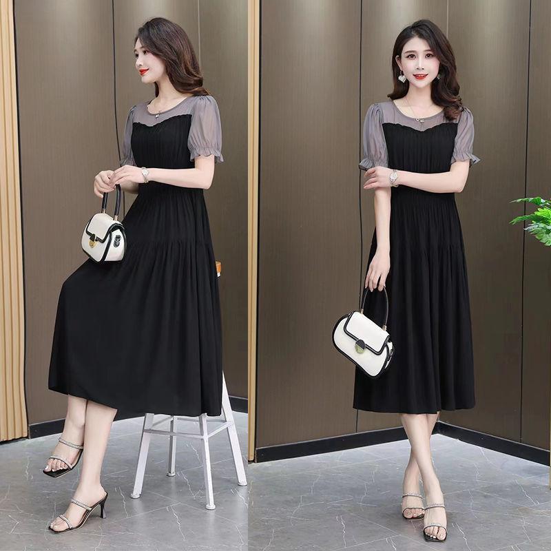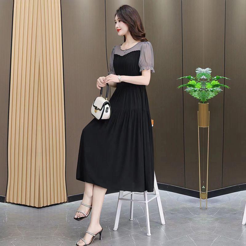 Vestido de mamá falso de dos piezas de manga corta para mujer, verano 2023, nuevo, joven, de moda, estilo occidental, adelgazante, de longitud media, envío gratis