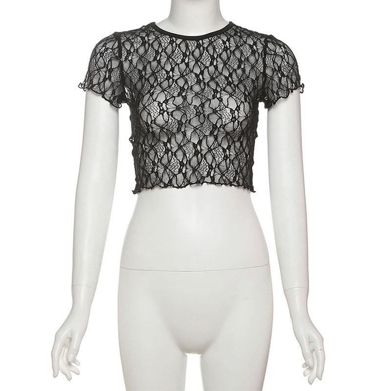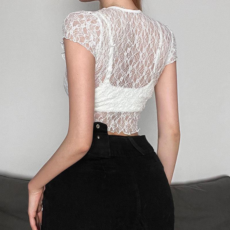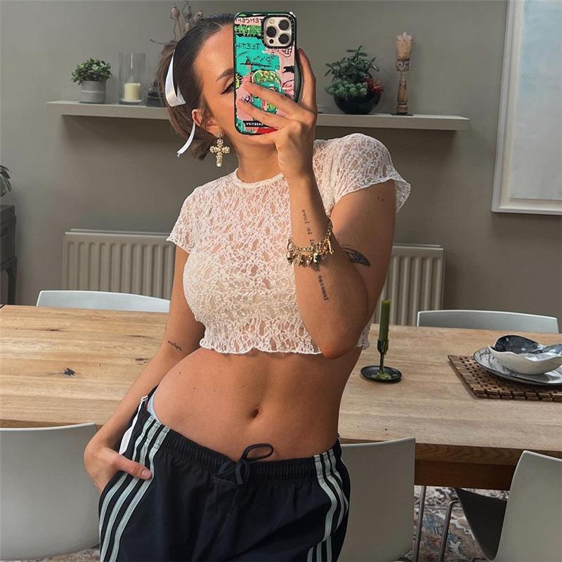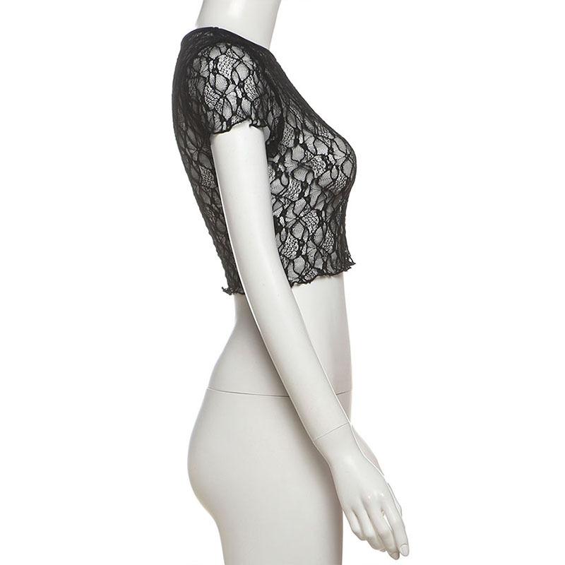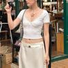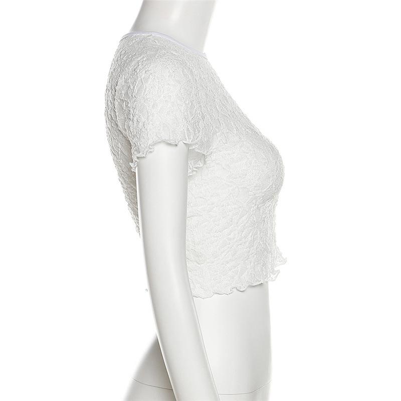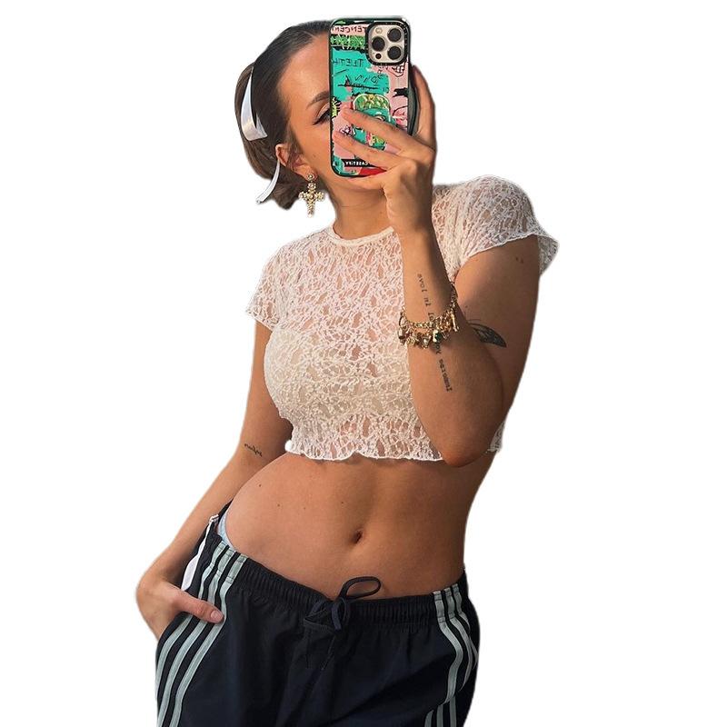 Camiseta versátil y ajustada de gasa de manga corta con cuello redondo para mujer, estilo transfronterizo europeo y americano, de verano 2023