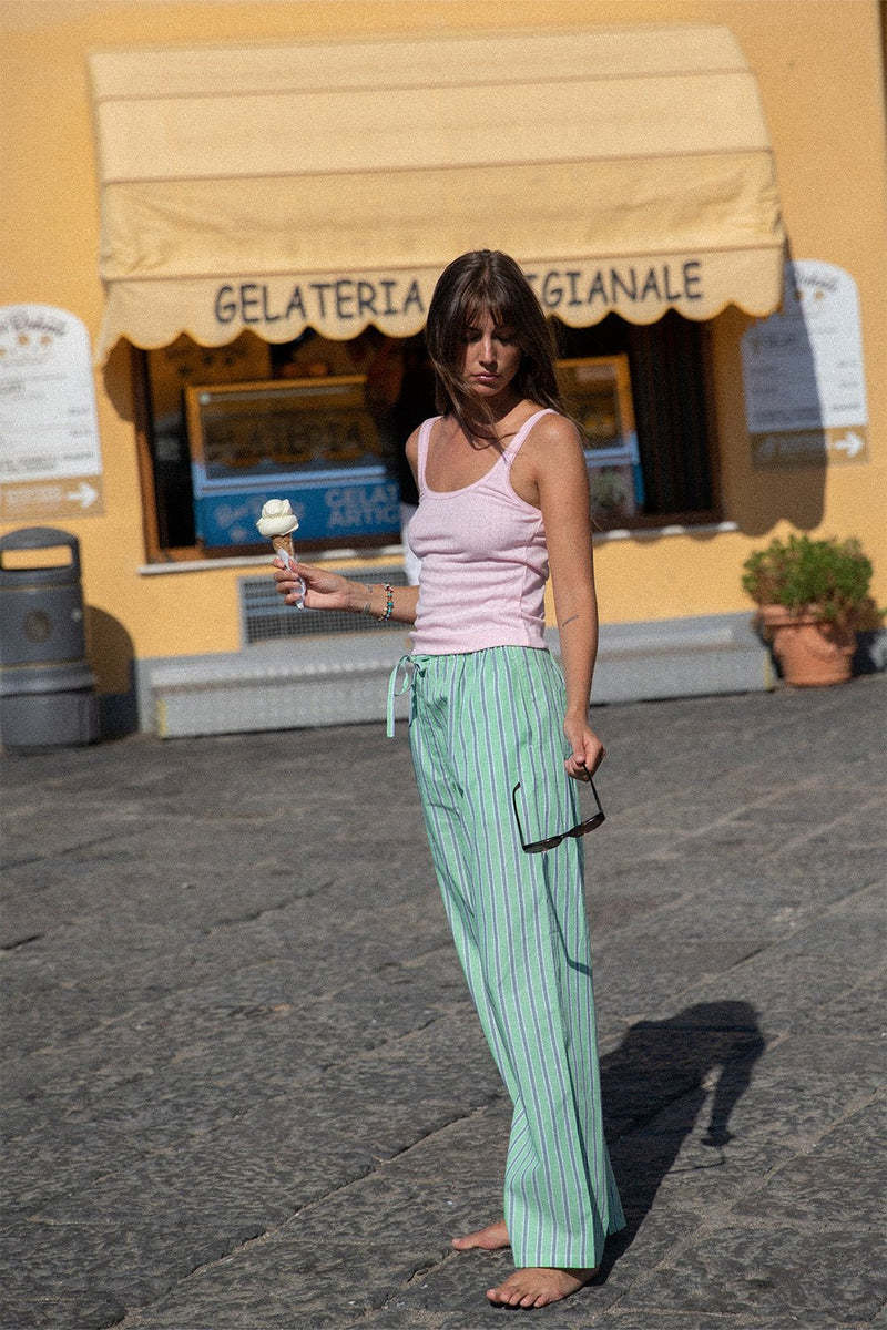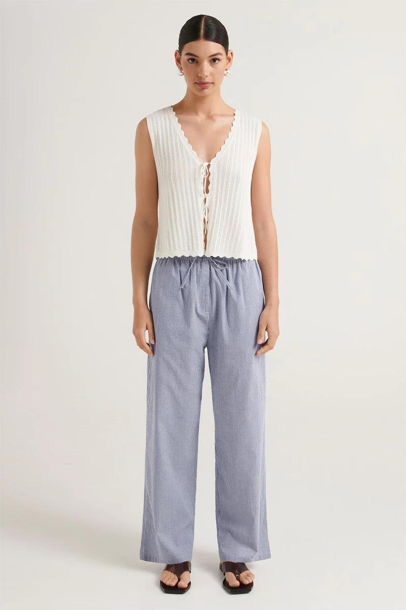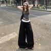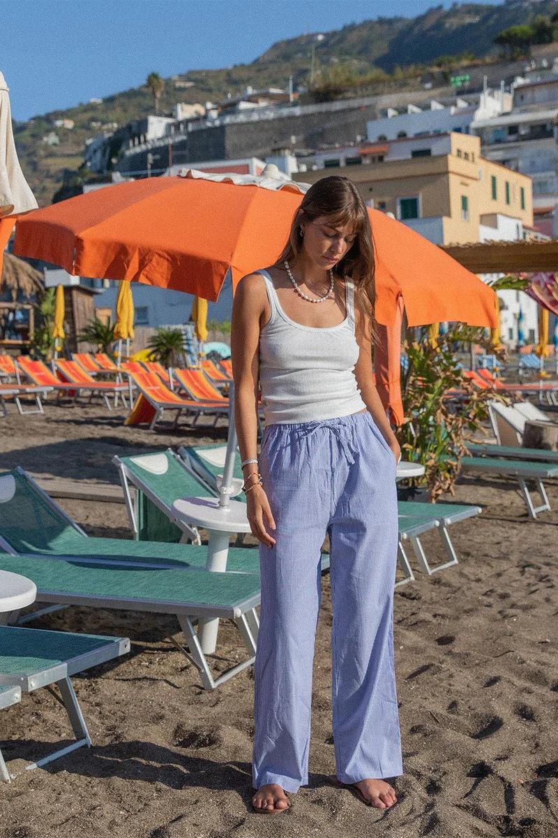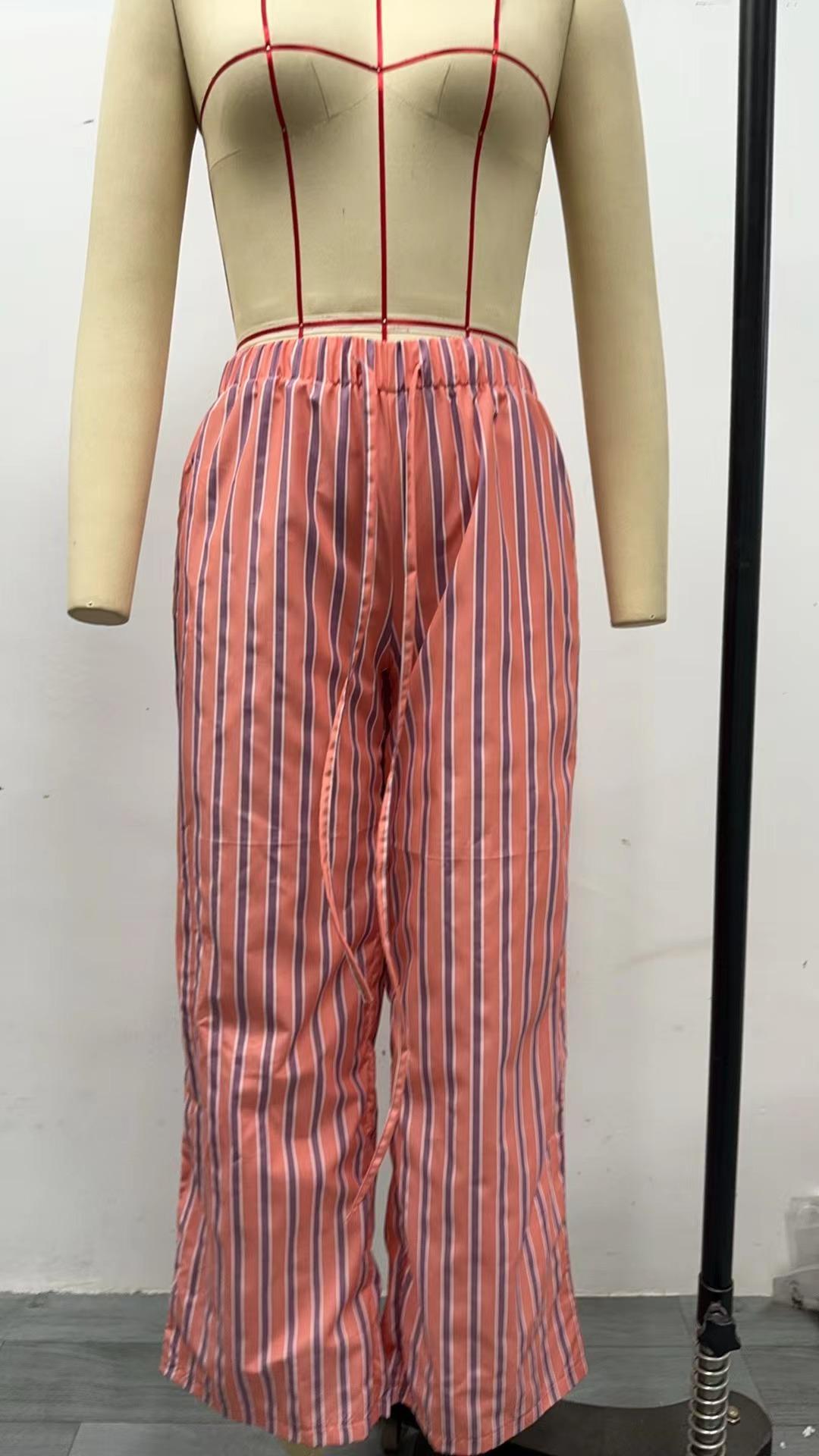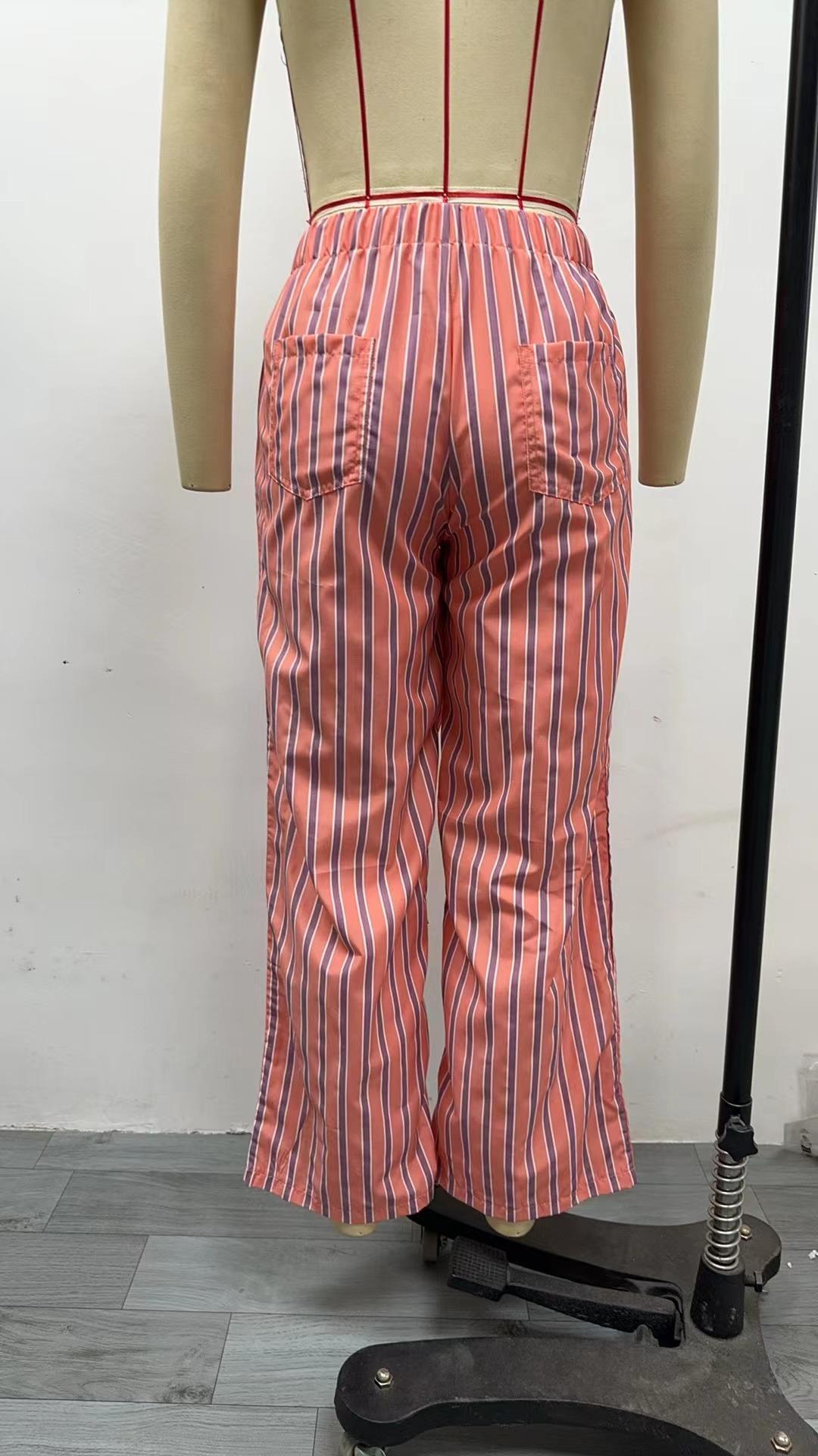Ropa transfronteriza para mujer, pantalones anchos de pierna recta a rayas con cordón de encaje, informales, holgados, de moda europea y americana, de verano, comercio exterior