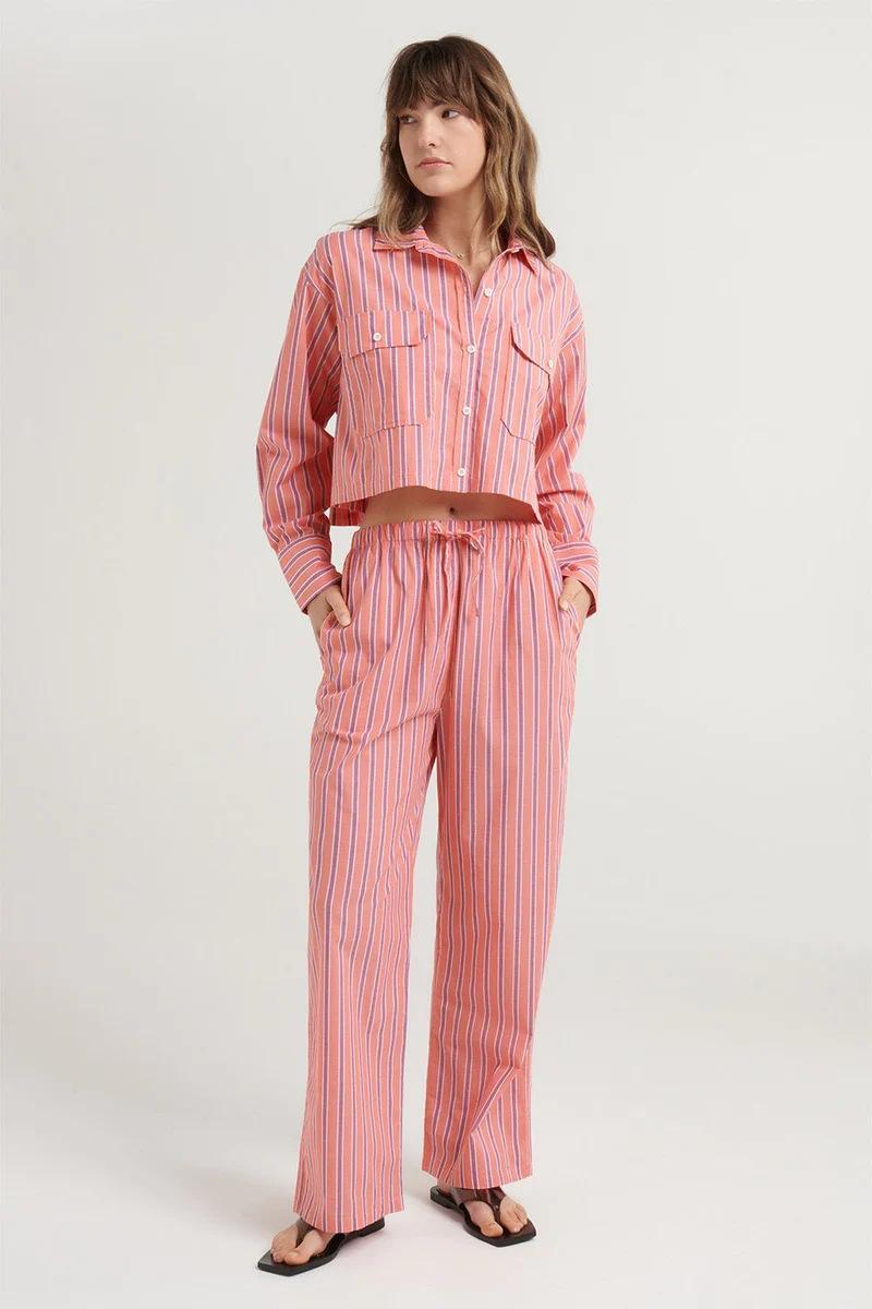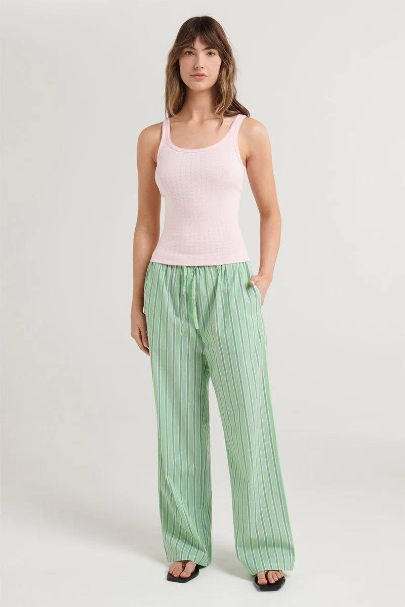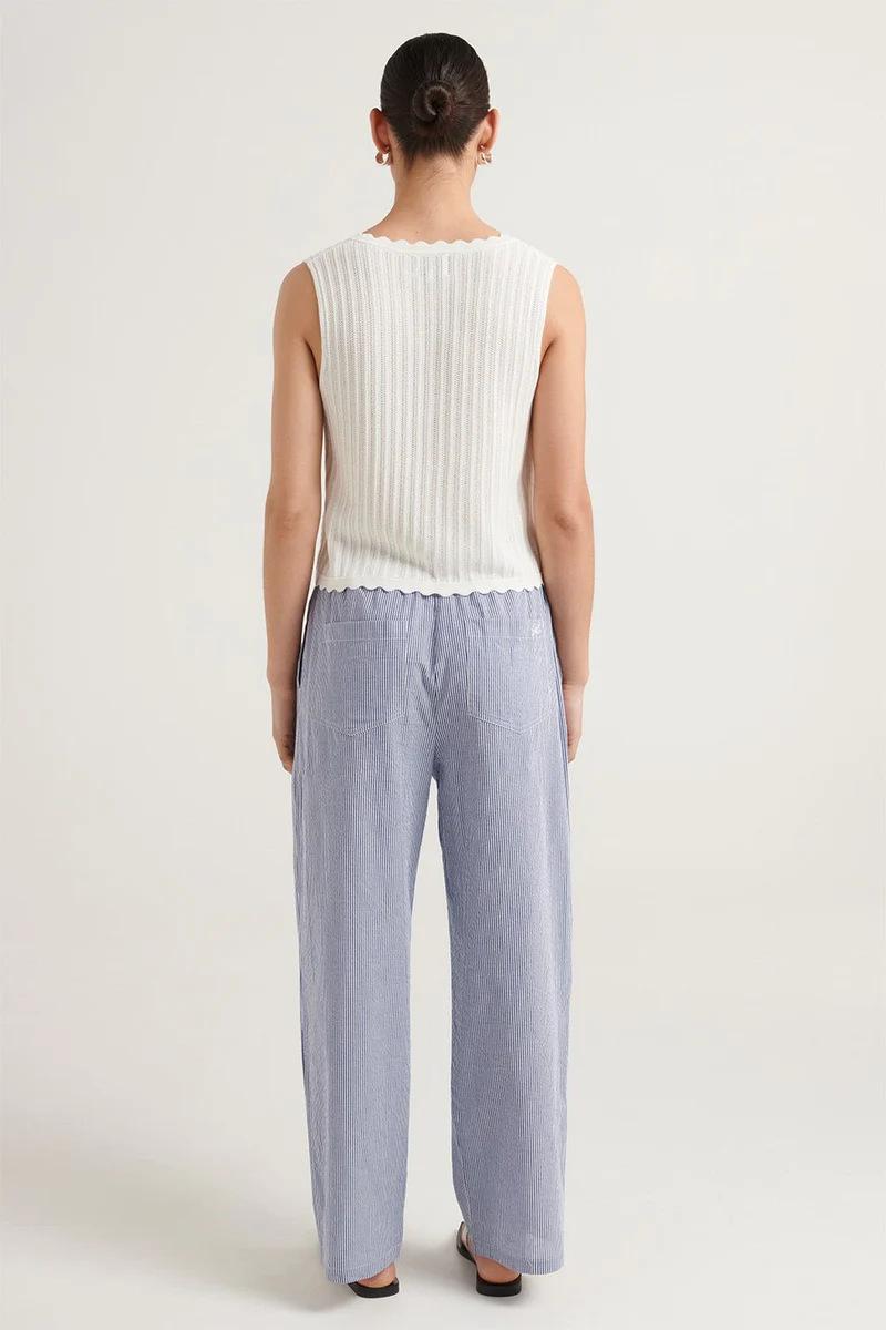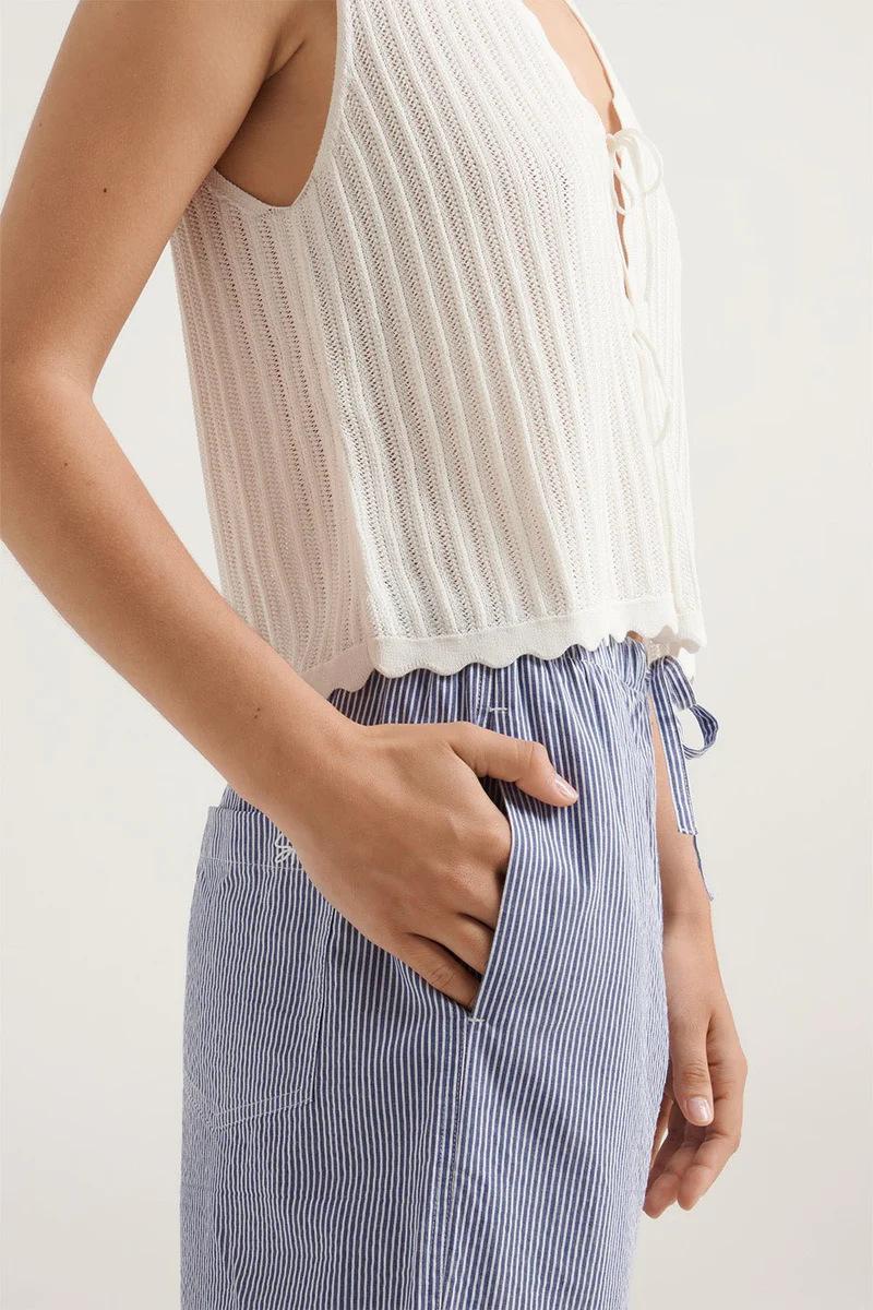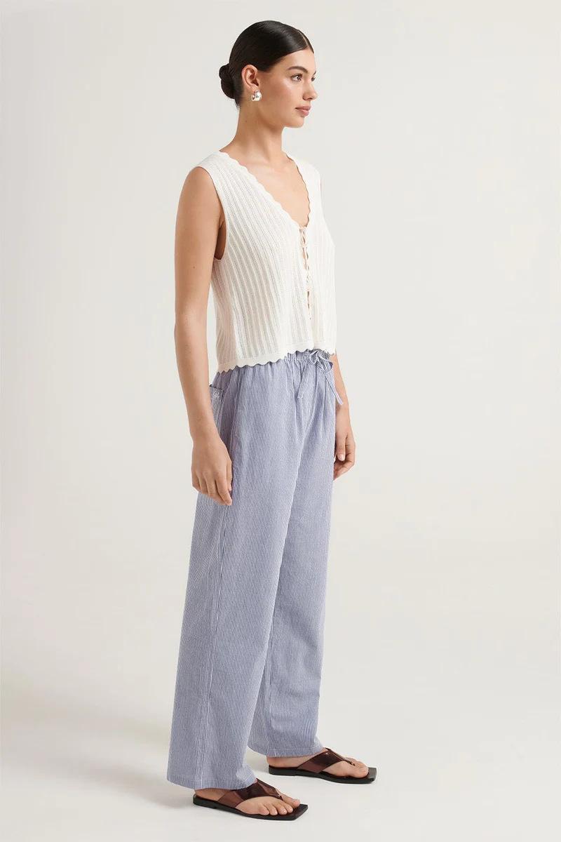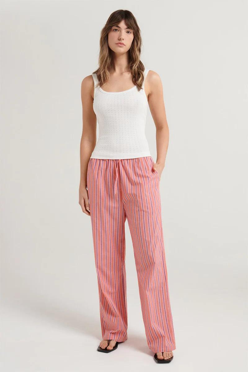 Ropa transfronteriza para mujer, pantalones anchos de pierna recta a rayas con cordón de encaje, informales, holgados, de moda europea y americana, de verano, comercio exterior