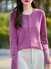 Cárdigan de punto de lana suave y encerado con cuello redondo, sencillo y elegante, con hebilla, para otoño e invierno, 2024