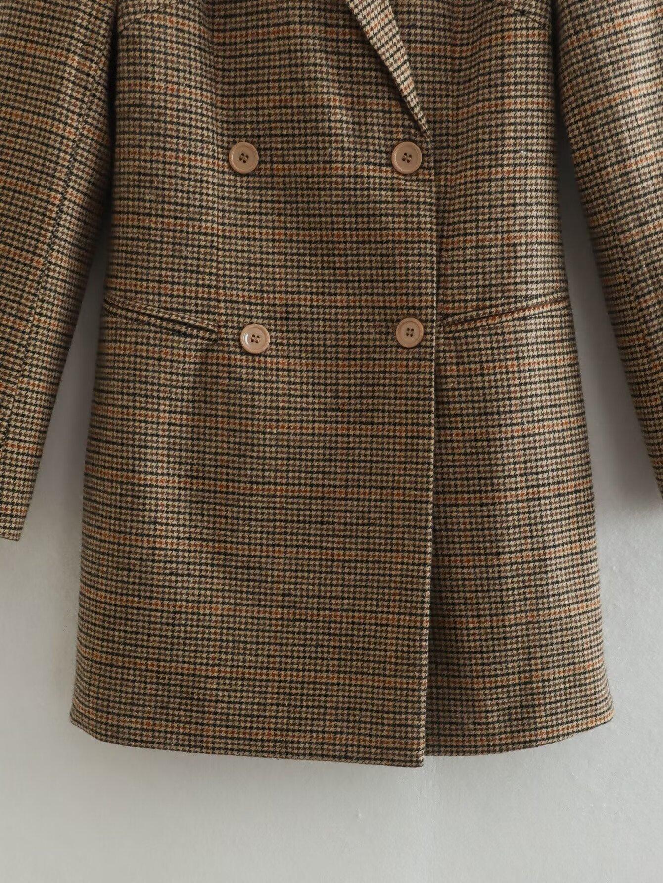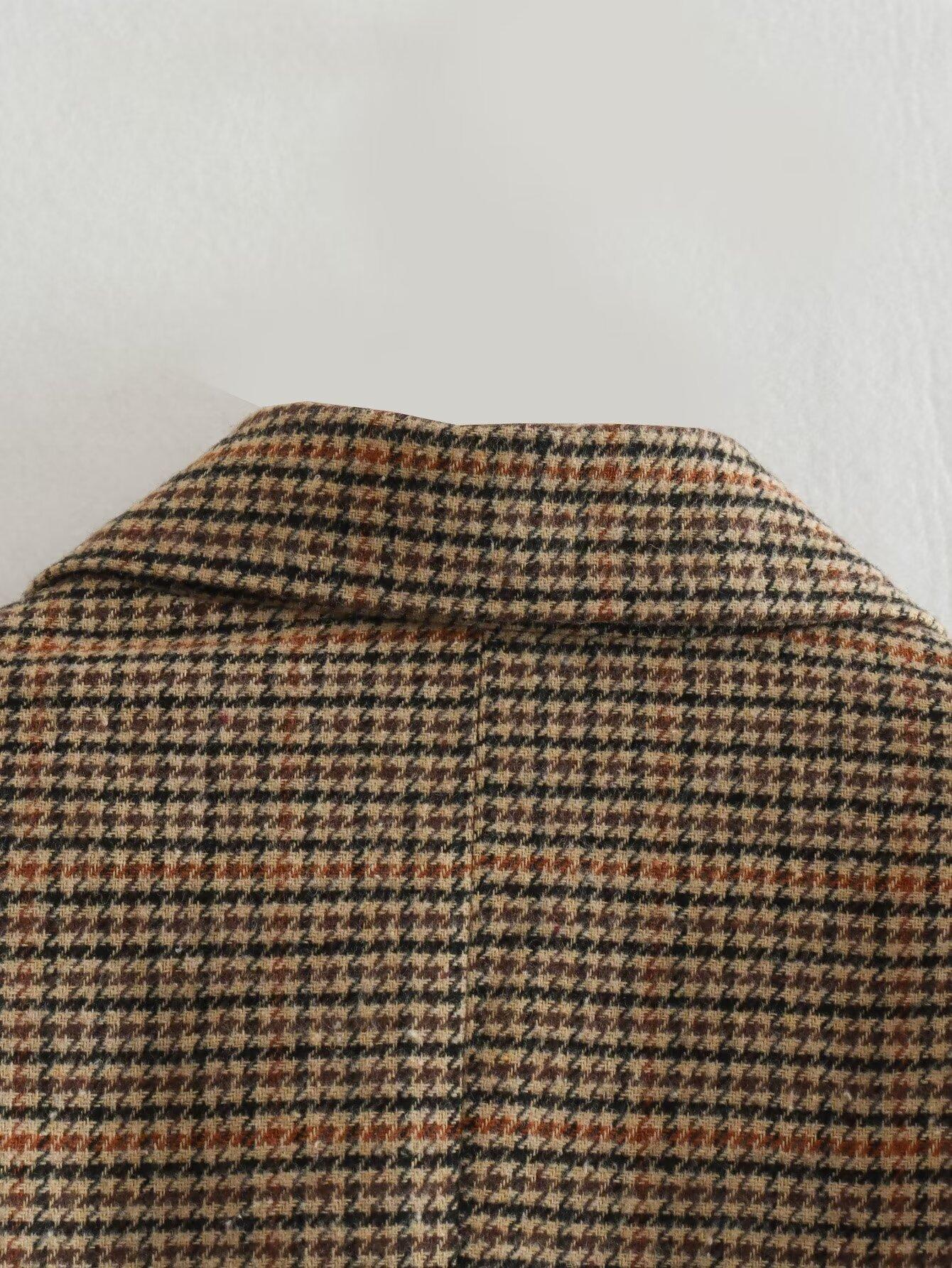 Chaqueta de traje larga a cuadros de moda urbana nueva de otoño e invierno 2024 para mujer europea y americana de comercio exterior transfronterizo de Amazon