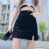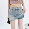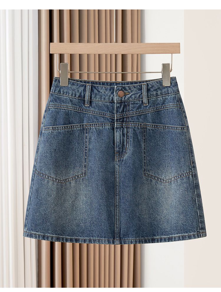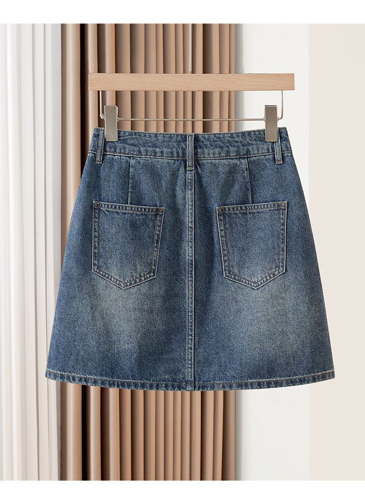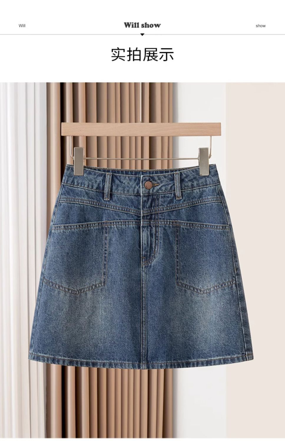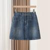 Falda Denim Azul Vintage a la Cadera Media Pierna para Mujer Verano Delgada 2024 Nueva Adelgazante Chicas Hot Antitransparente Falda Corta Línea A
