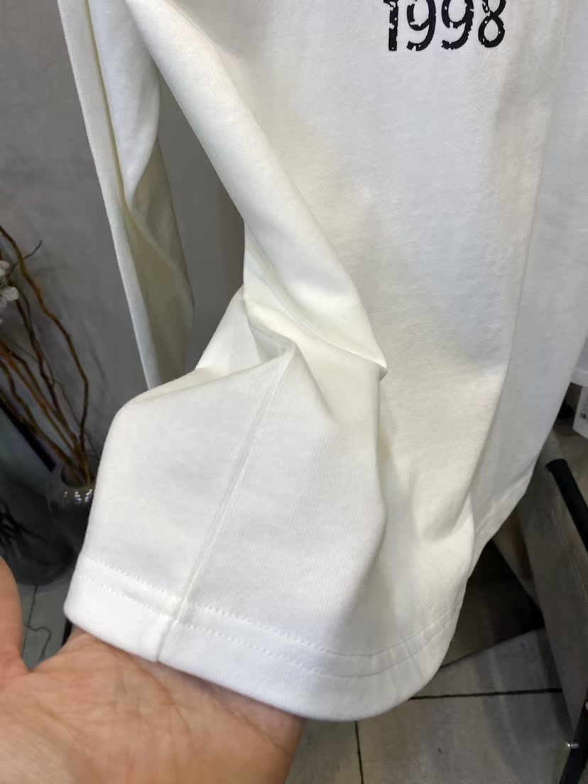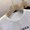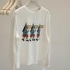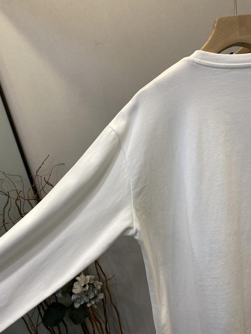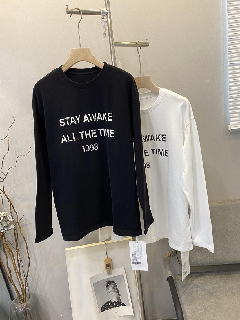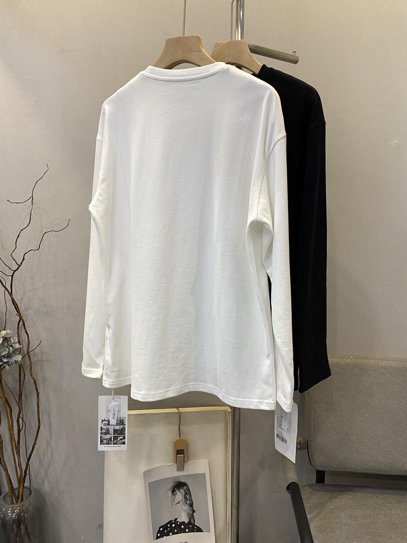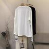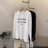 Camiseta Holgada de Algodón Lavado y Lijado con Estampado de Letras, Cuello Redondo Grande, Manga Larga Gruesa para Otoño e Invierno para Mujer