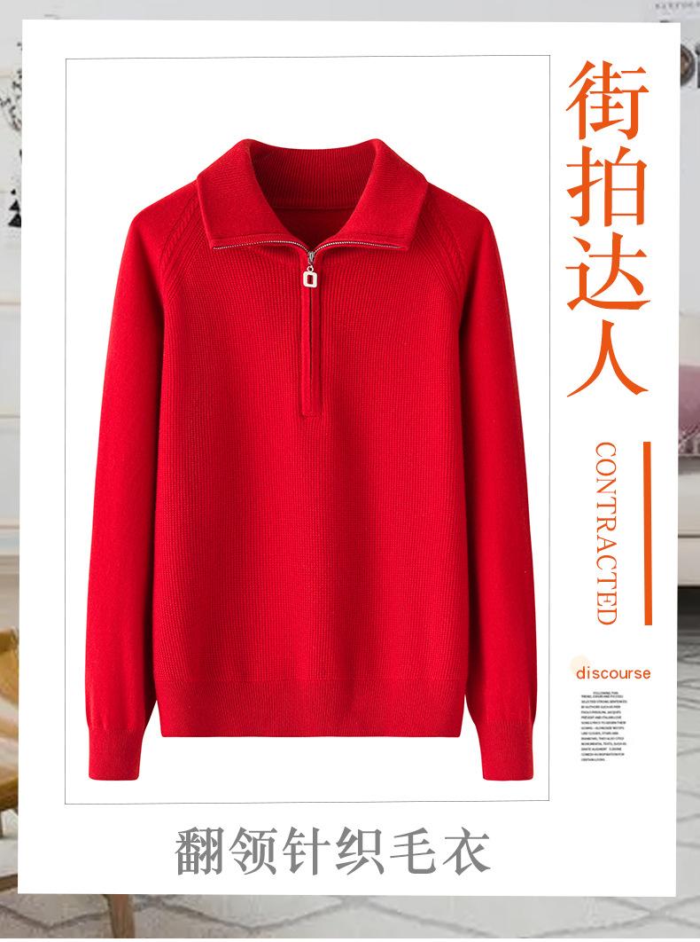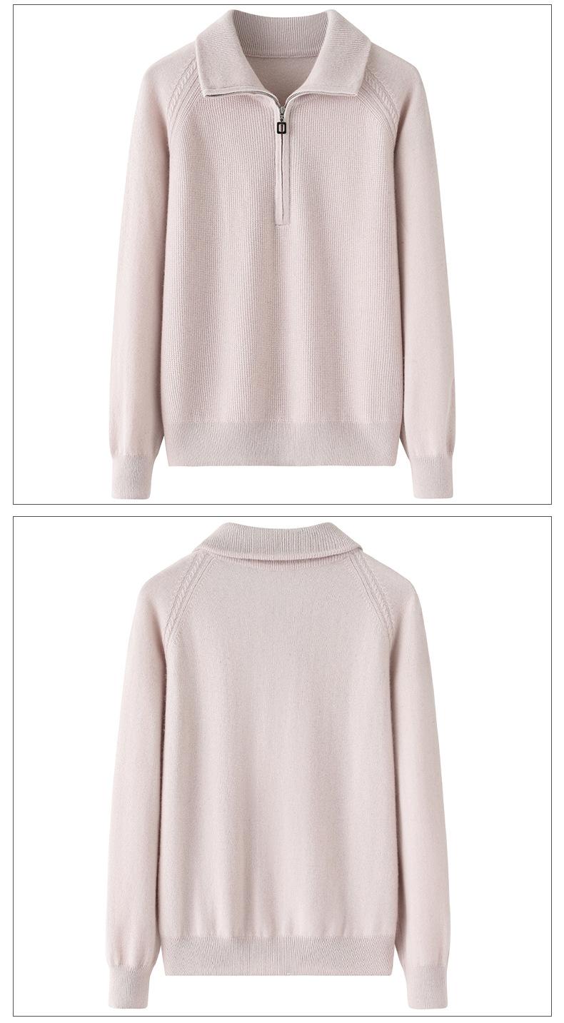 Suéter informal holgado de cachemira con cuello alto y media cremallera para mujer, moda de otoño e invierno, nueva camisa de punto suelta