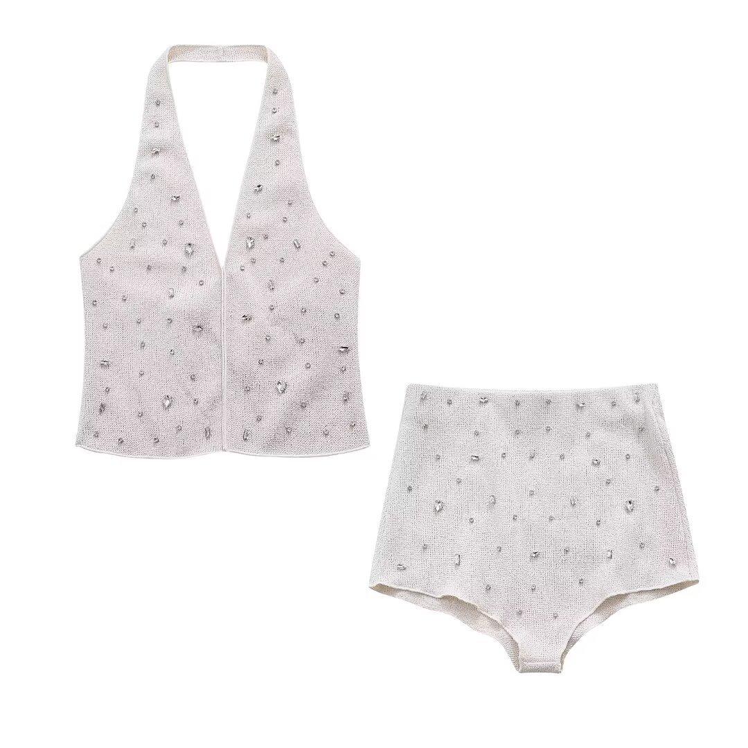 Amazon comercio exterior transfronterizo joyería para mujer europea y americana incrustada colgante collar de cuello superior cintura alta pierna ancha conjunto de calzoncillos