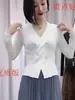Suéter europeo de cuello en V cruzado con abertura para mujer 2024 nuevo diseño color puro ajustado versátil top para usar debajo