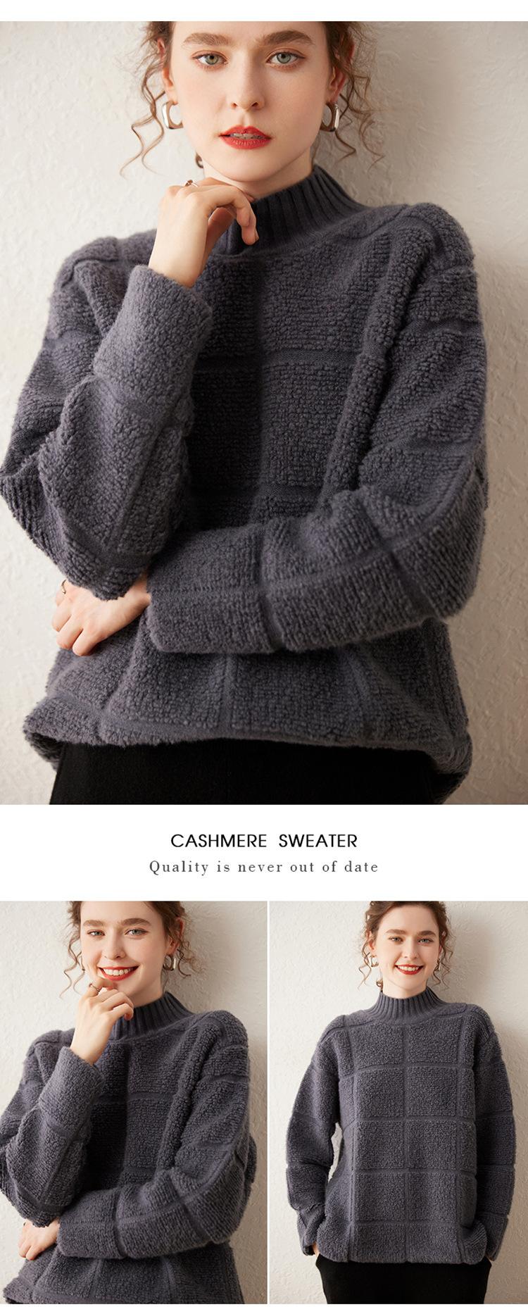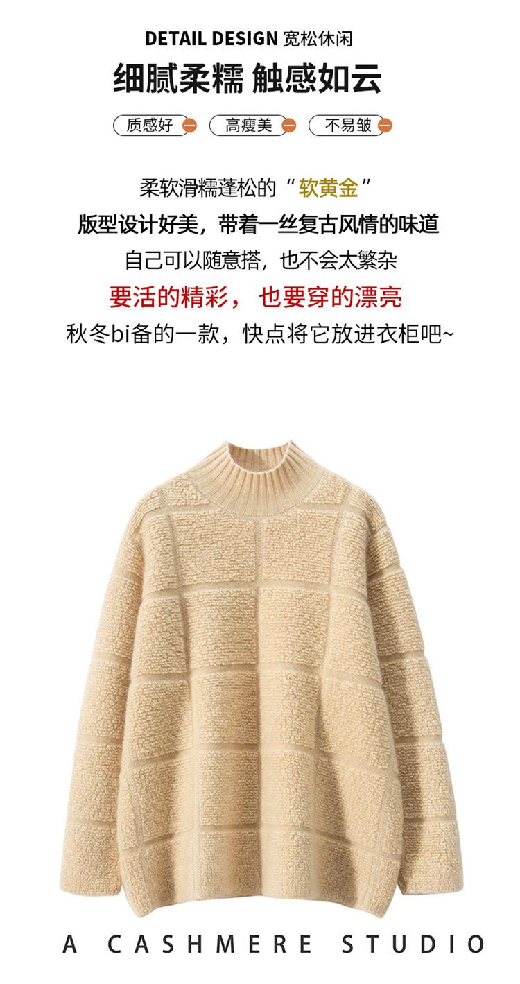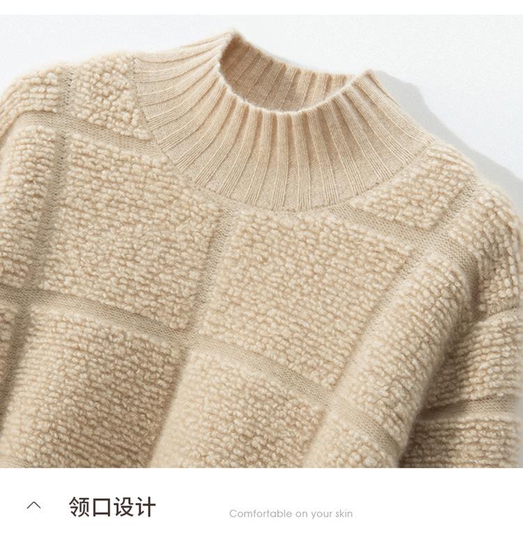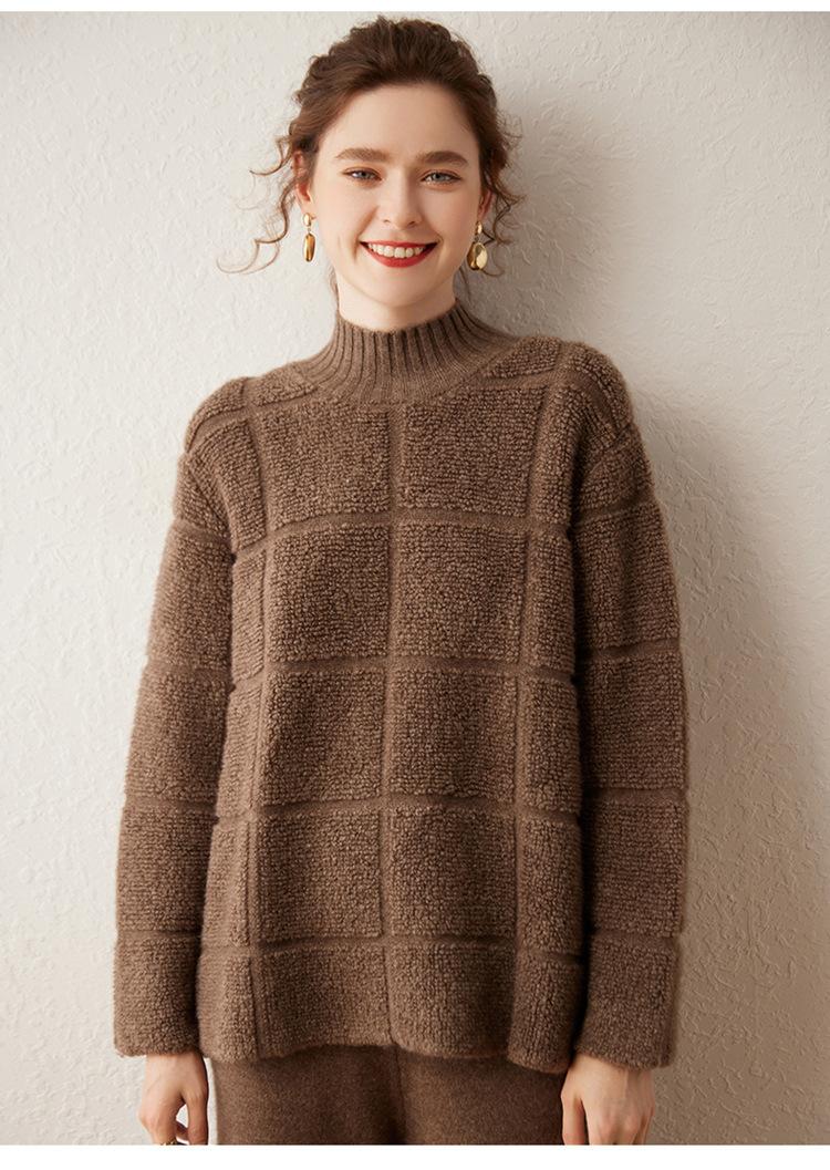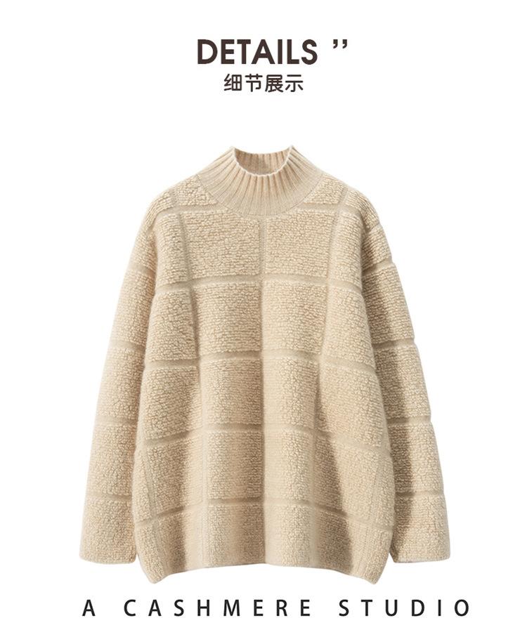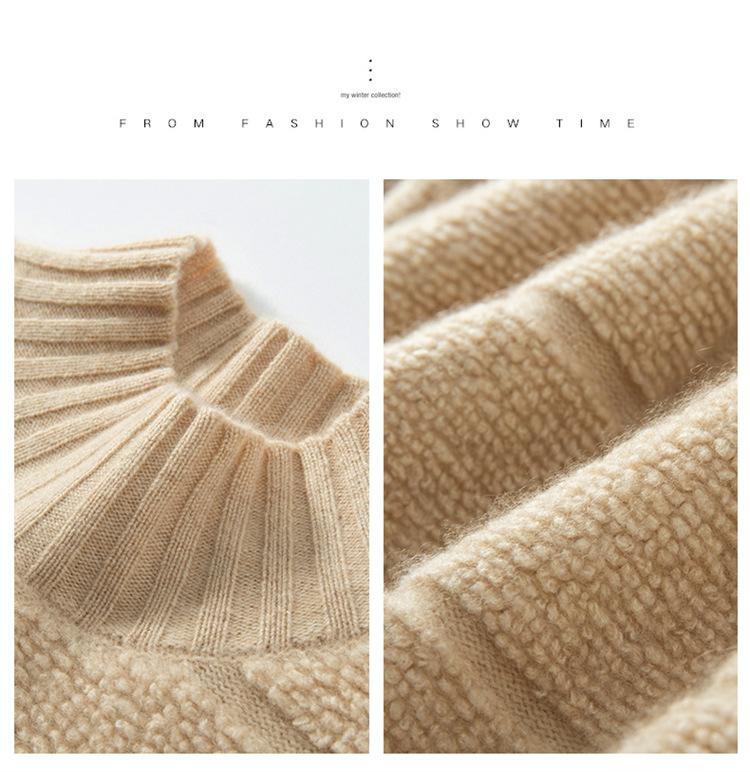 Suéter de cachemira vintage con anillo de toalla grueso para mujer, camisa holgada de cuello medio alto con base de cachemira, otoño e invierno, nuevo