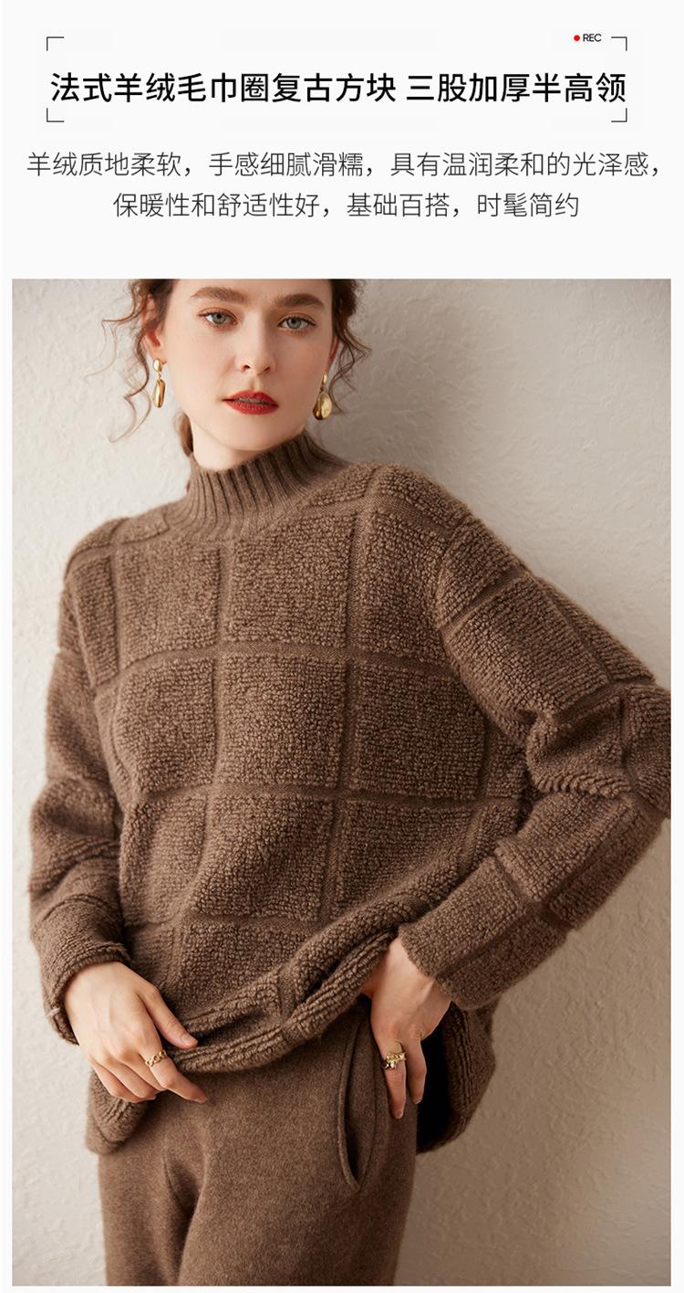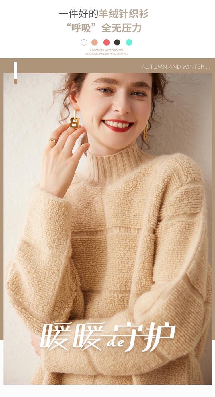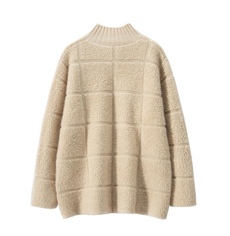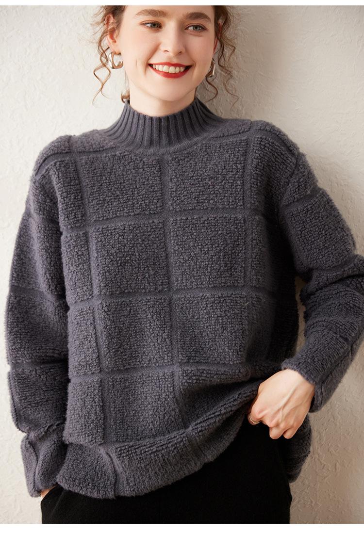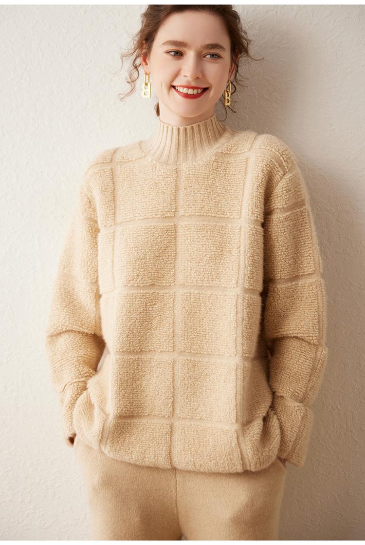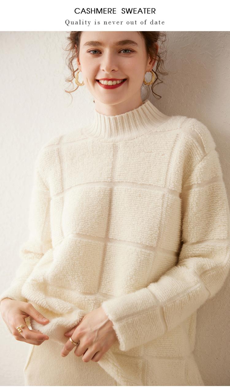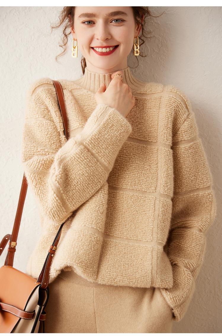 Suéter de cachemira vintage con anillo de toalla grueso para mujer, camisa holgada de cuello medio alto con base de cachemira, otoño e invierno, nuevo