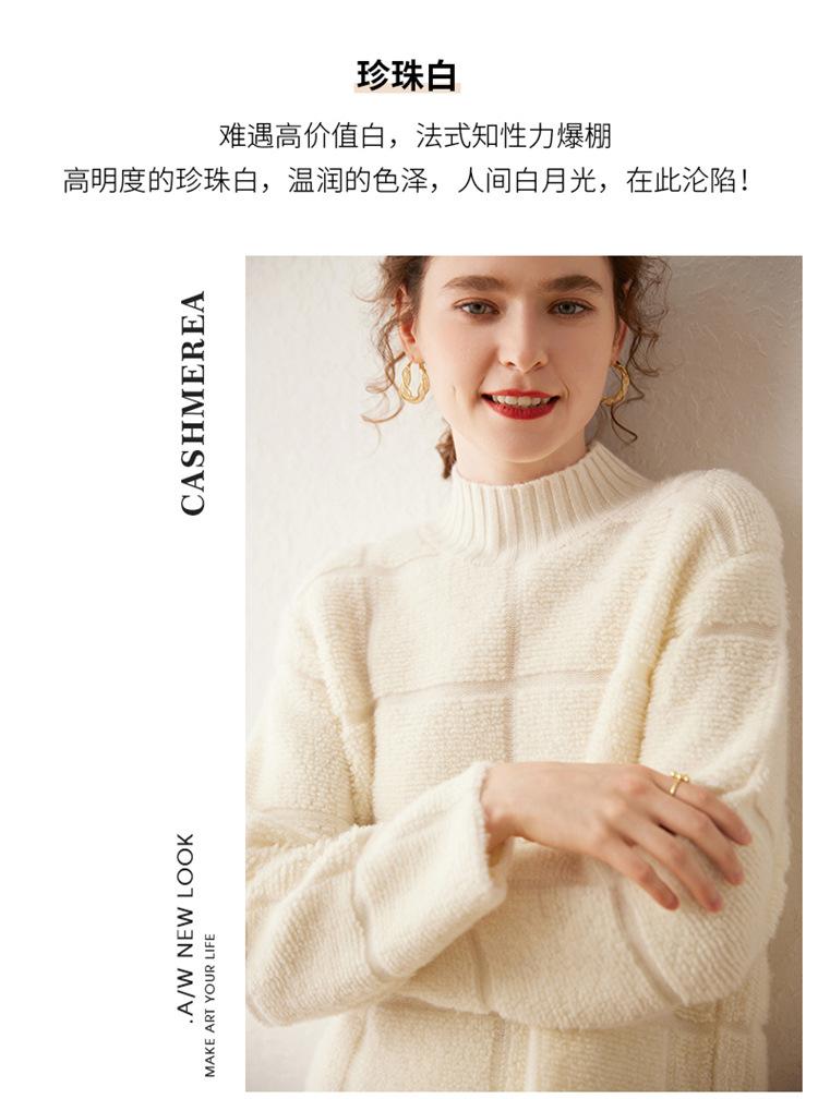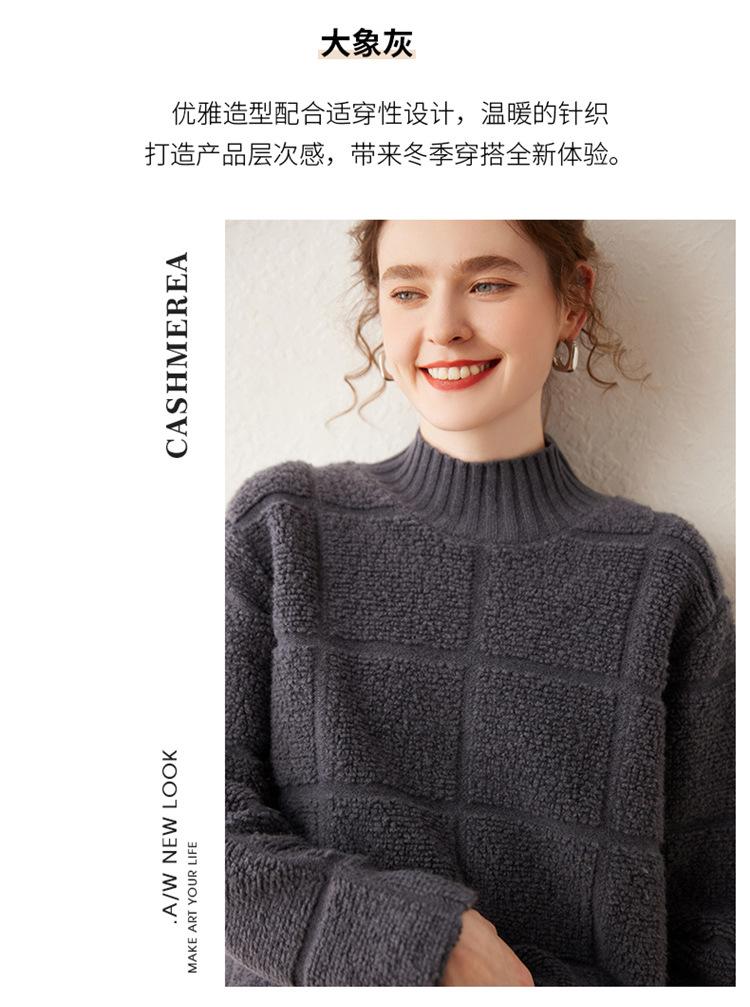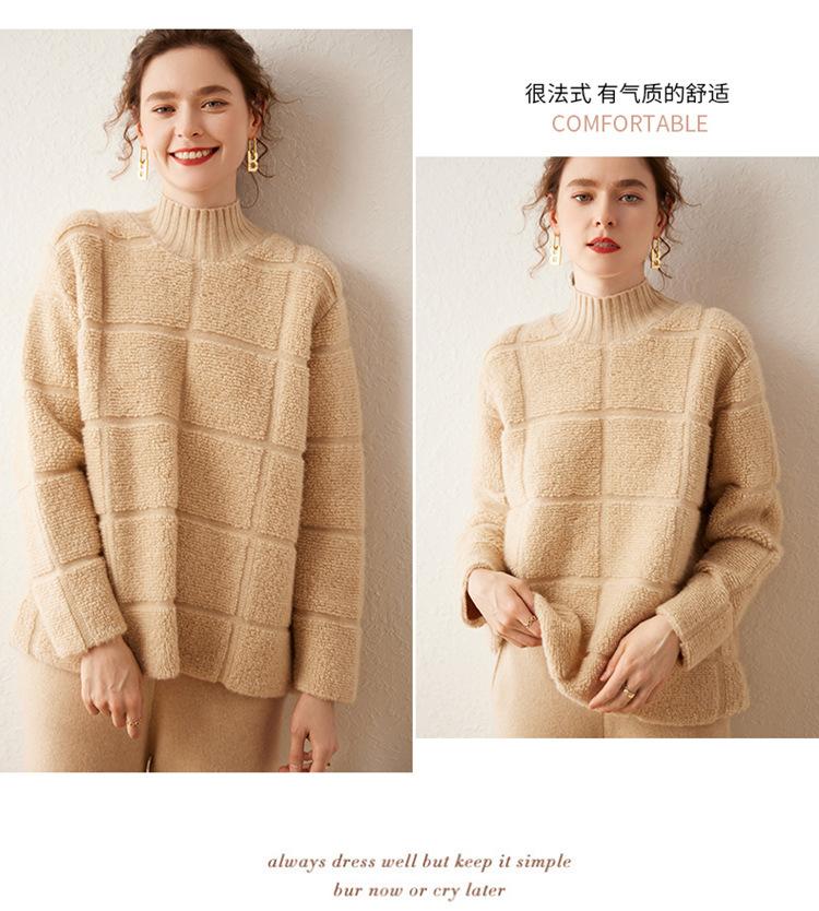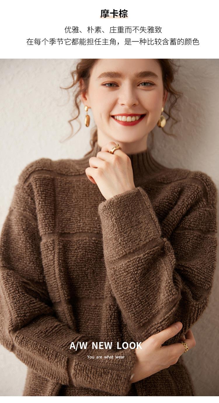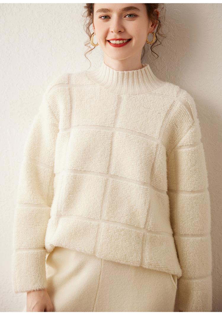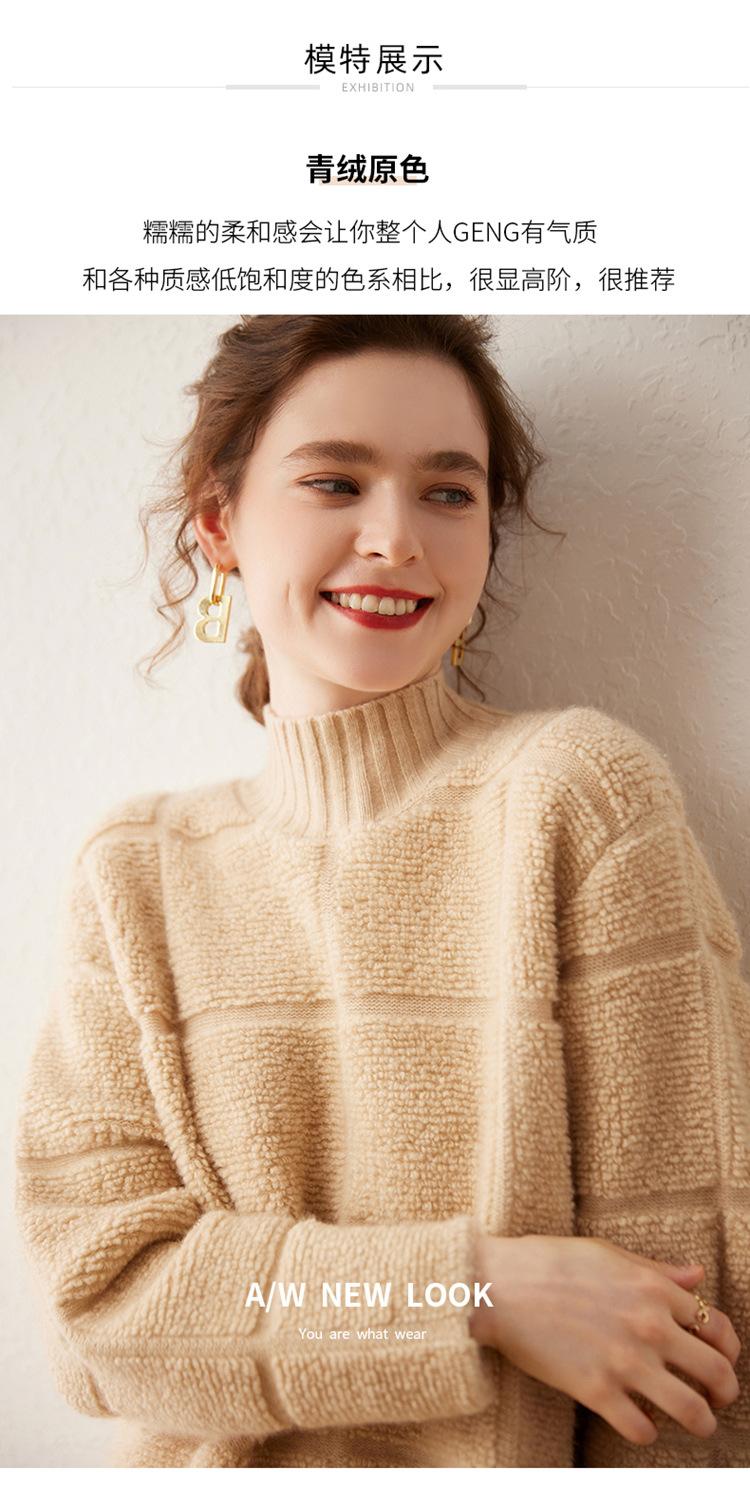 Suéter de cachemira vintage con anillo de toalla grueso para mujer, camisa holgada de cuello medio alto con base de cachemira, otoño e invierno, nuevo