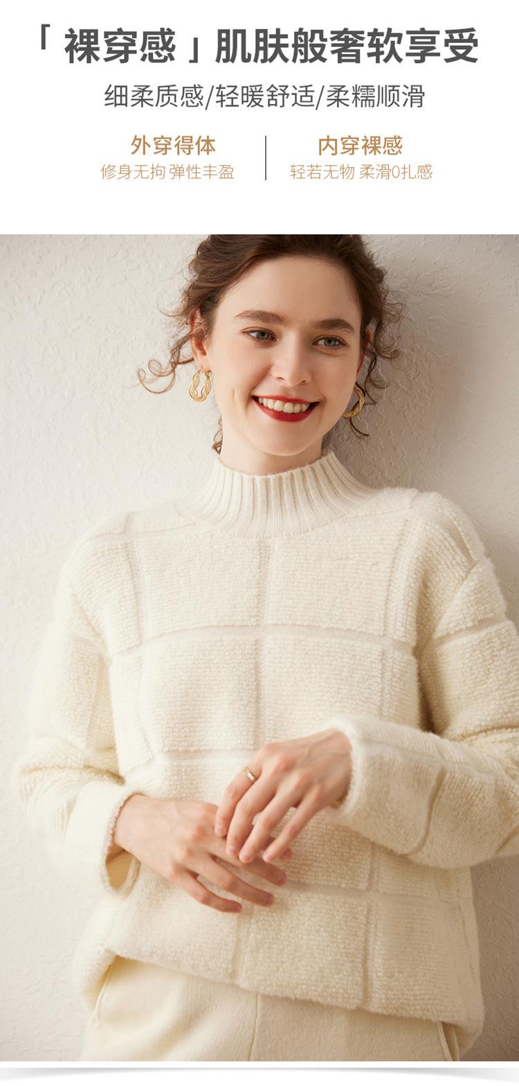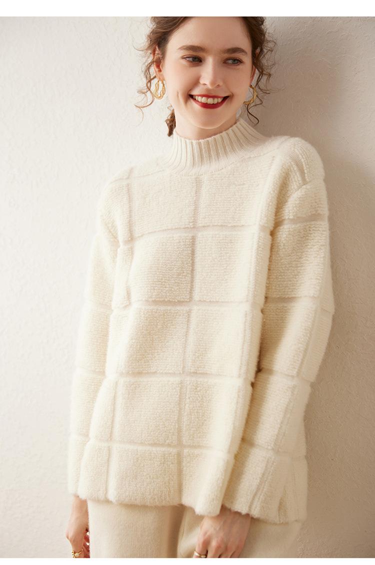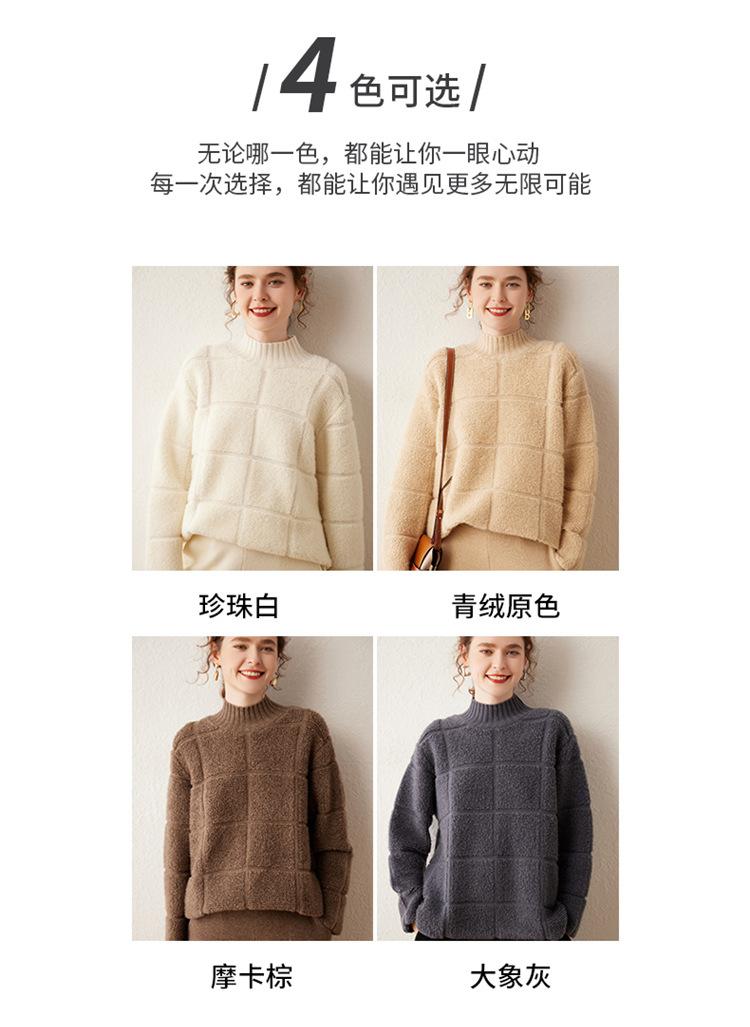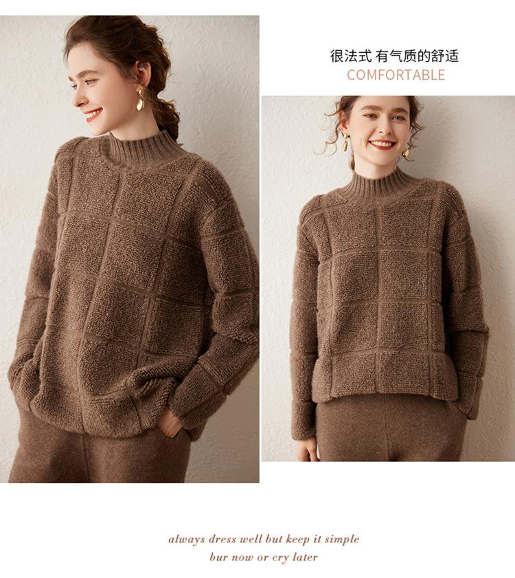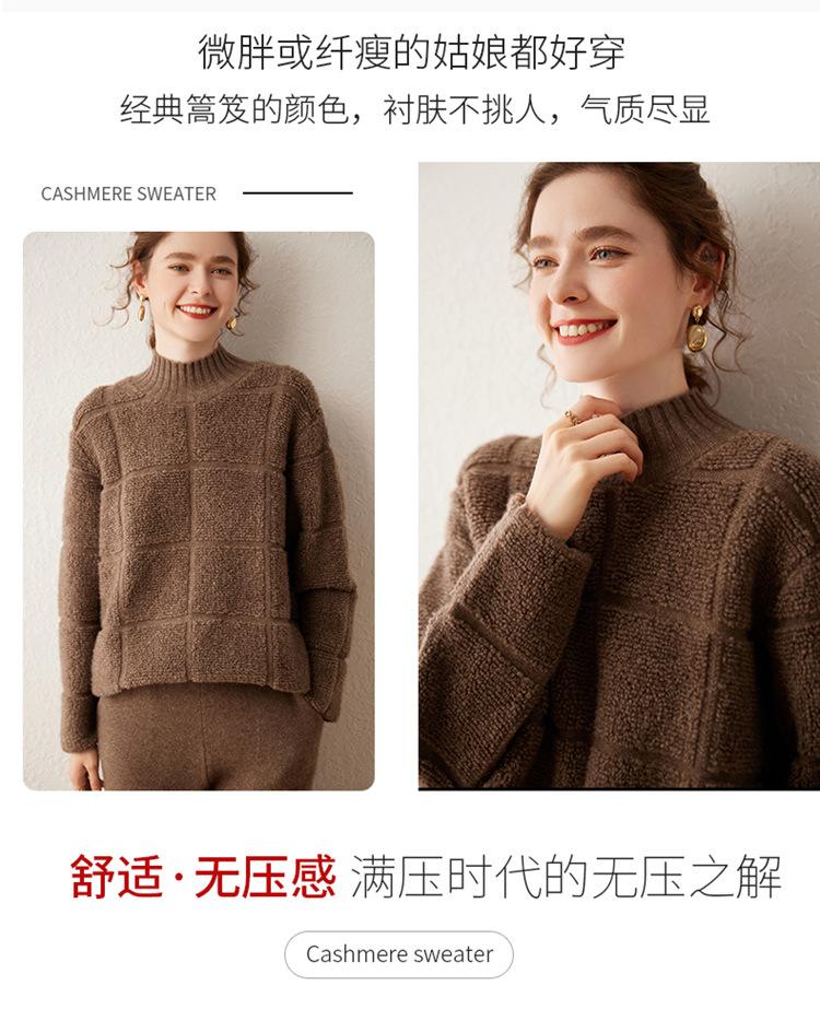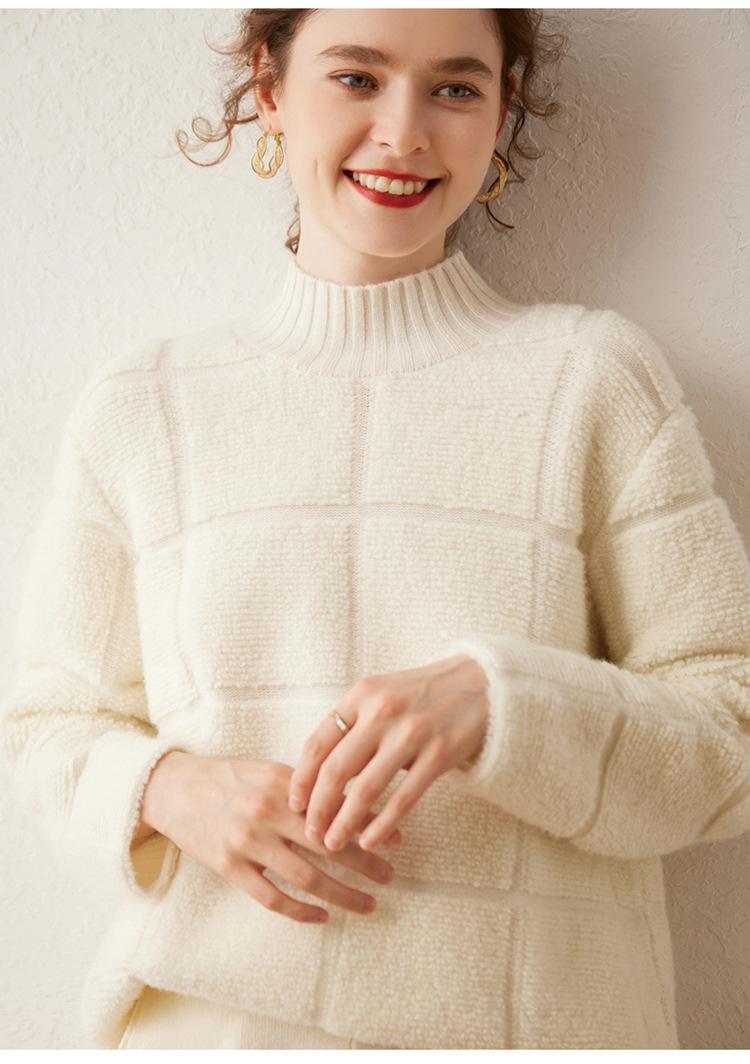 Suéter de cachemira vintage con anillo de toalla grueso para mujer, camisa holgada de cuello medio alto con base de cachemira, otoño e invierno, nuevo