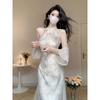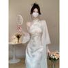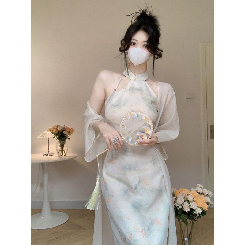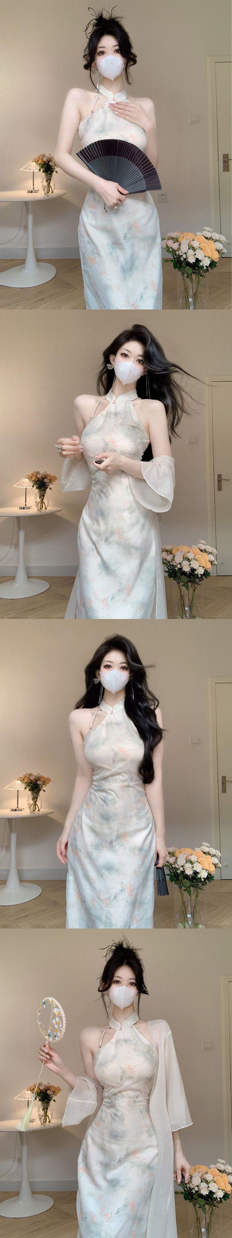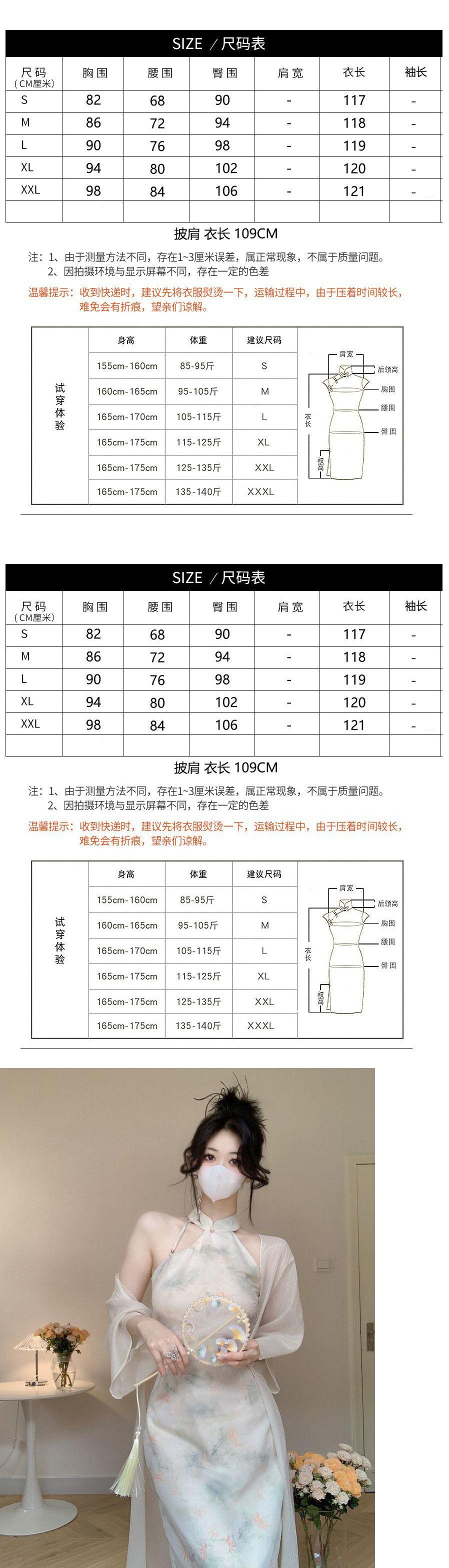 Single piece cheongsam printed with lining, Single long shawl, Cheongsam + long shawl [suit] printed with lini...