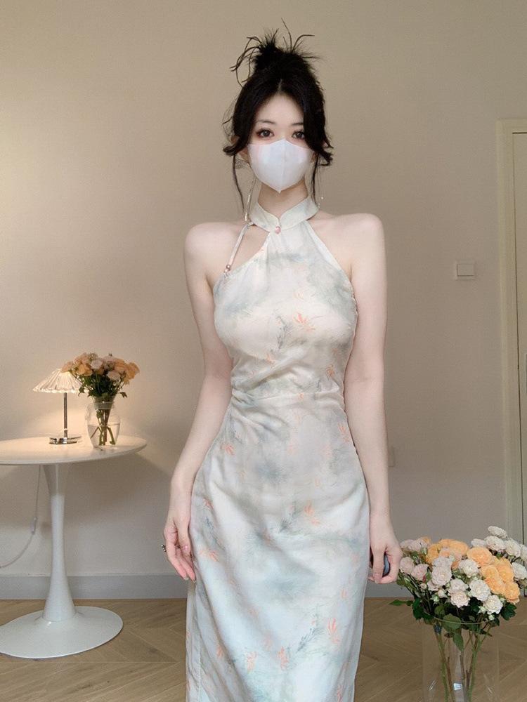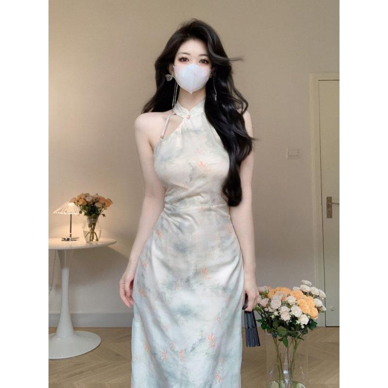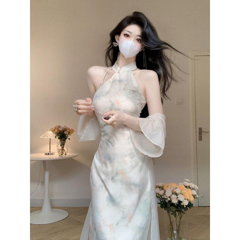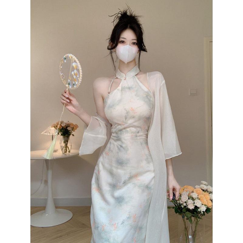 Nuomijia Pintura de Tinta Vestido Nuevo Chinoiserie Femenino Estilo Nacional Zen Cheongsam Mejorado Traje de Dos Piezas para Chica Joven
