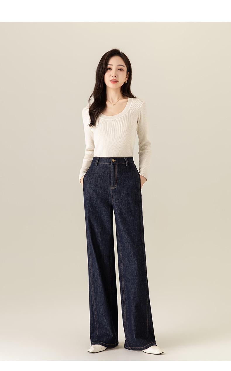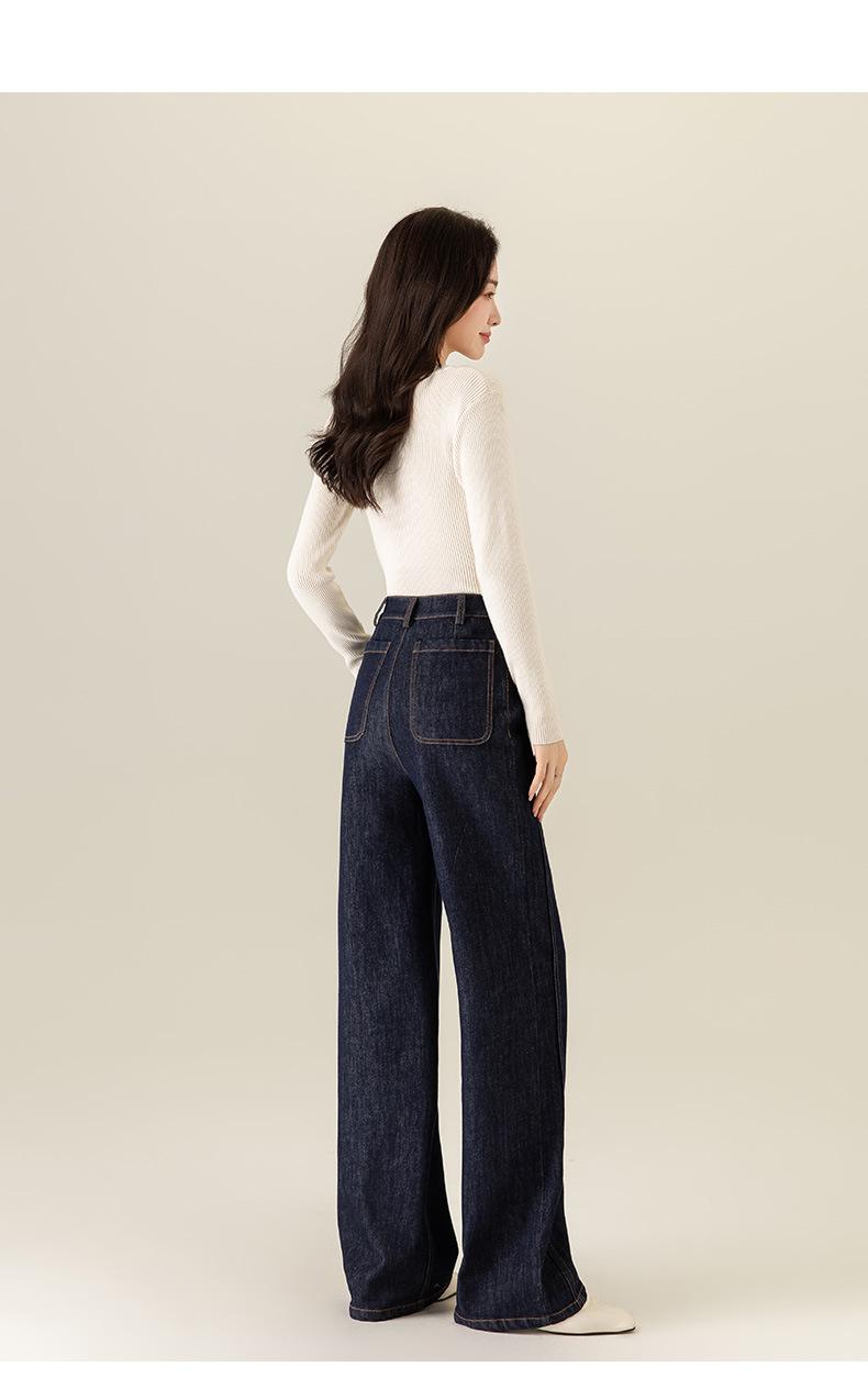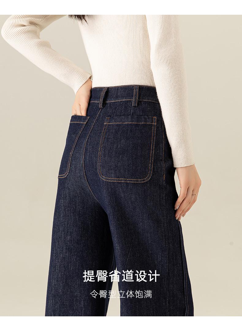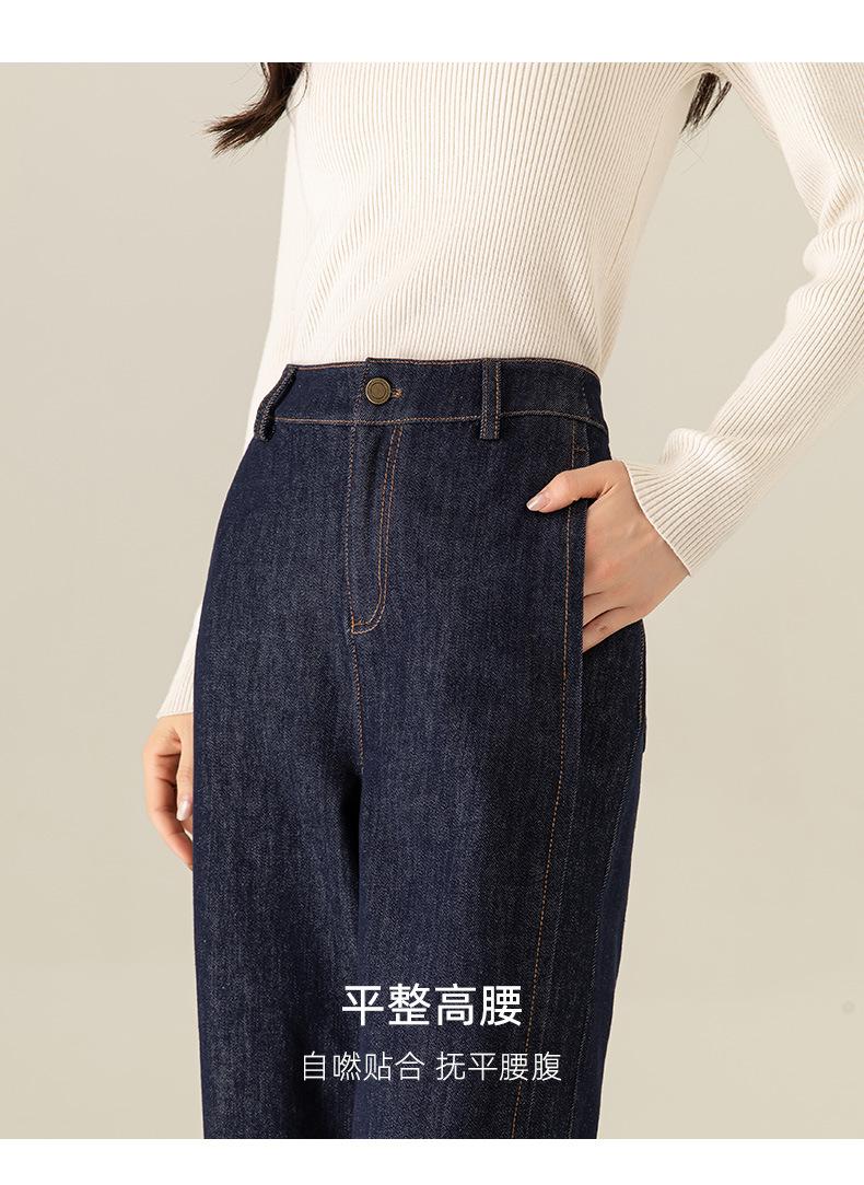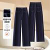 Xingge Jeans de mezclilla azul oscuro de color inalterable de pierna recta para mujer 2025 Otoño e Invierno Nuevo pantalón adelgazante de pierna ancha