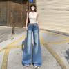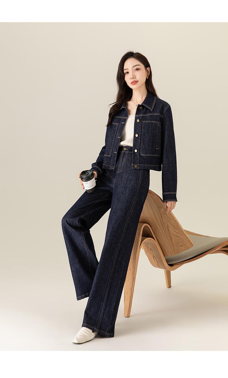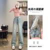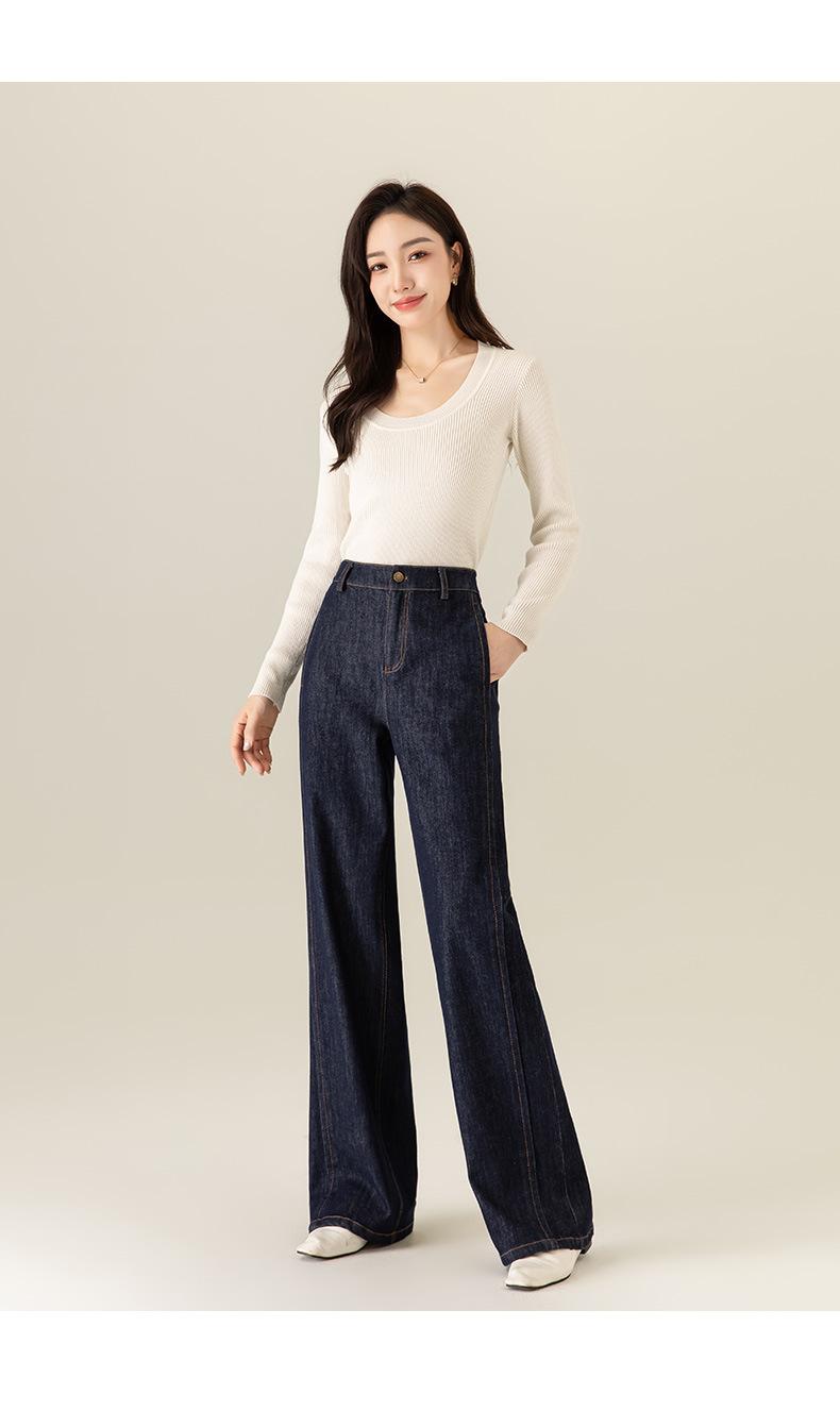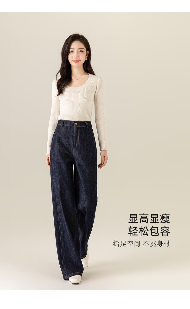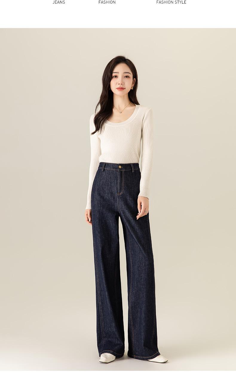 Xingge Jeans de mezclilla azul oscuro de color inalterable de pierna recta para mujer 2025 Otoño e Invierno Nuevo pantalón adelgazante de pierna ancha