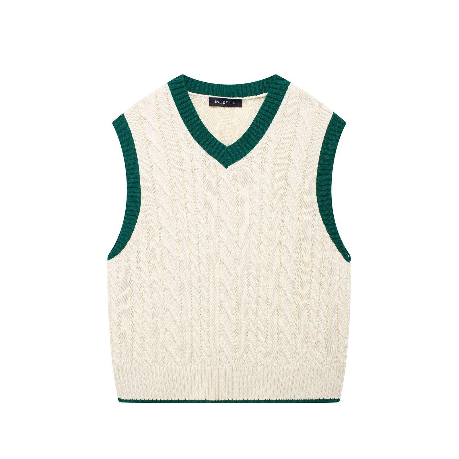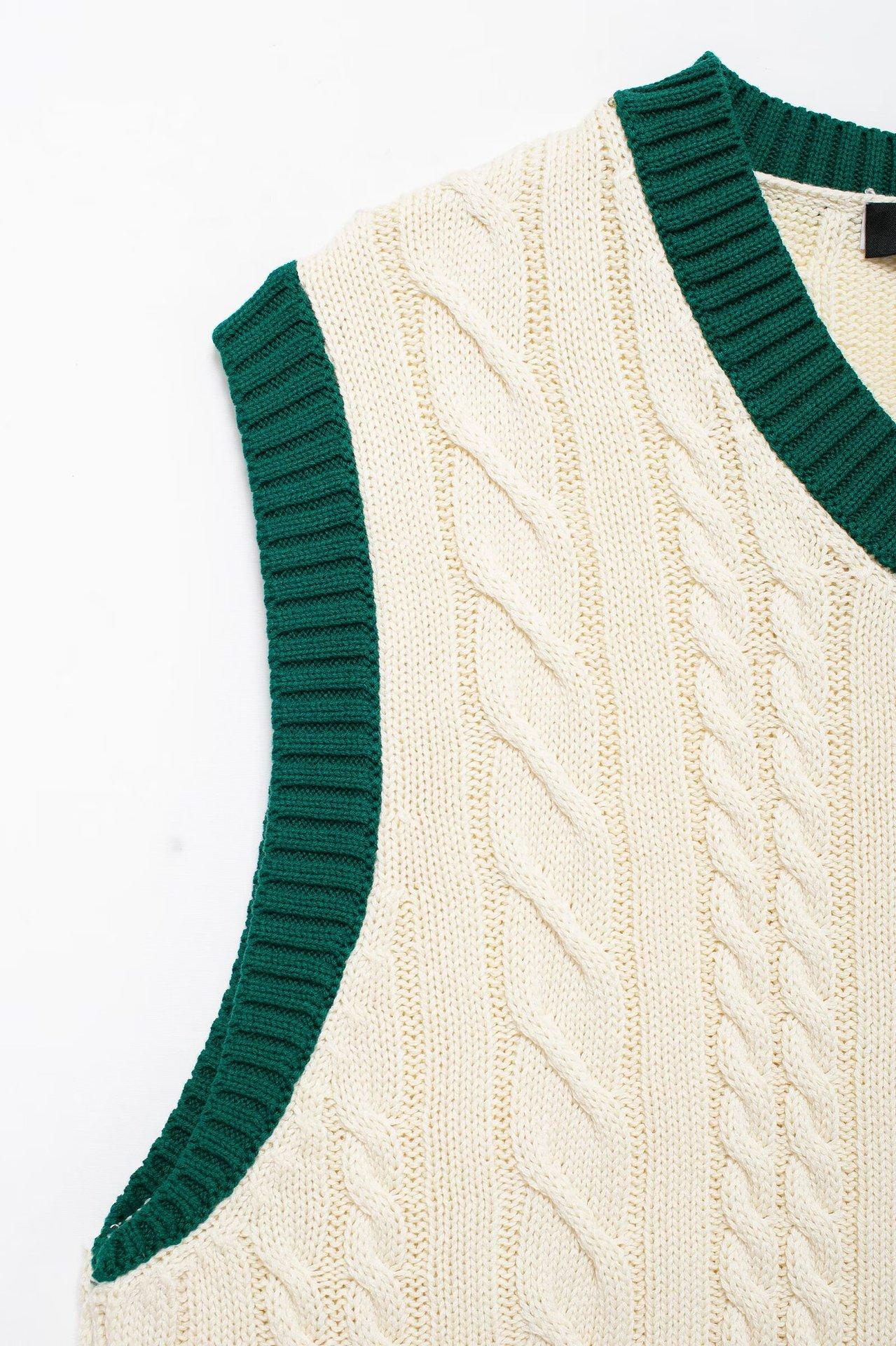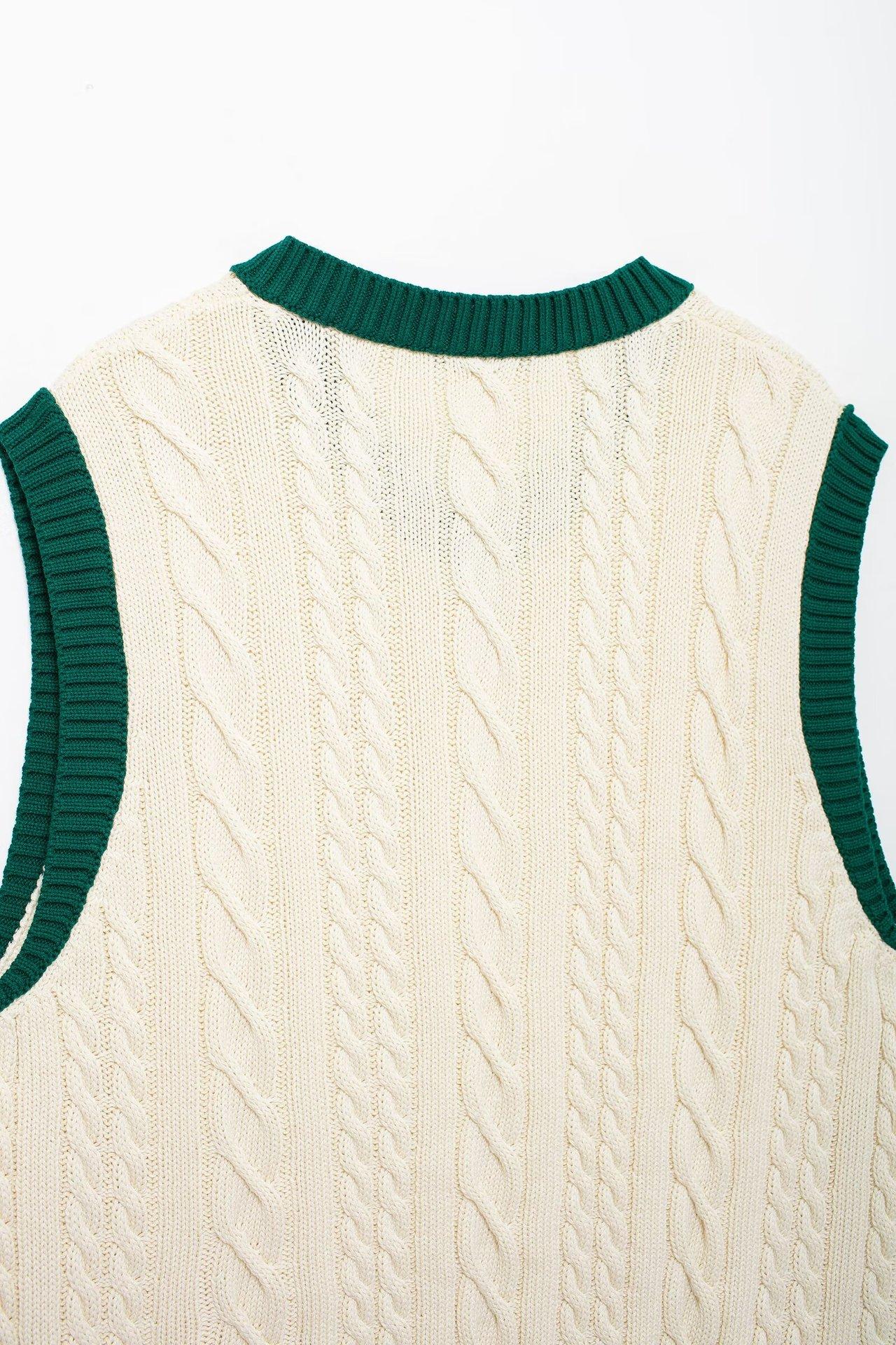 Chaleco de punto con patrón de cable de nuevo temperamento para mujeres europeas y americanas de comercio exterior transfronterizo de Amazon, otoño e invierno de 2024