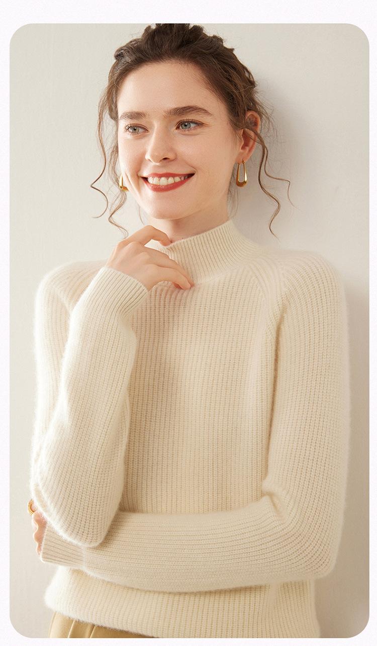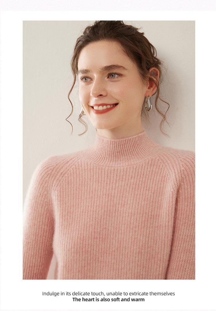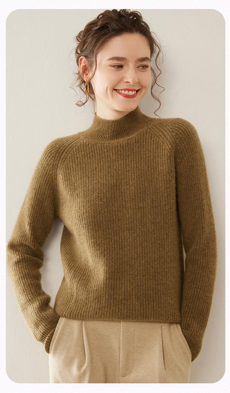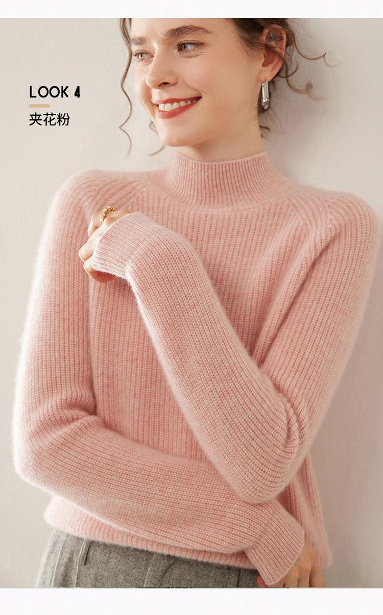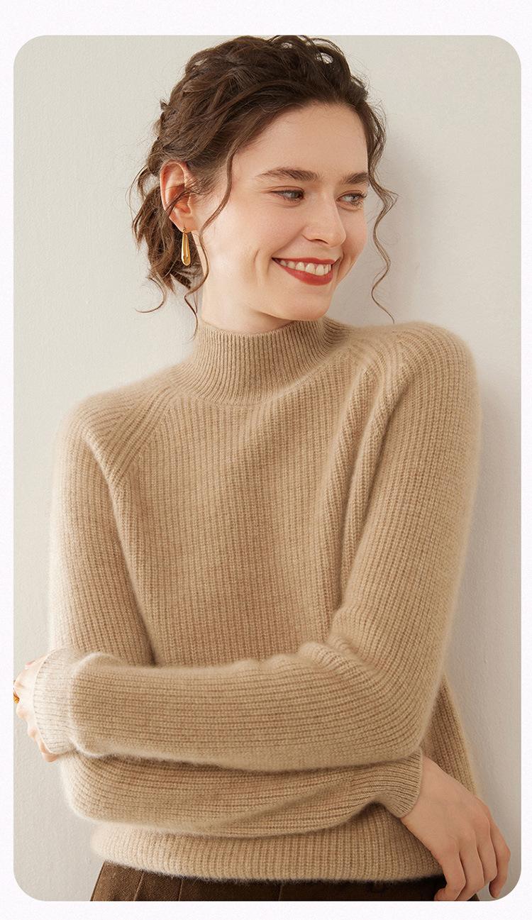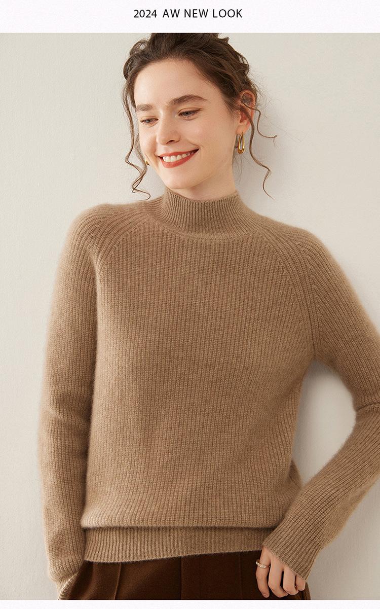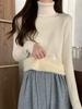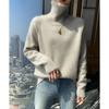 Suéter holgado y cálido de manga larga con cuello alto interior para mujer, nueva camisa de punto de cachemira para otoño e invierno de 2024