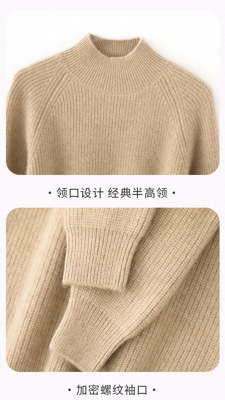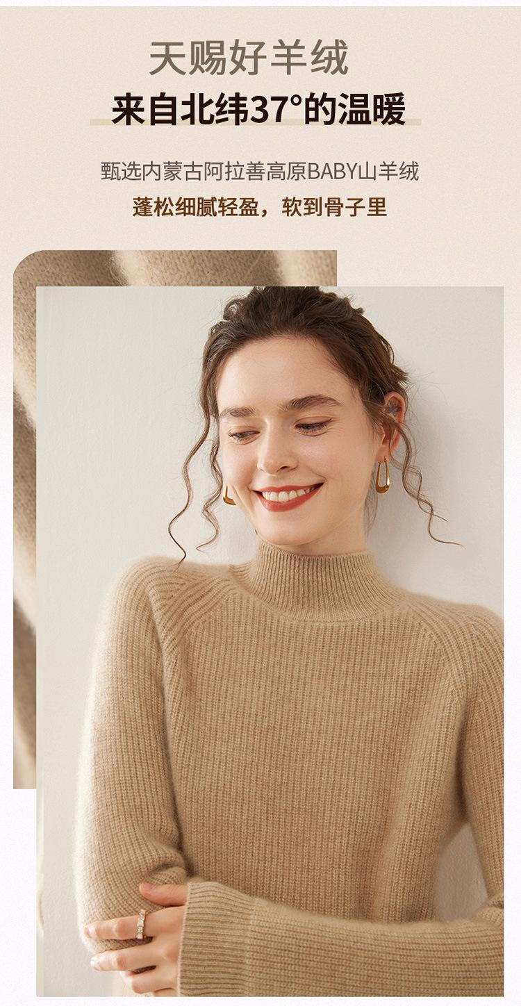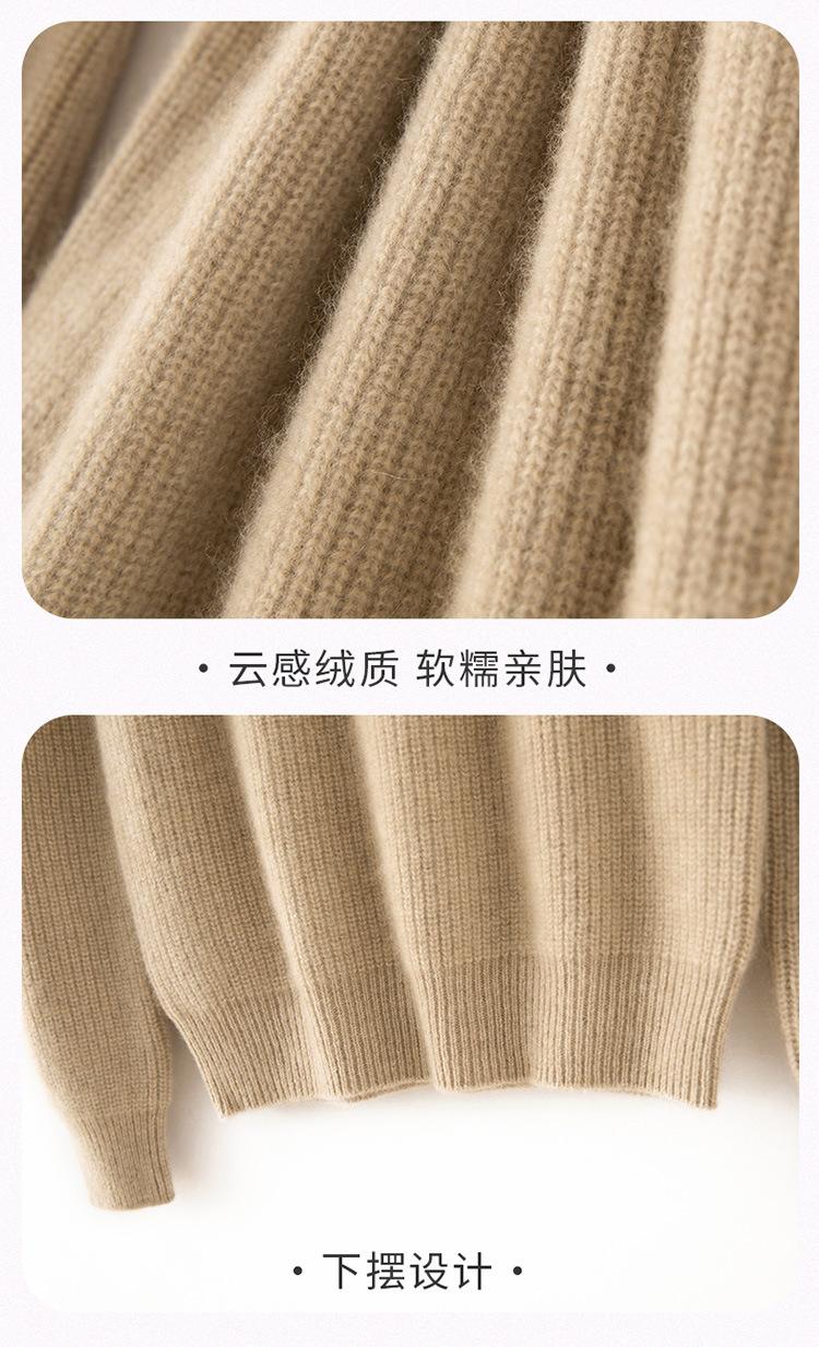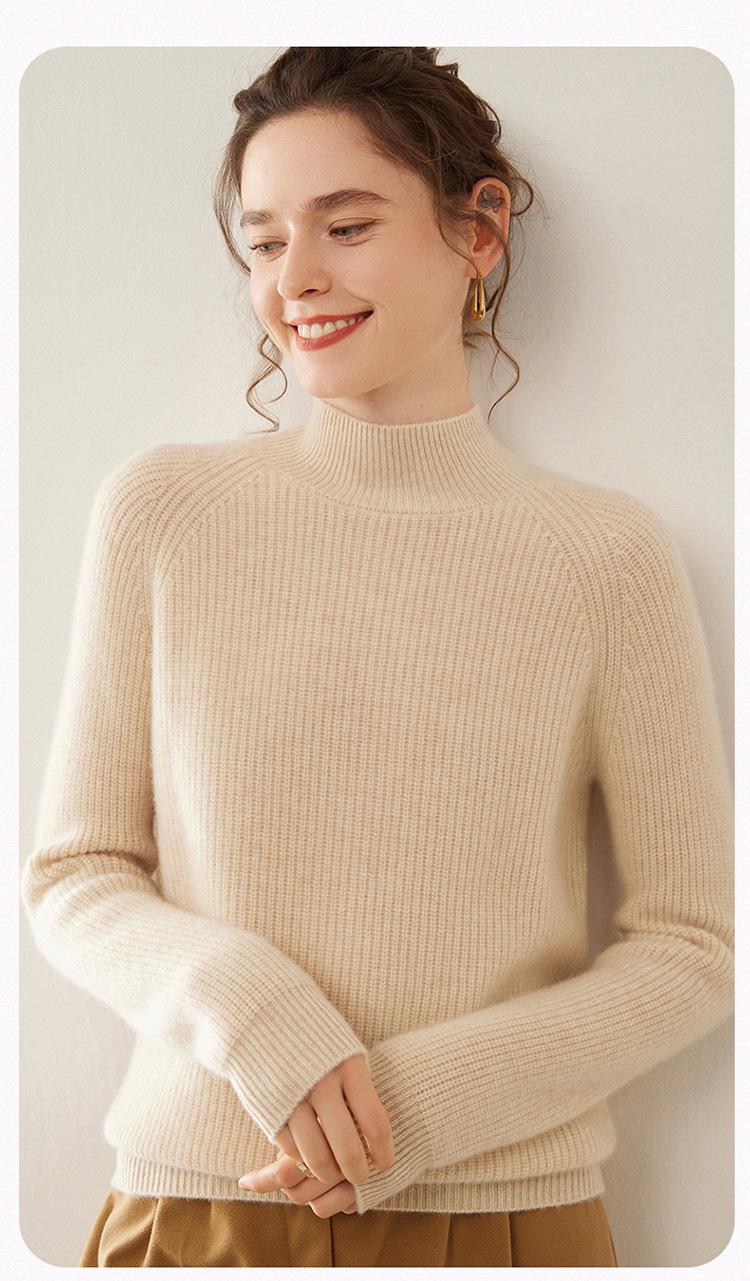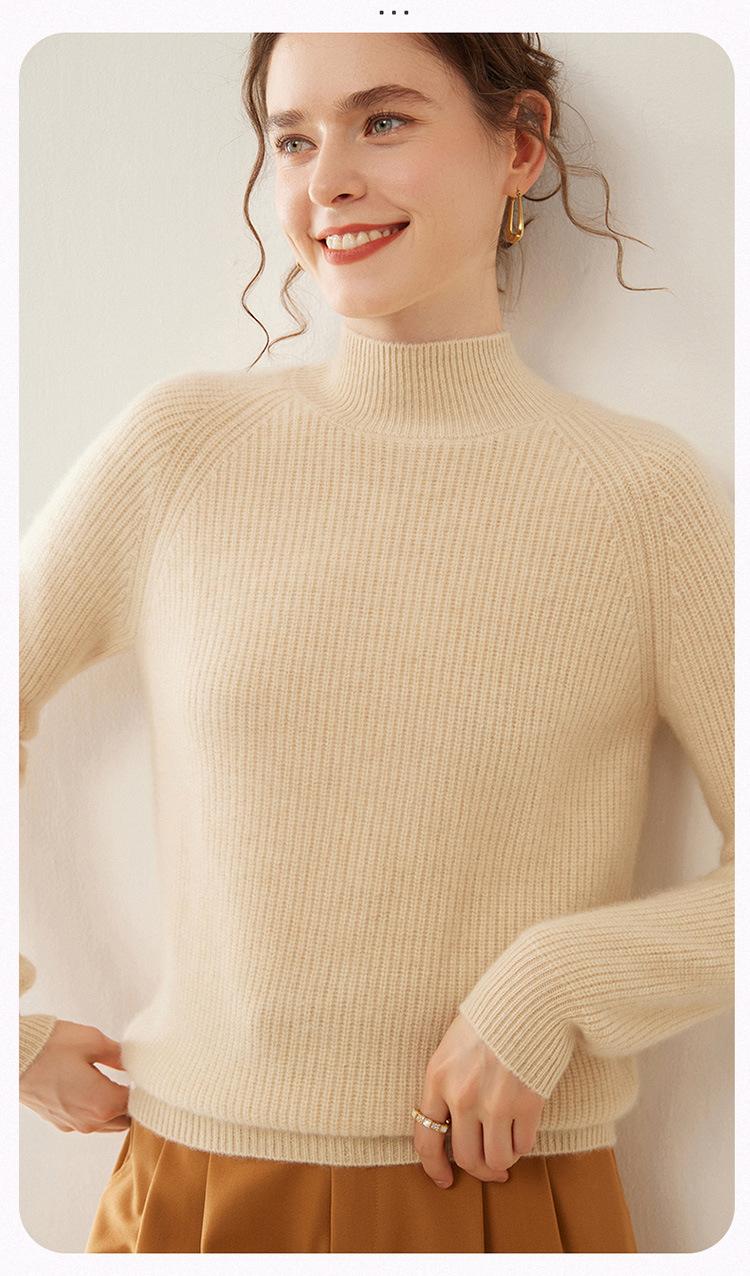 Suéter holgado y cálido de manga larga con cuello alto interior para mujer, nueva camisa de punto de cachemira para otoño e invierno de 2024