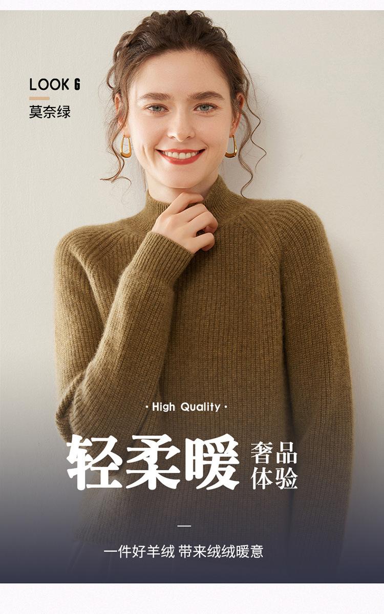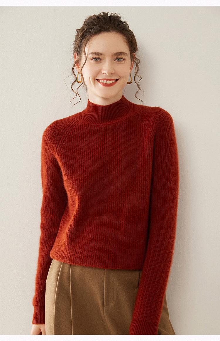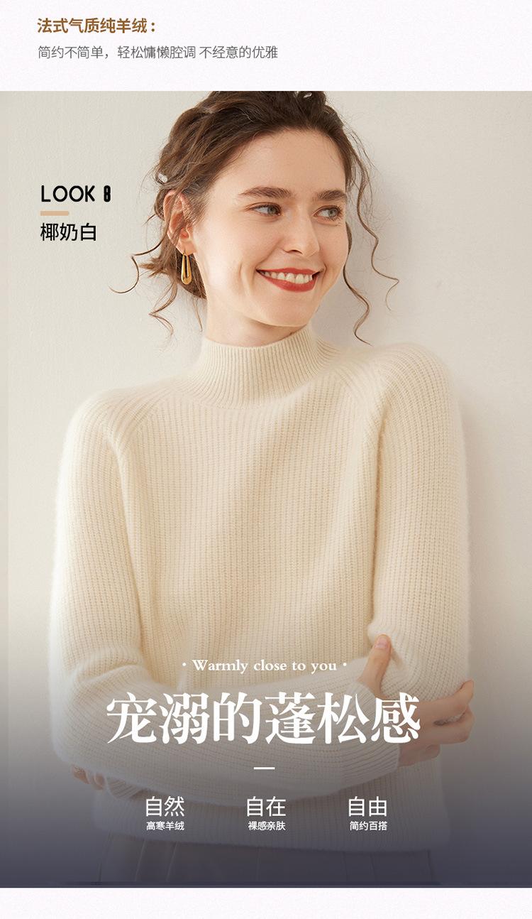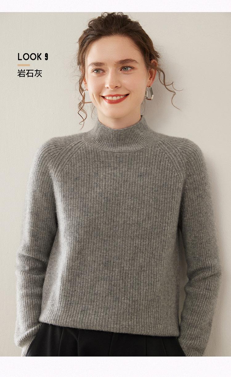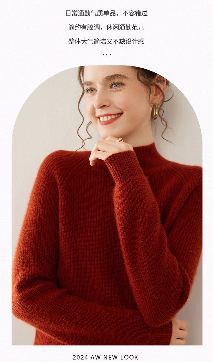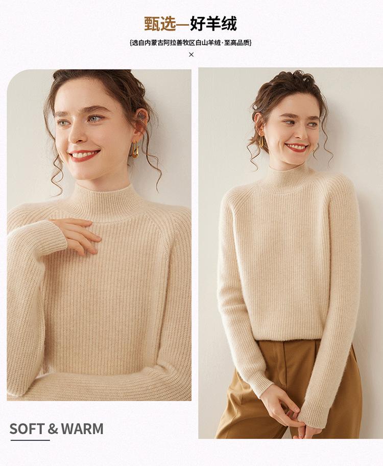 Suéter holgado y cálido de manga larga con cuello alto interior para mujer, nueva camisa de punto de cachemira para otoño e invierno de 2024