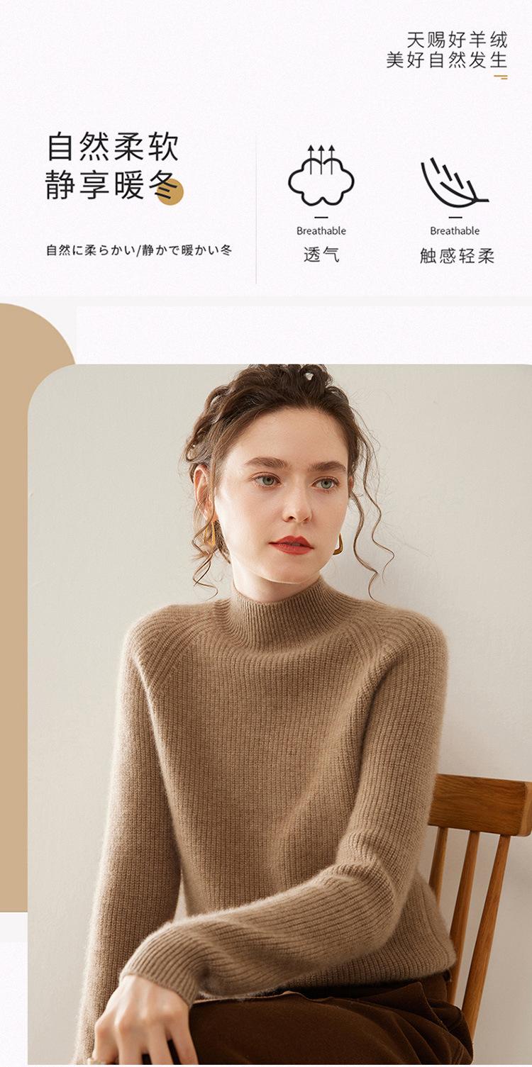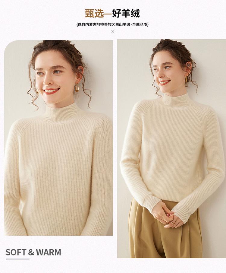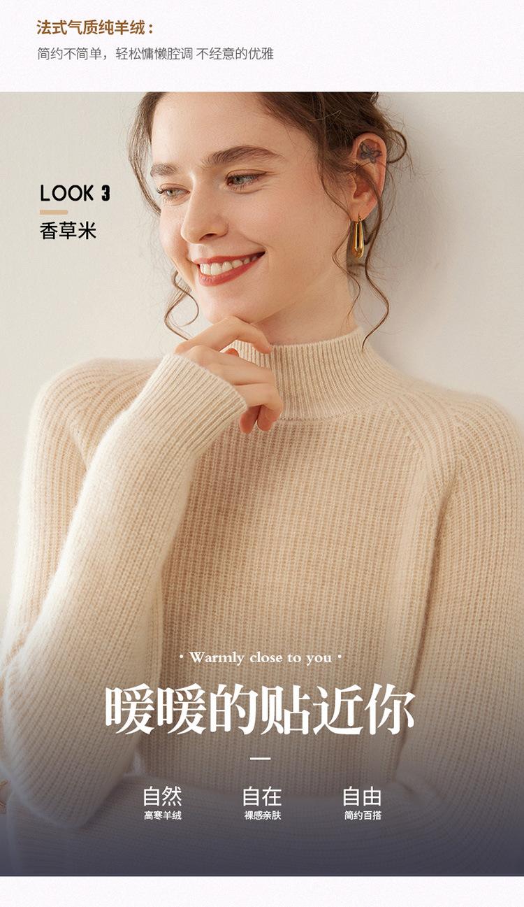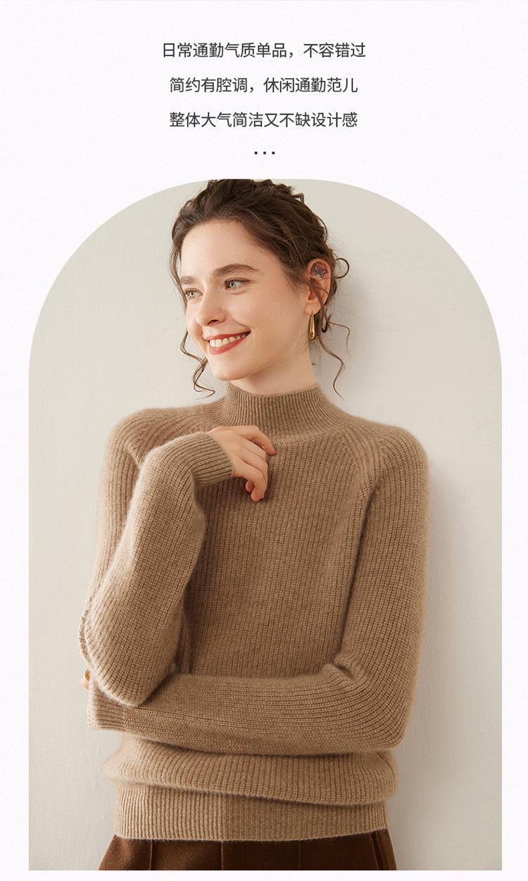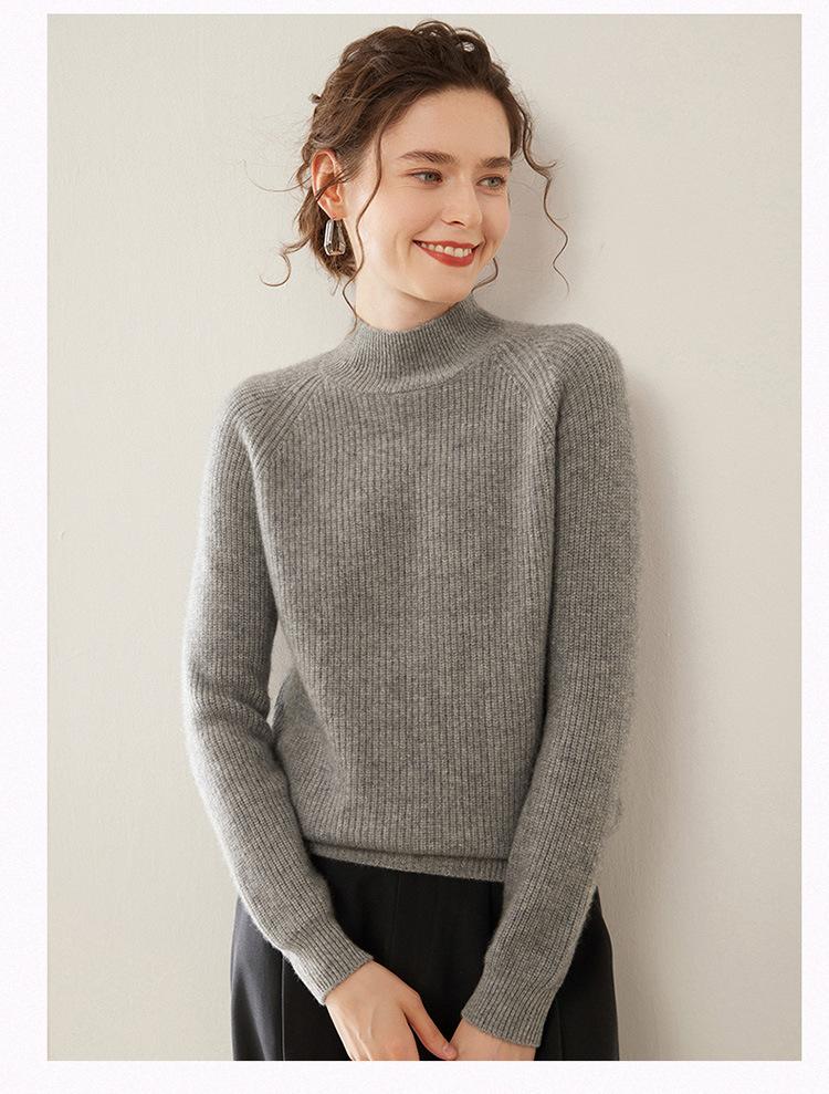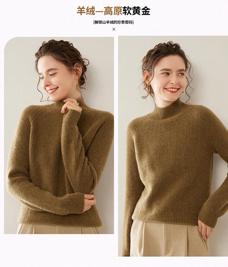 Suéter holgado y cálido de manga larga con cuello alto interior para mujer, nueva camisa de punto de cachemira para otoño e invierno de 2024