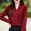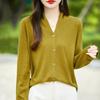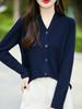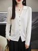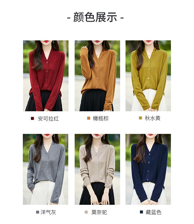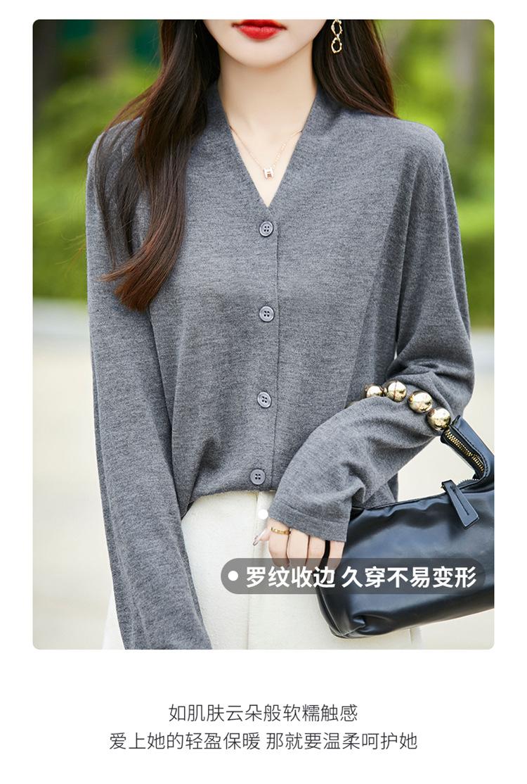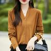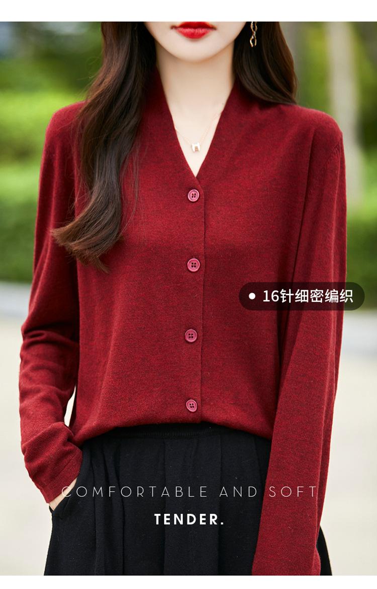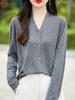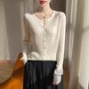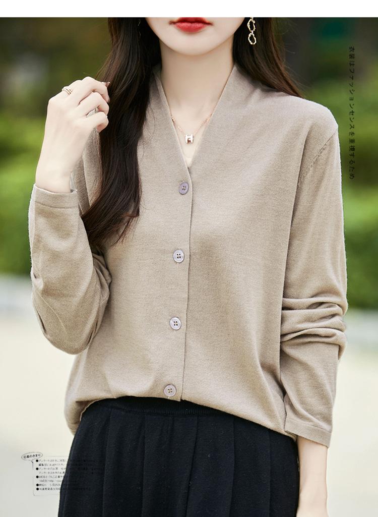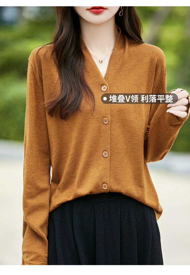Cárdigan de punto con cuello en V suave y encerado para mujer, recién llegado, de lana peinada, elegante y de manga larga.