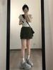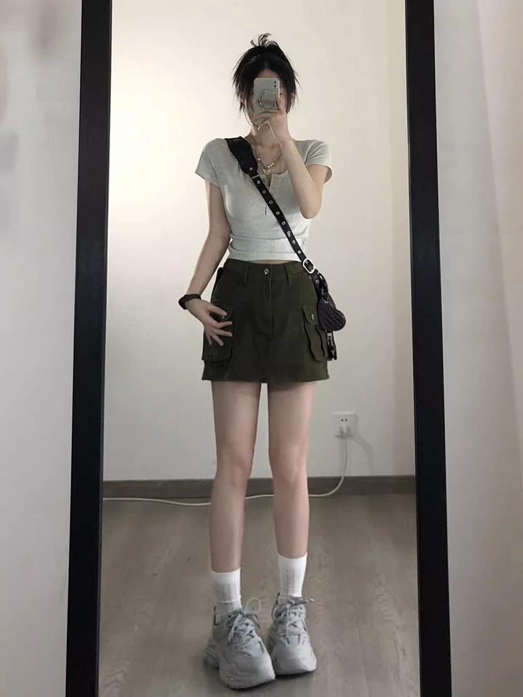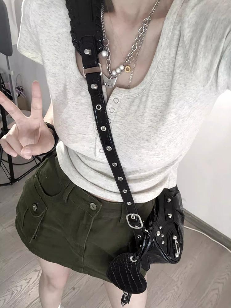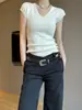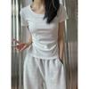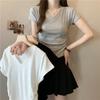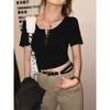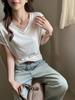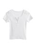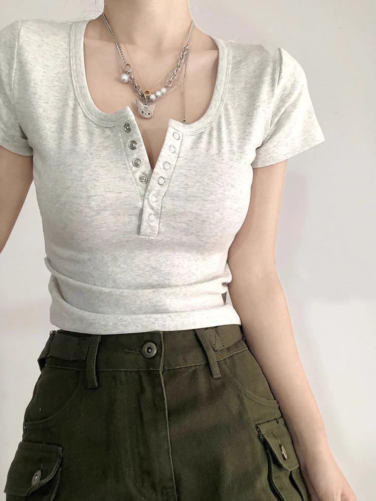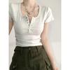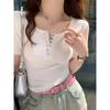 Camiseta interior de mujer con cuello en V blanco y botones, de primavera y otoño, ajustada, de manga corta con hombros descubiertos, de verano, a la moda.