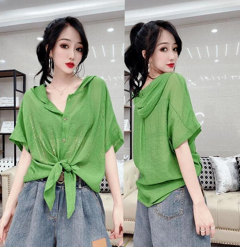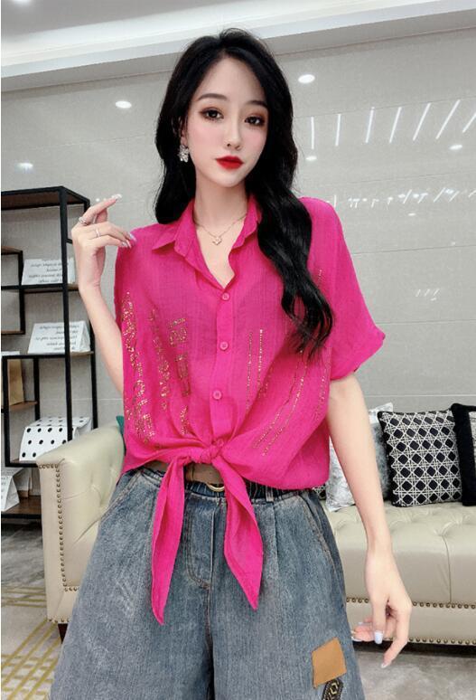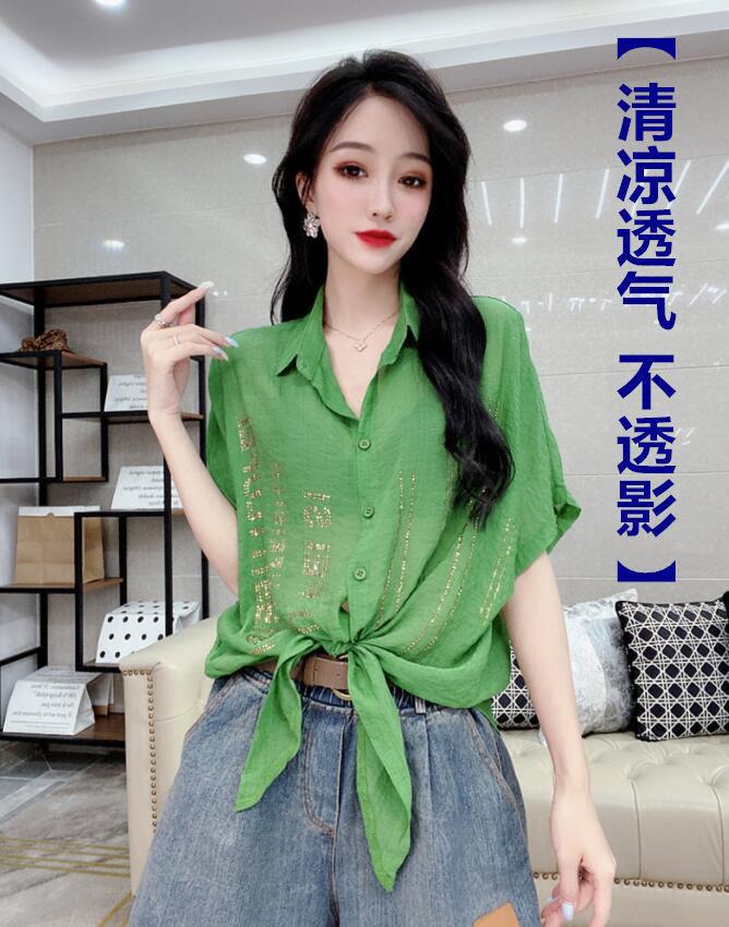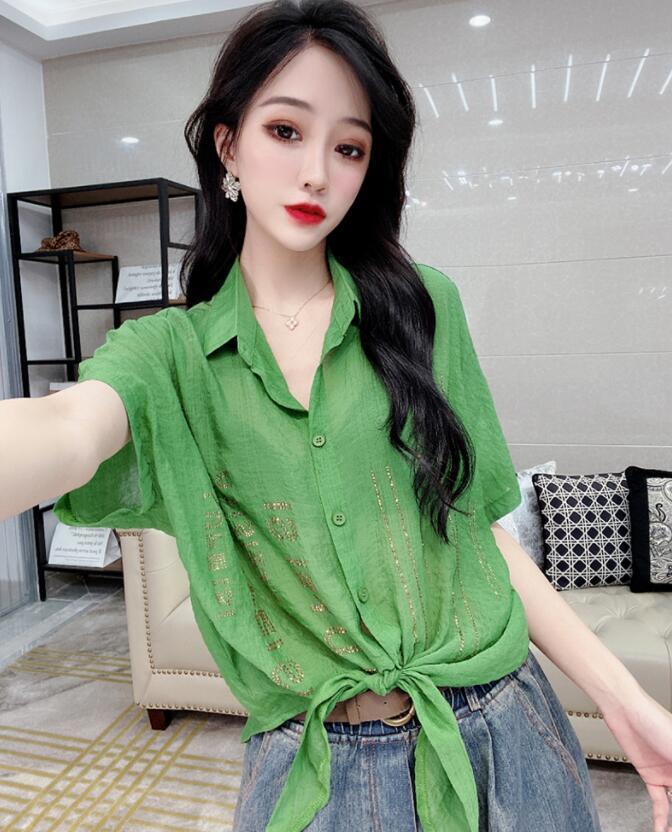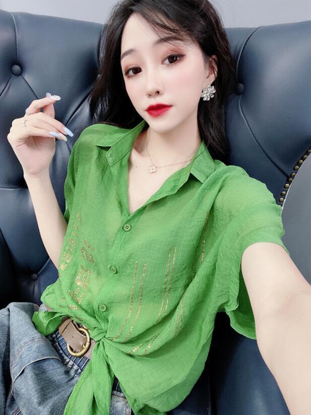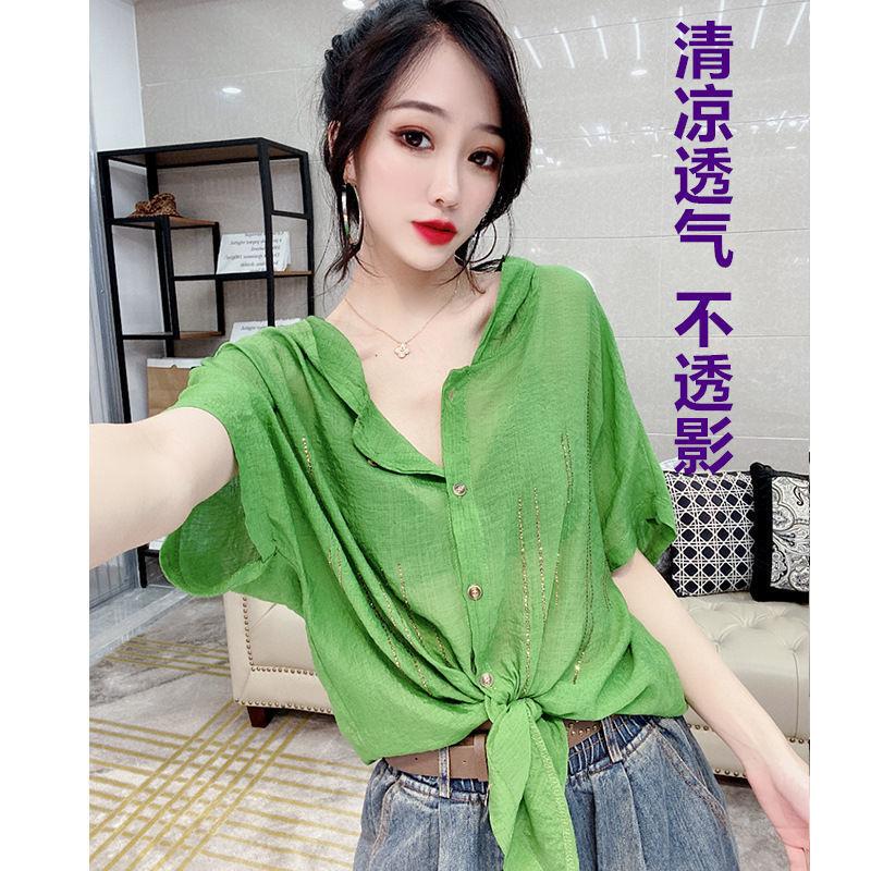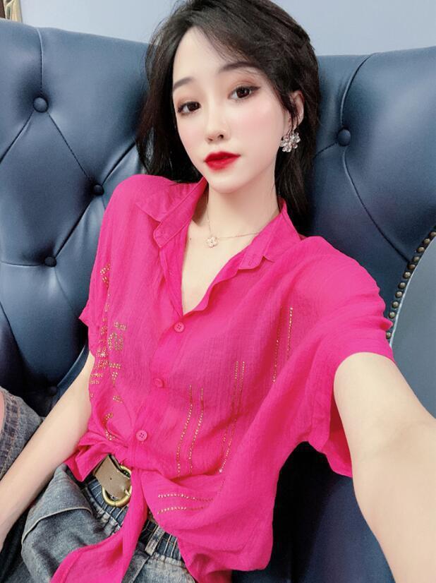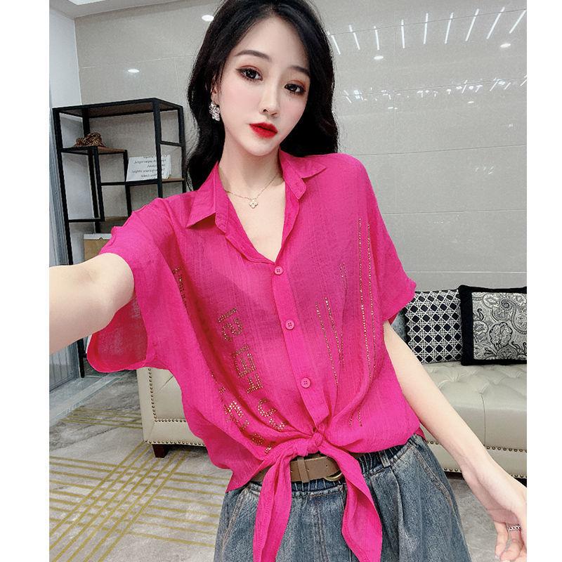 Camisa de algodón de estilo europeo para mujer, nueva camisa de manga corta fina y holgada, de moda, de verano 2023