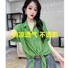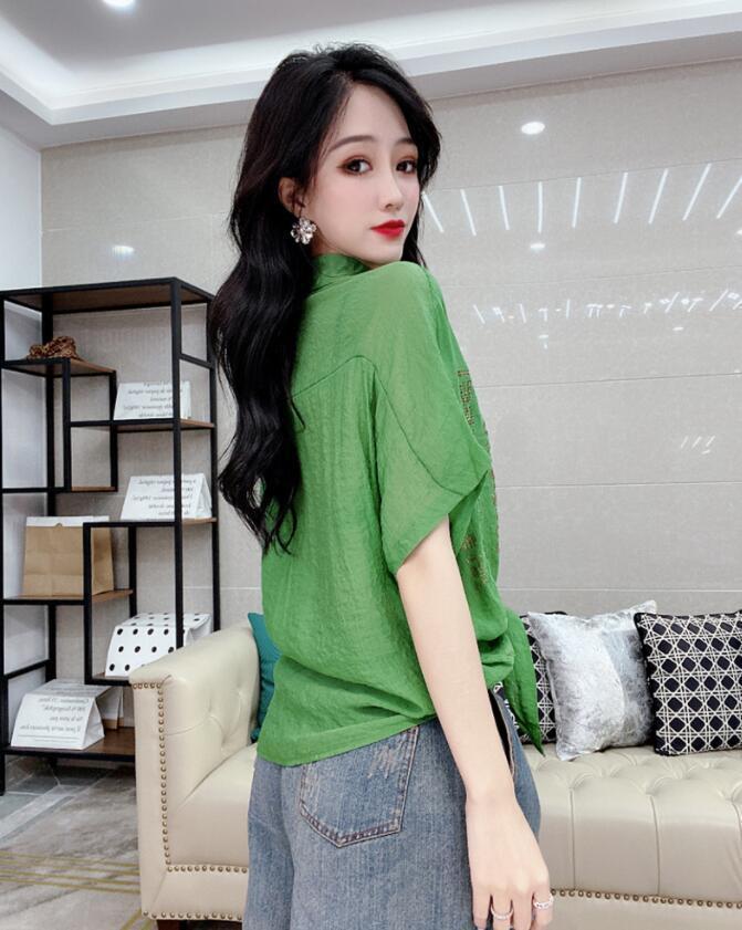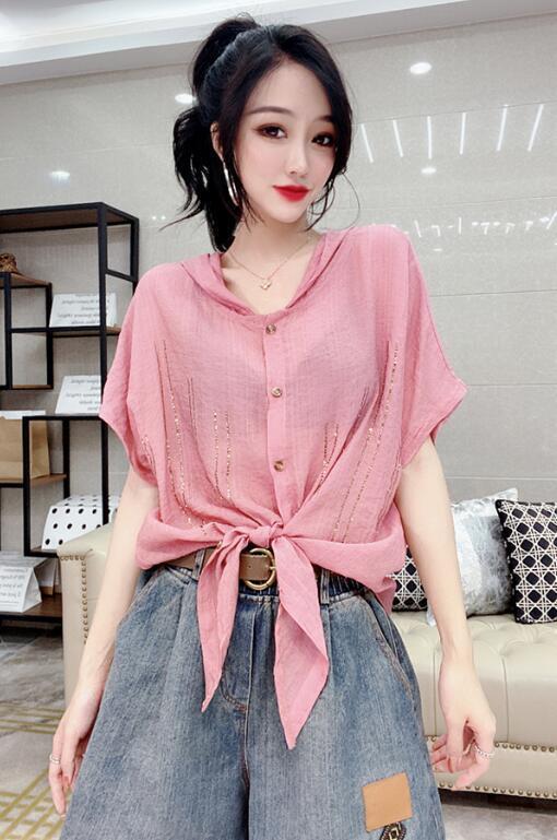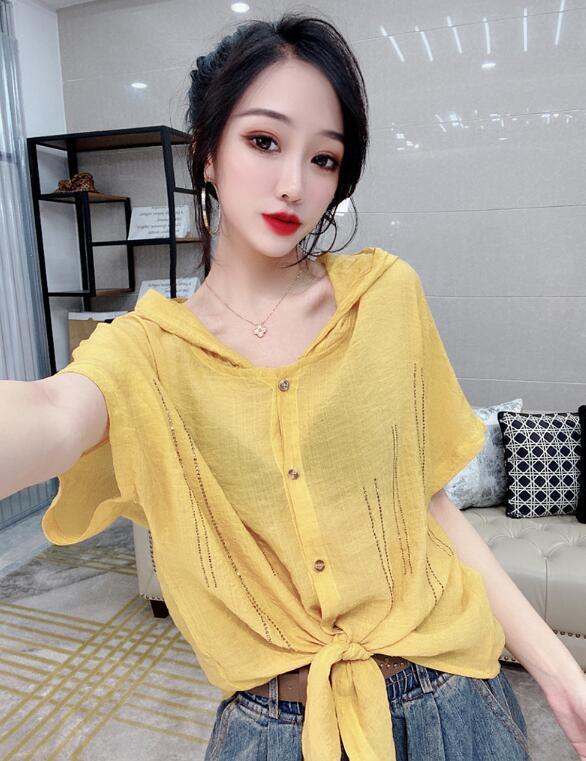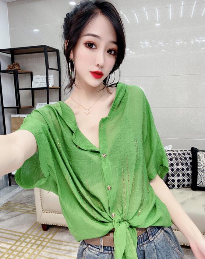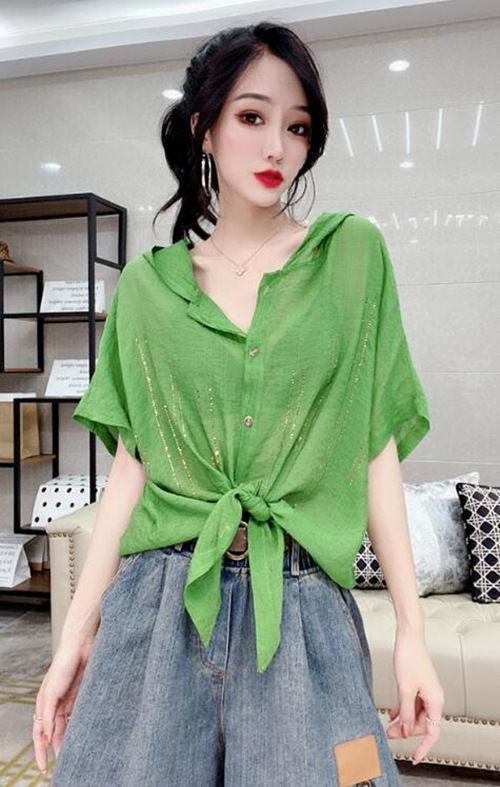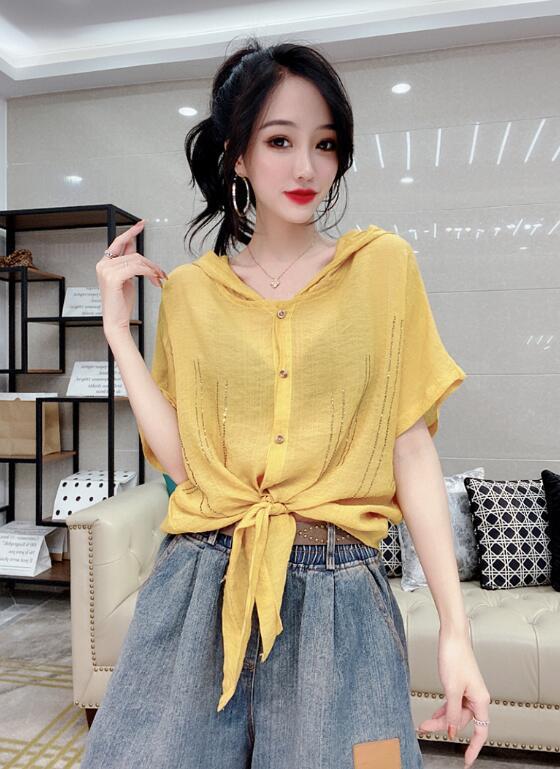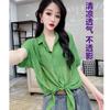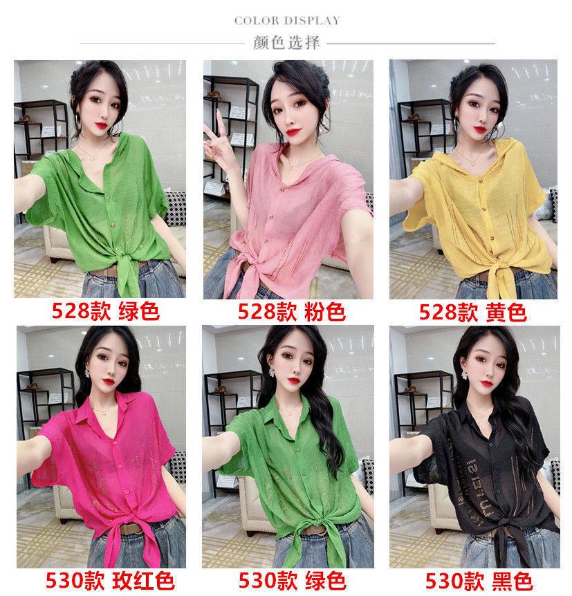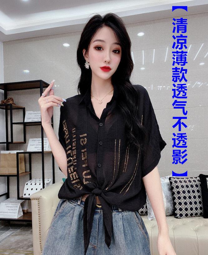 Camisa de algodón de estilo europeo para mujer, nueva camisa de manga corta fina y holgada, de moda, de verano 2023