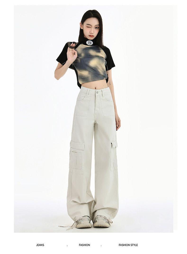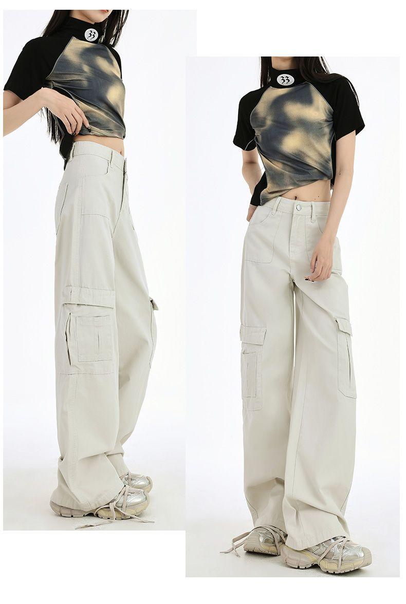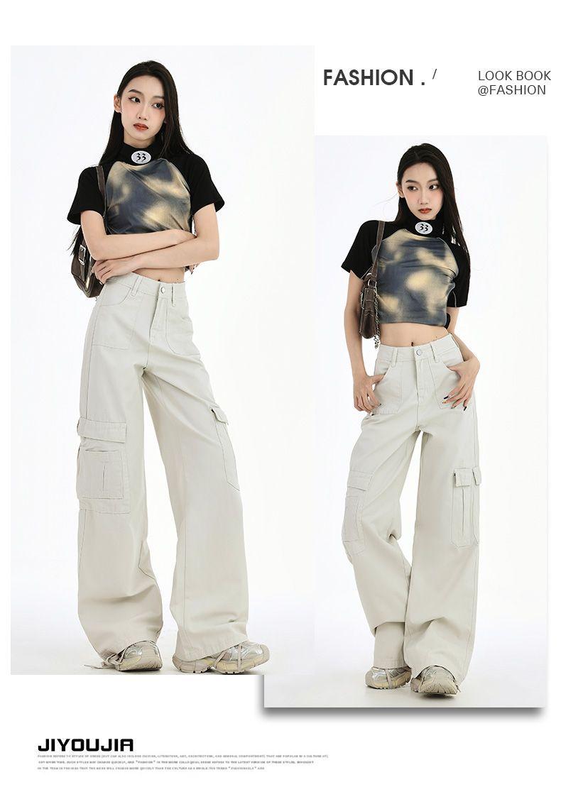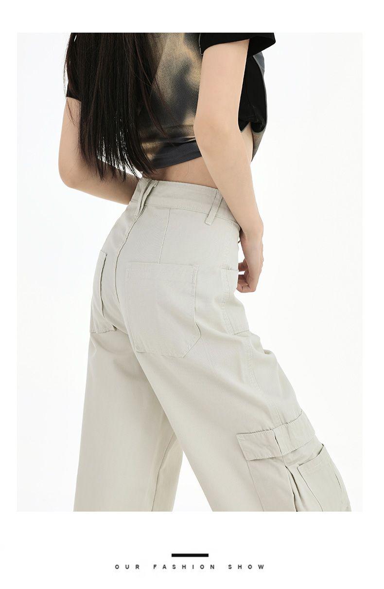 Overol estilo americano color albaricoque para mujer verano delgado 2024 nuevo pequeño slim recto estrecho pierna ancha