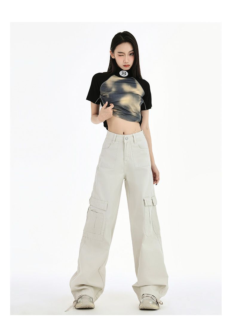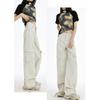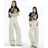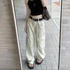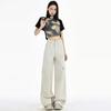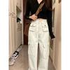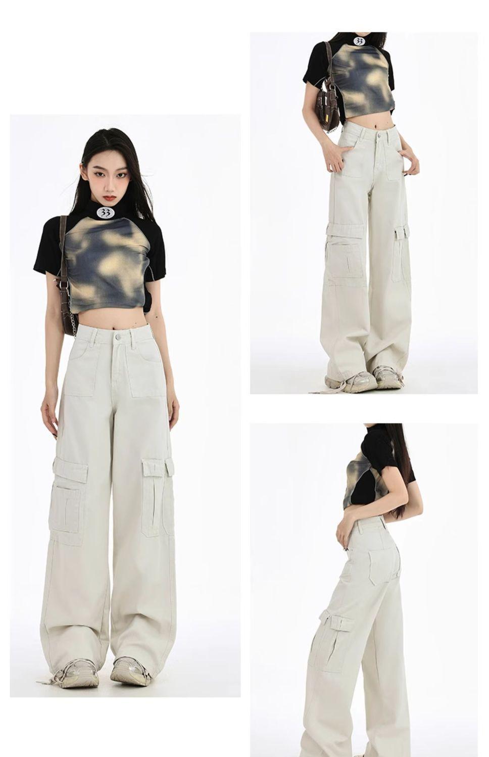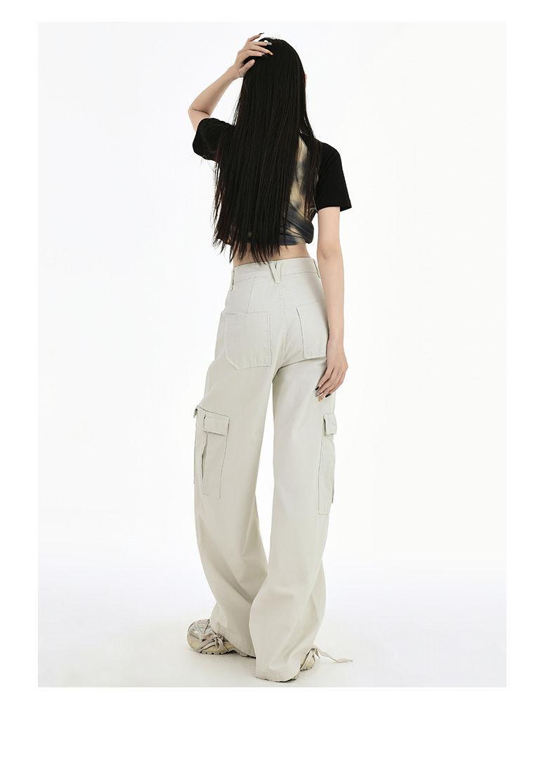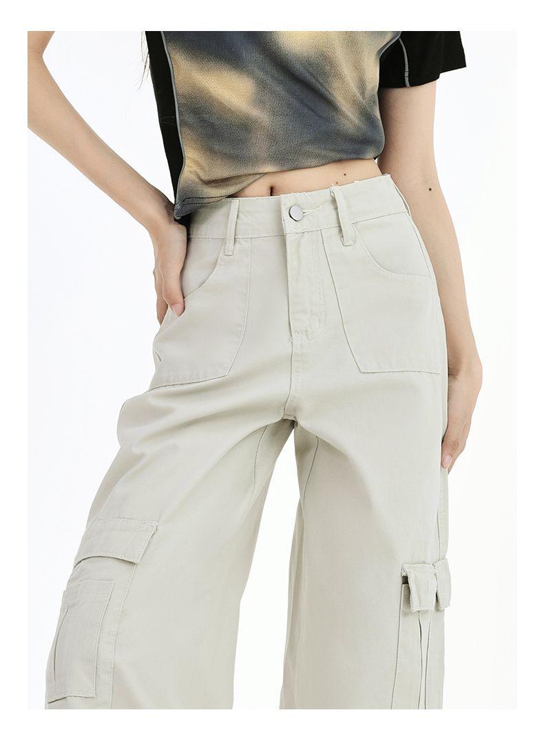 Overol estilo americano color albaricoque para mujer verano delgado 2024 nuevo pequeño slim recto estrecho pierna ancha