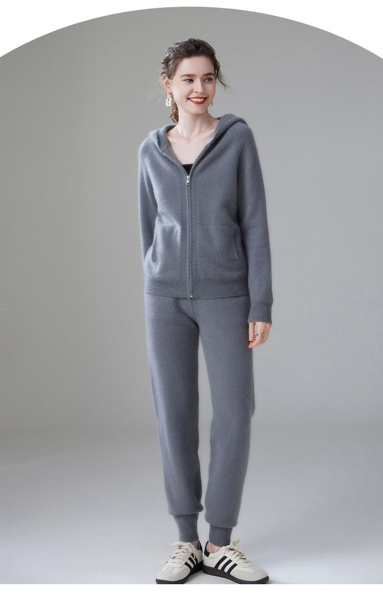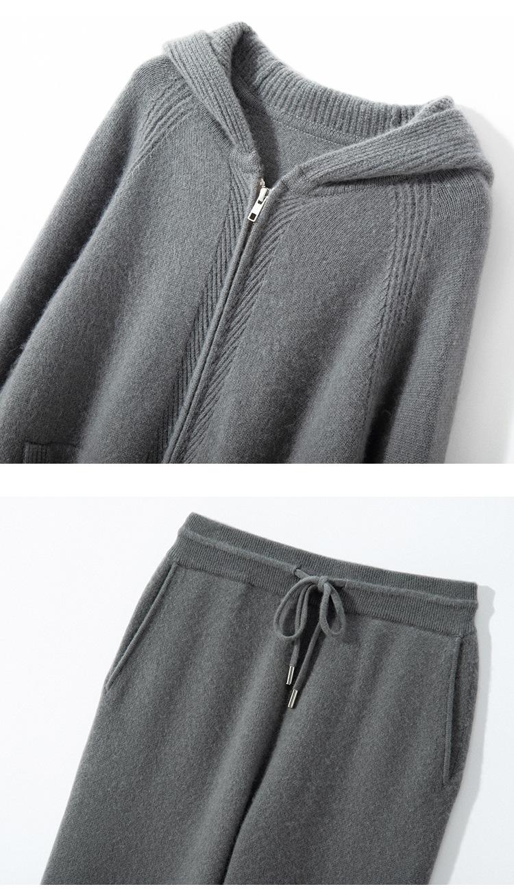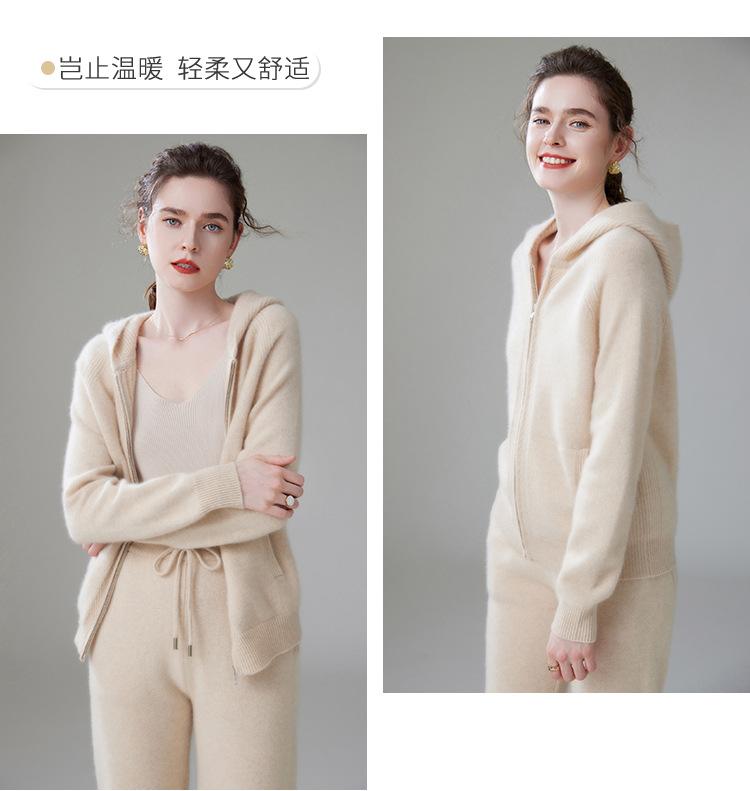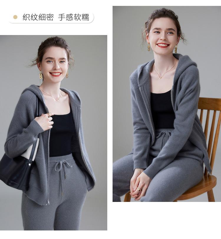 Cárdigan de cachemira con cremallera y capucha para mujer, de color liso, holgado, informal, de punto grueso, para deporte, pantalones