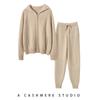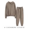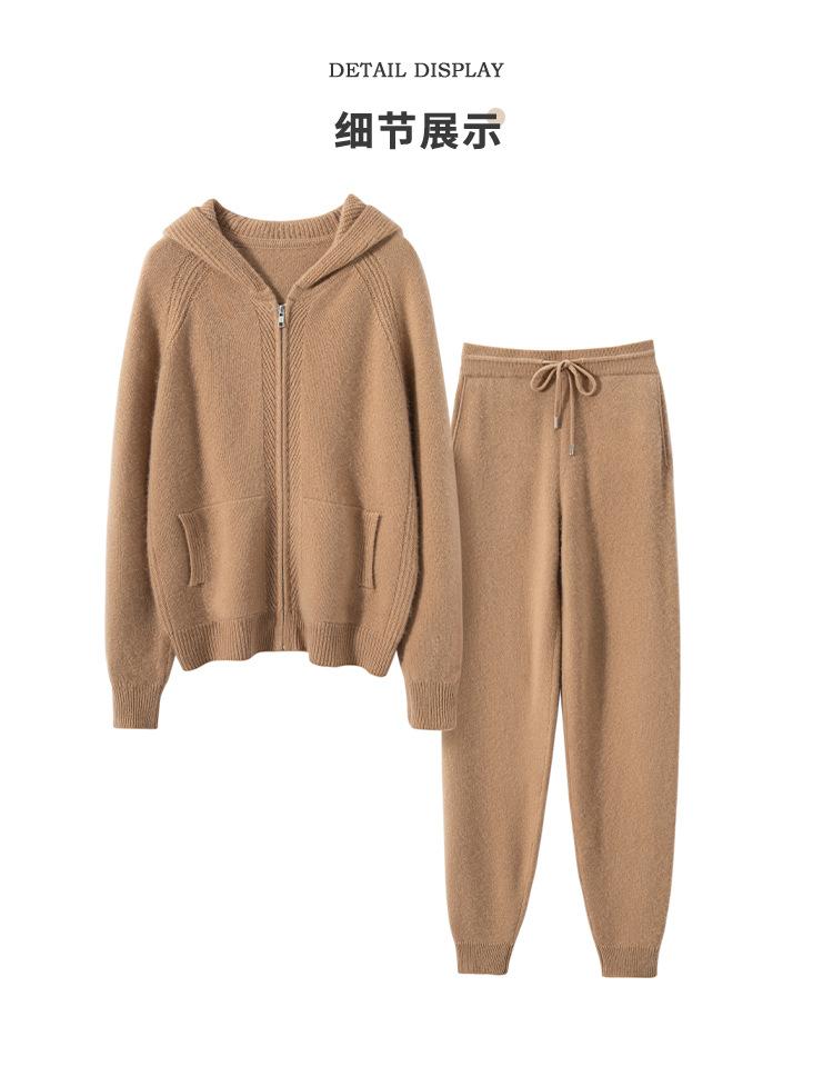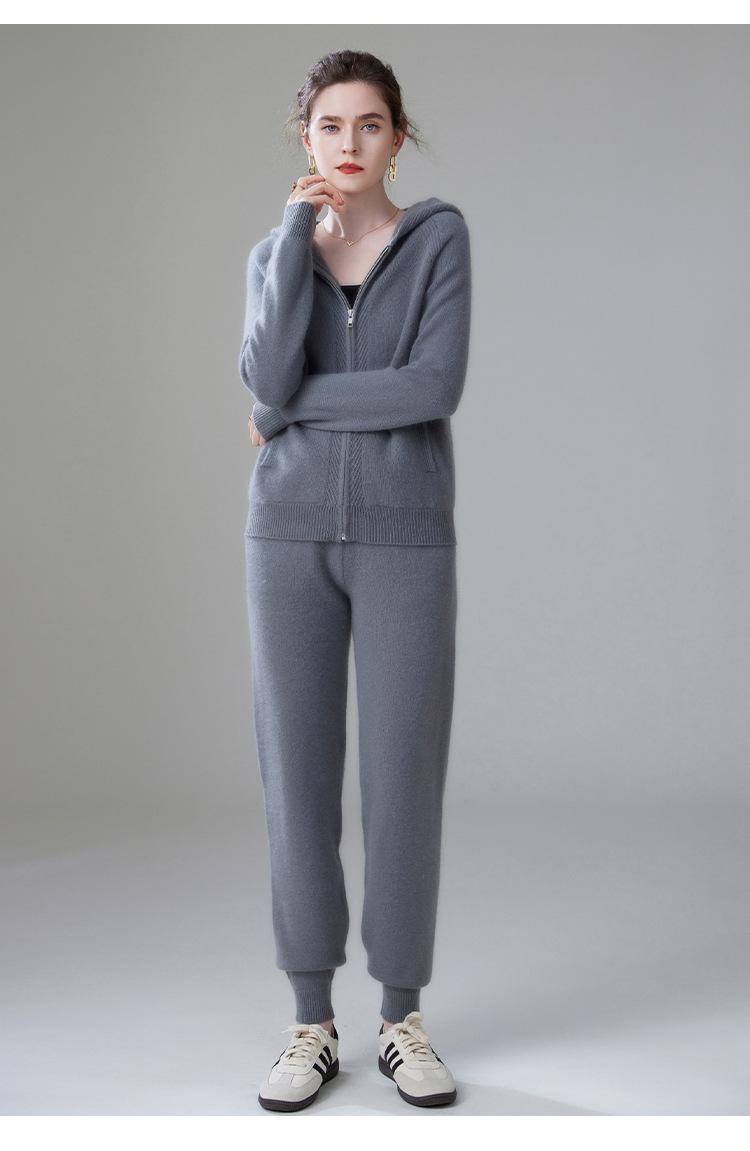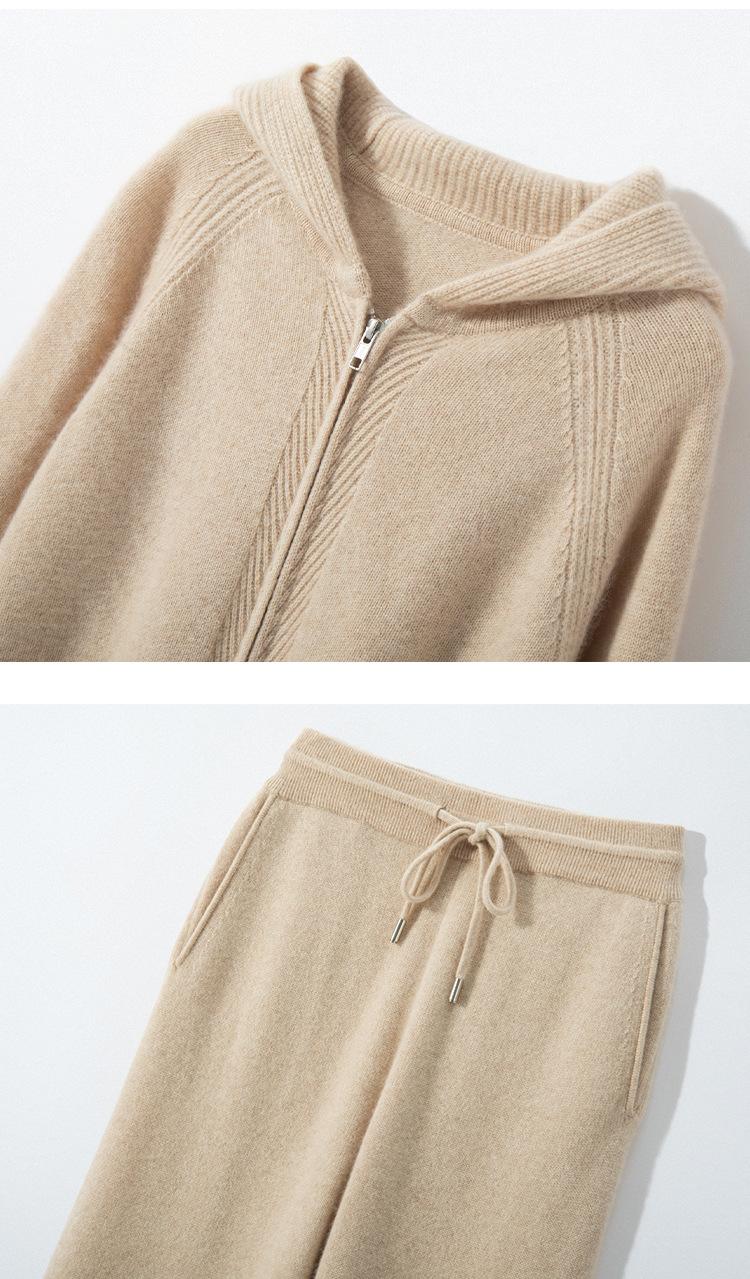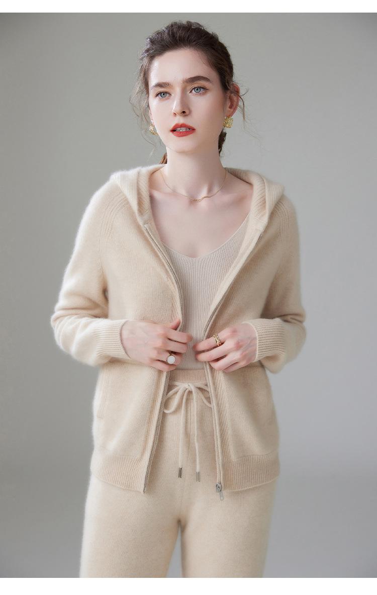 Cárdigan de cachemira con cremallera y capucha para mujer, de color liso, holgado, informal, de punto grueso, para deporte, pantalones