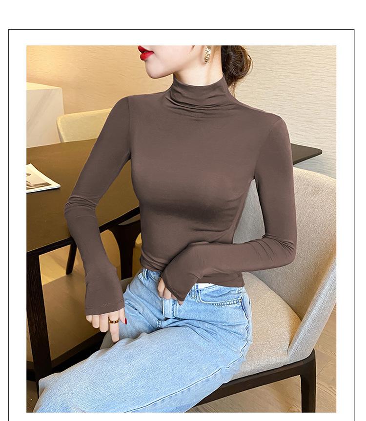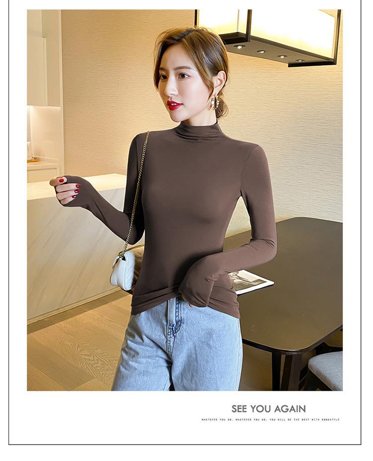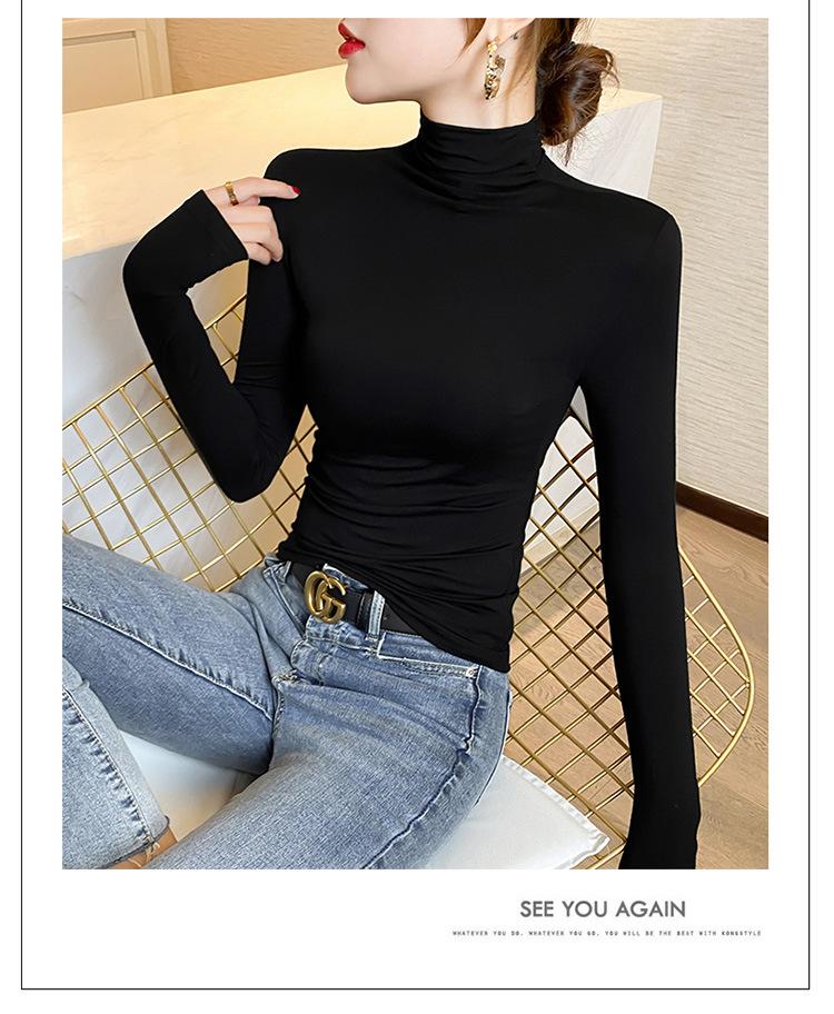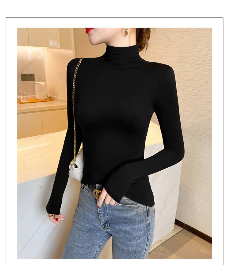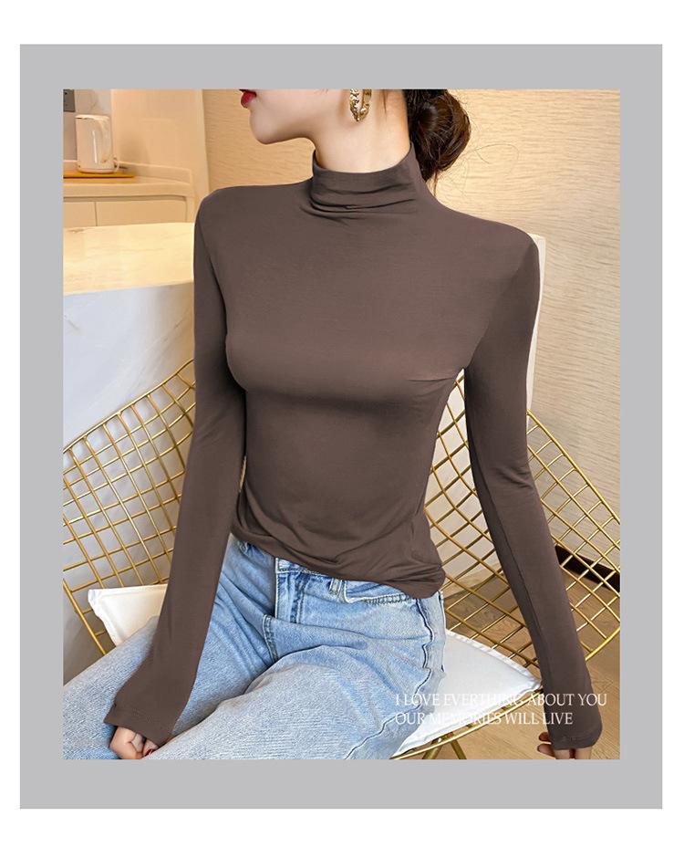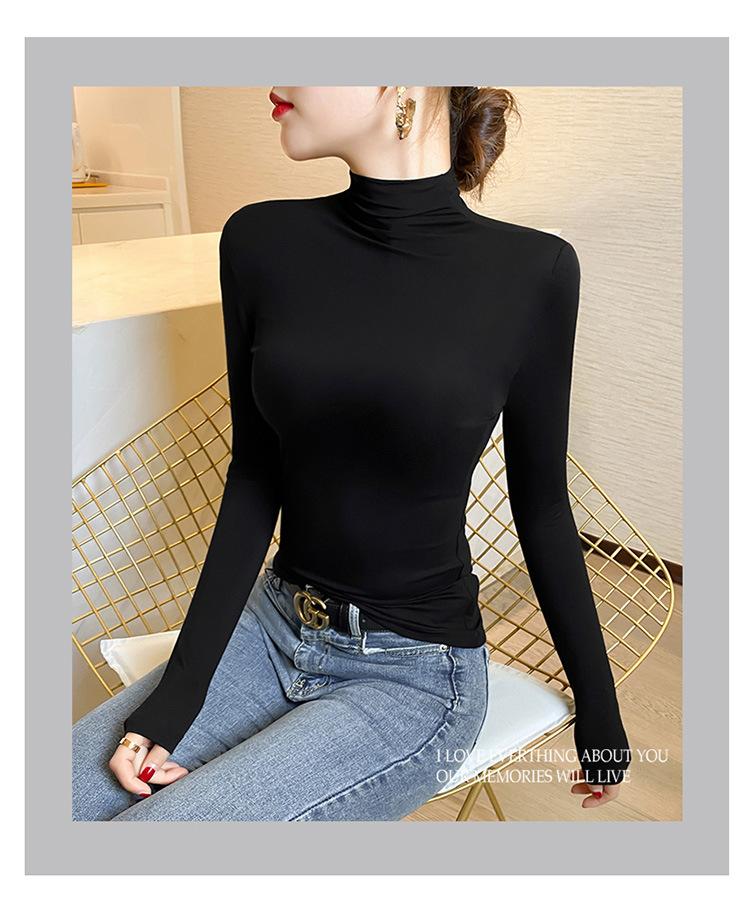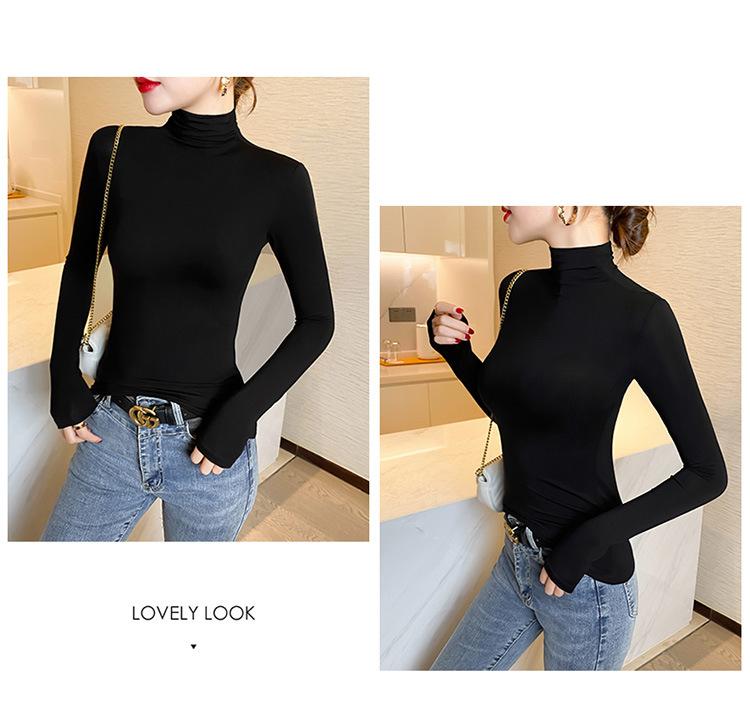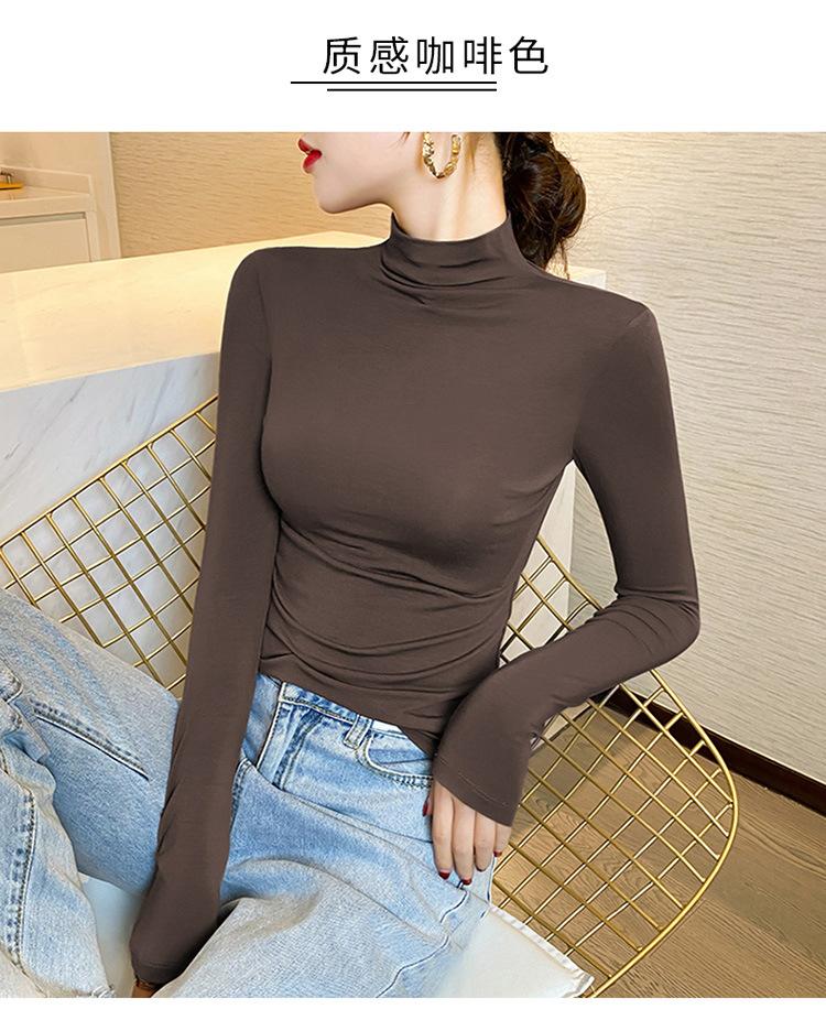 Camisa básica de cuello medio alto para mujer, primavera, otoño e invierno, blanca, ajustada, elegante, de moda, de alta gama, de manga larga.