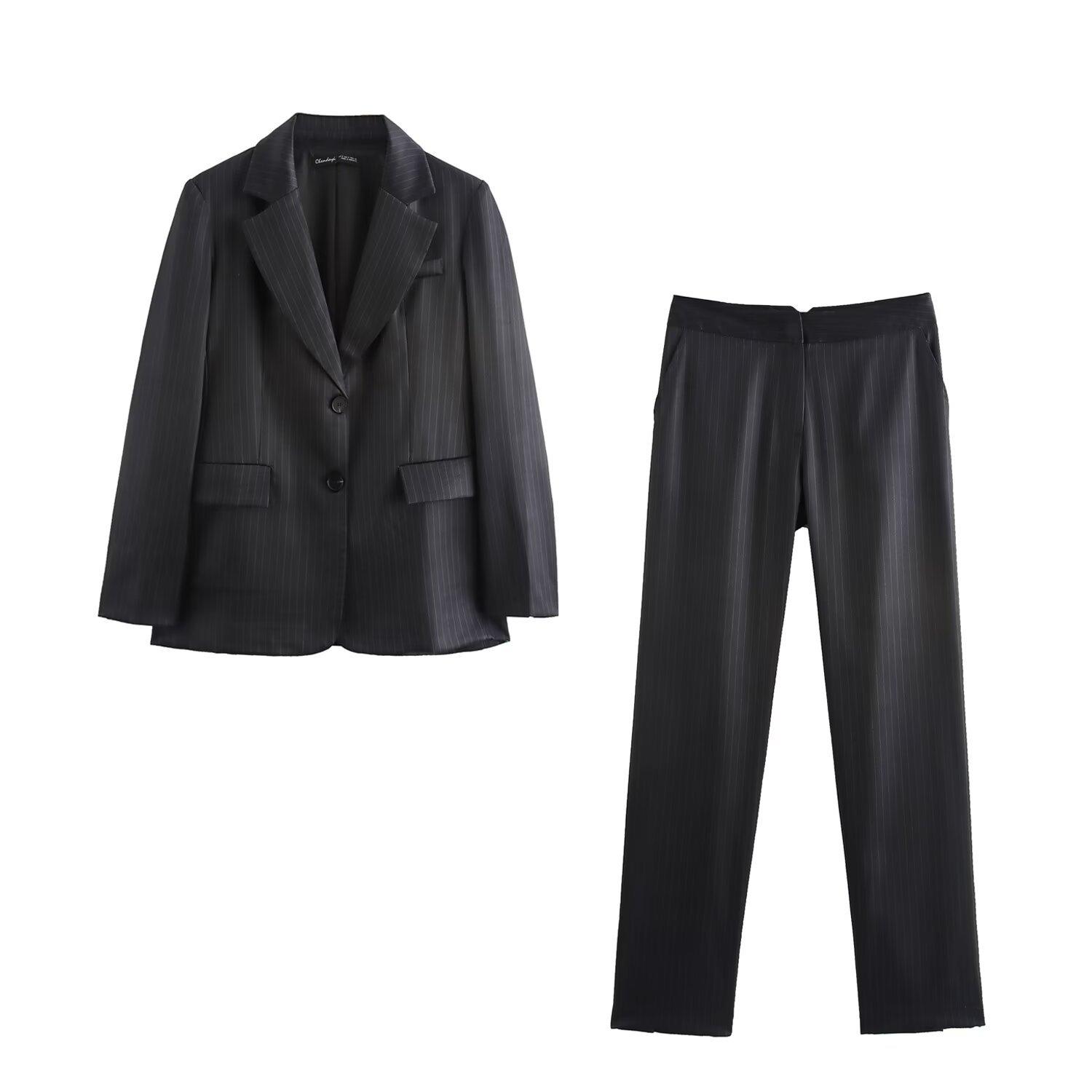 Comercio exterior transfronterizo de Amazon, ropa de mujer europea y americana, otoño e invierno 2024, nuevo traje de chaqueta y pantalón de corte recto con raya diplomática