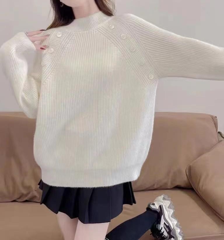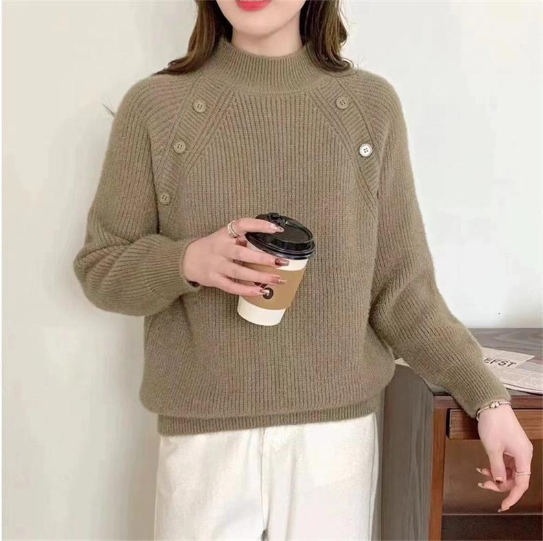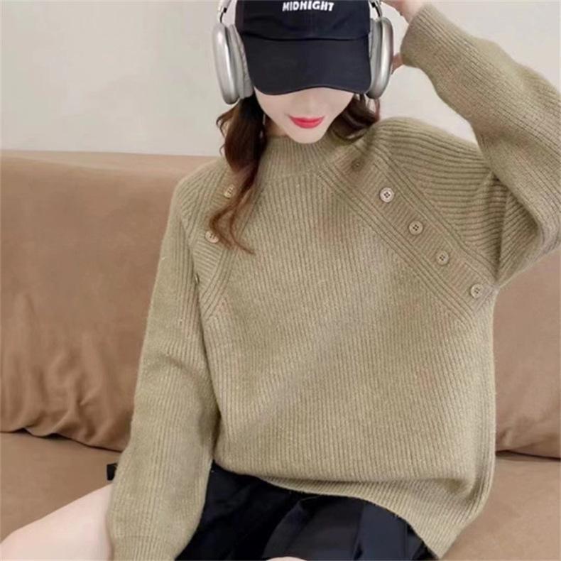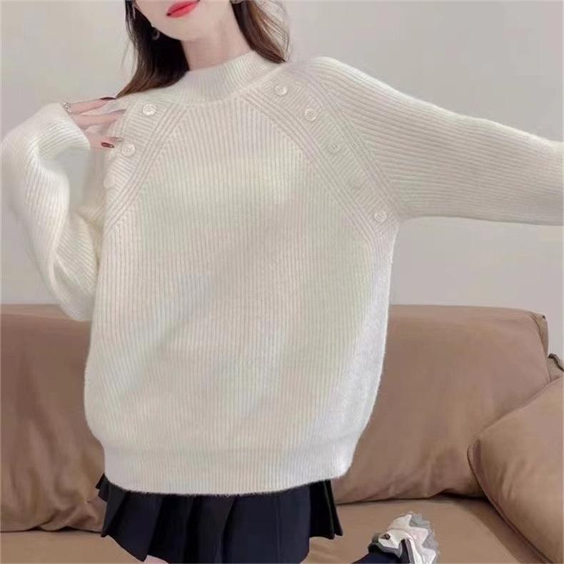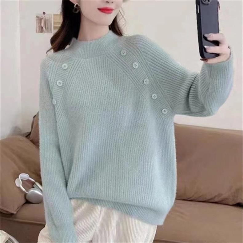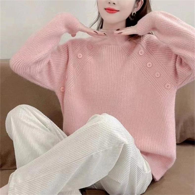 Otoño e Invierno 2025 Nuevo Estilo Estilo Holgazán Color Puro Versátil Prendas de Punto Estilo Coreano Aspecto Holgado Adelgazante Prendas de Punto Cuello Alto Bajo