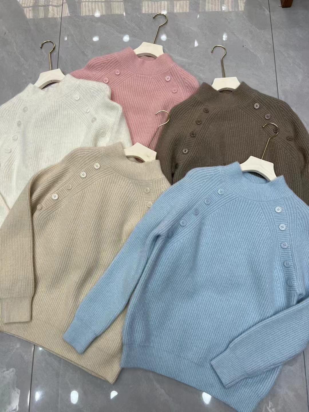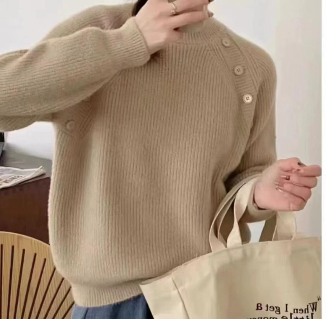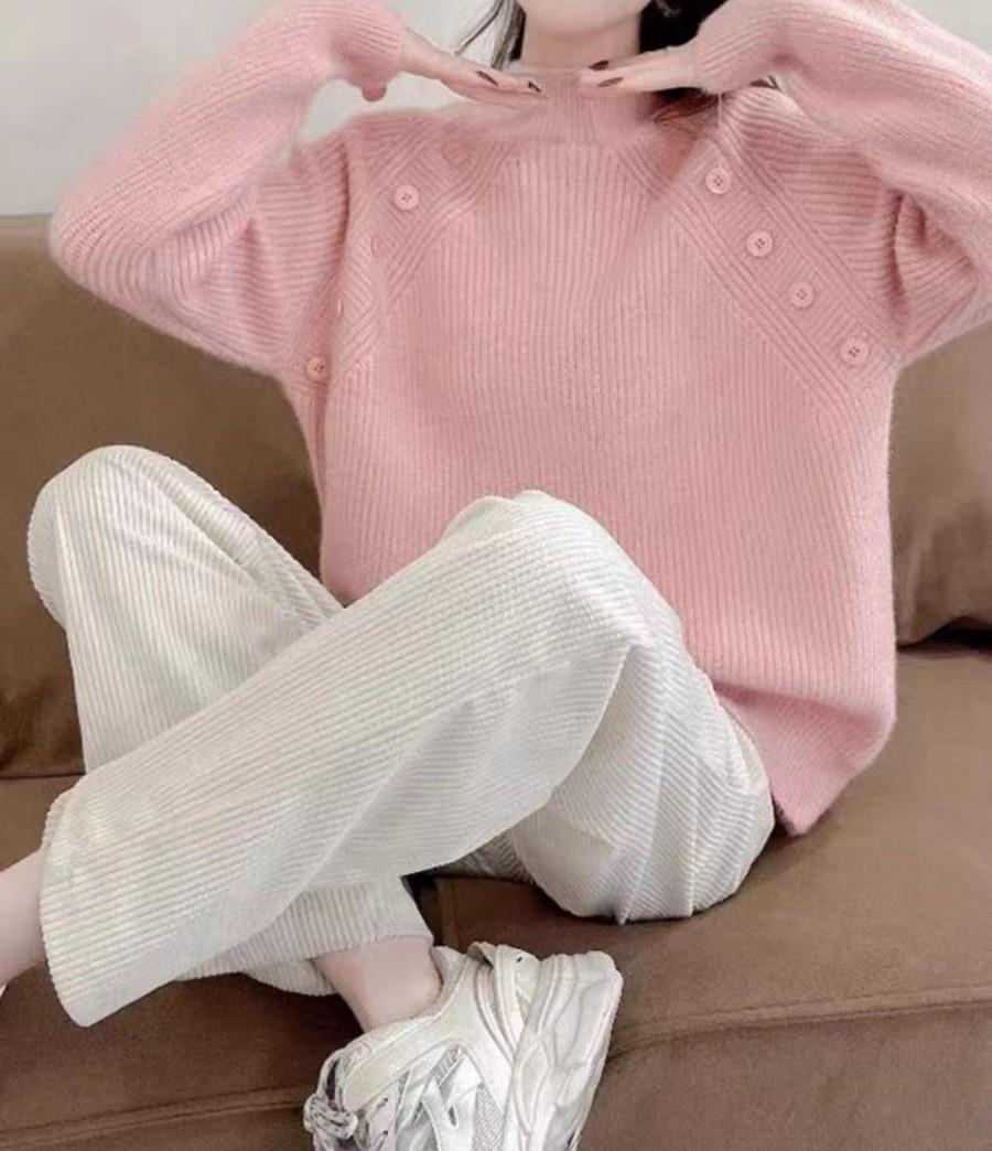 Otoño e Invierno 2025 Nuevo Estilo Estilo Holgazán Color Puro Versátil Prendas de Punto Estilo Coreano Aspecto Holgado Adelgazante Prendas de Punto Cuello Alto Bajo