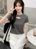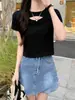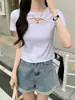 Camiseta corta de algodón Spice Girl para mujer, novedad de verano 2024, diseño hueco, estilo occidental, sexy, de manga corta.